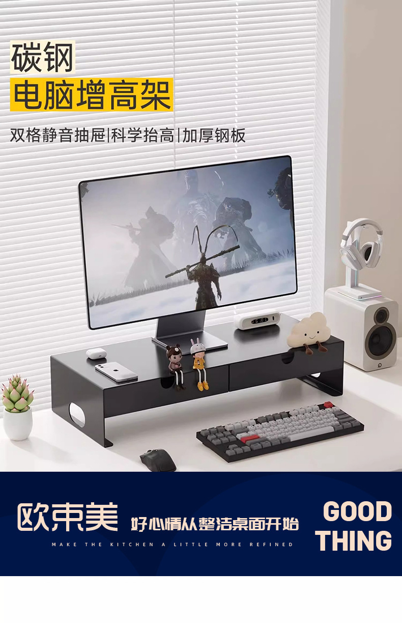모니터 상승 랙 철 사무실 금속 더블 레이어 디스플레이 컴퓨터 화면 데스크탑 베이스 상승 브래킷