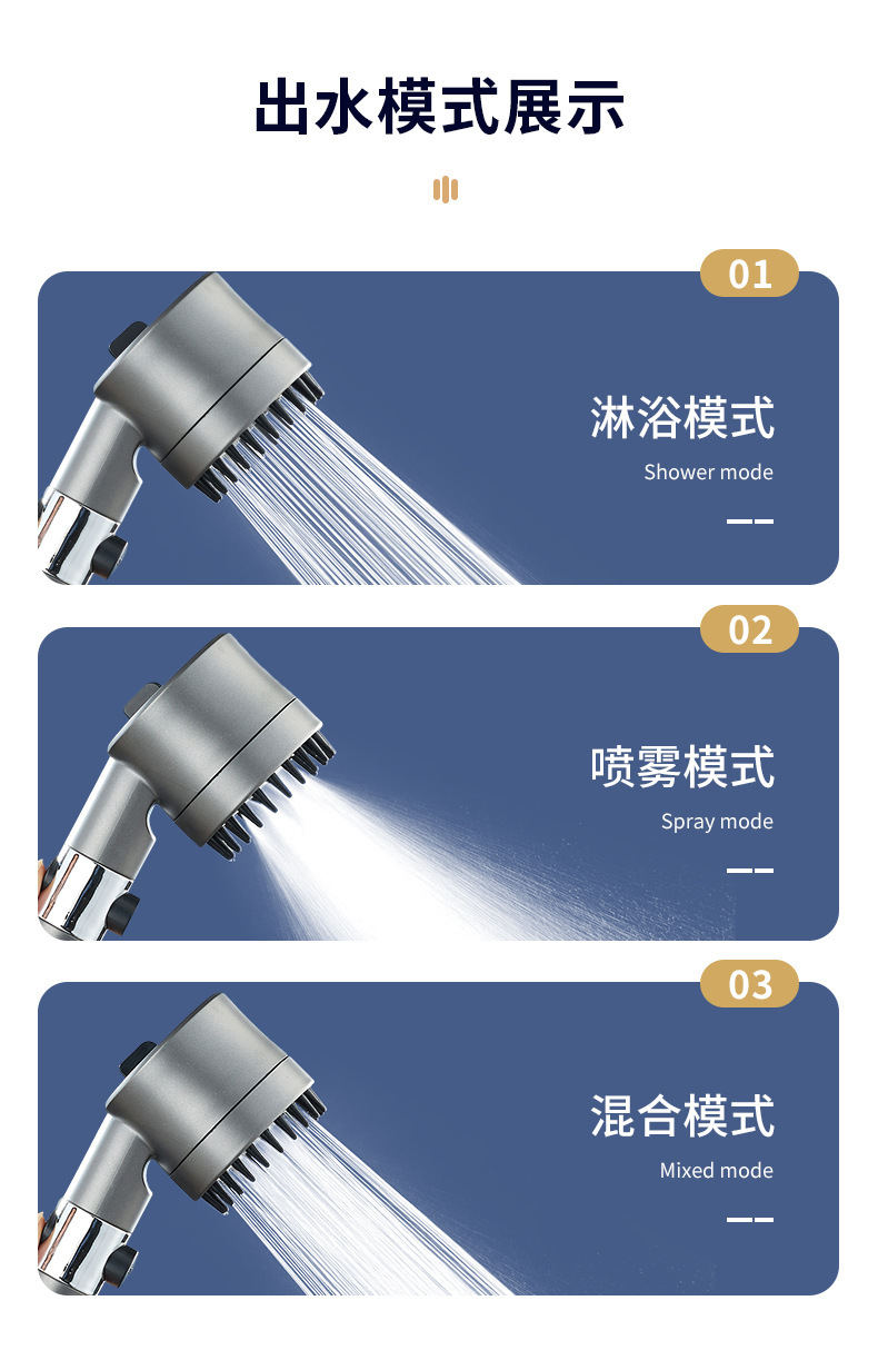 강력한 분사력의 헤어드라이어 샤워기 세트, 컬러 박스, 휴대용 가압 샤워기, 필터, 3단계 욕실 샤워기