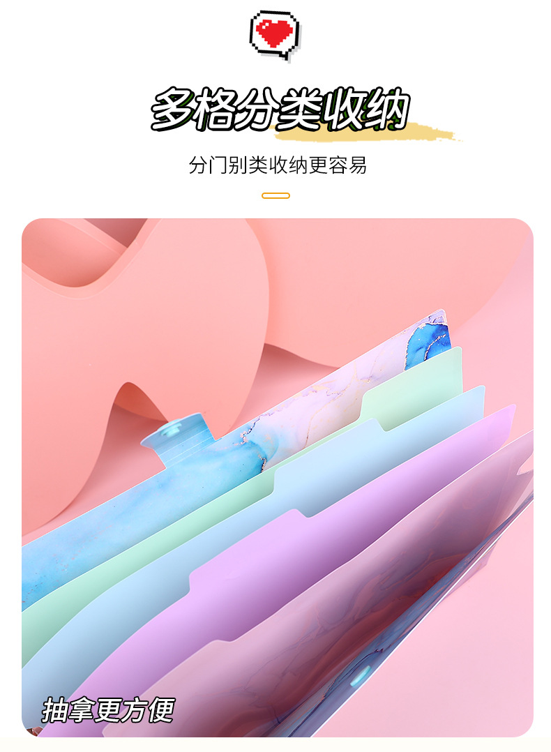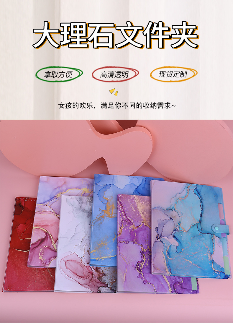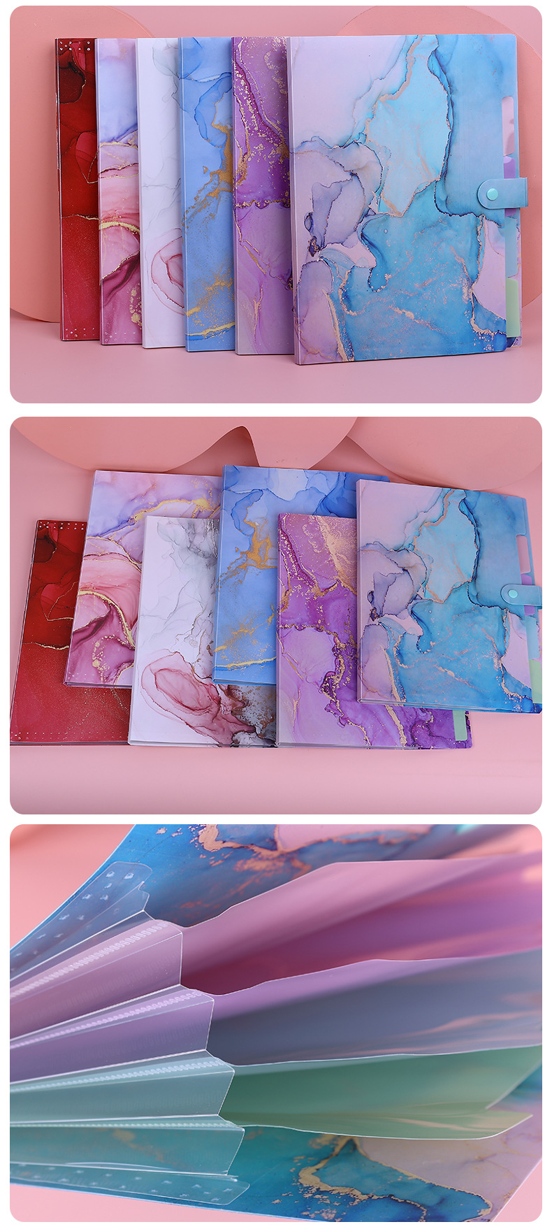 대리석 금박 파일 폴더 5개입 사무용 재무 파일 가방 시험지 다층 수납 가방 정보 파일 폴더