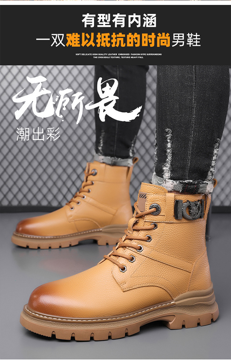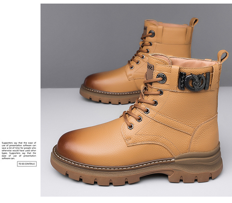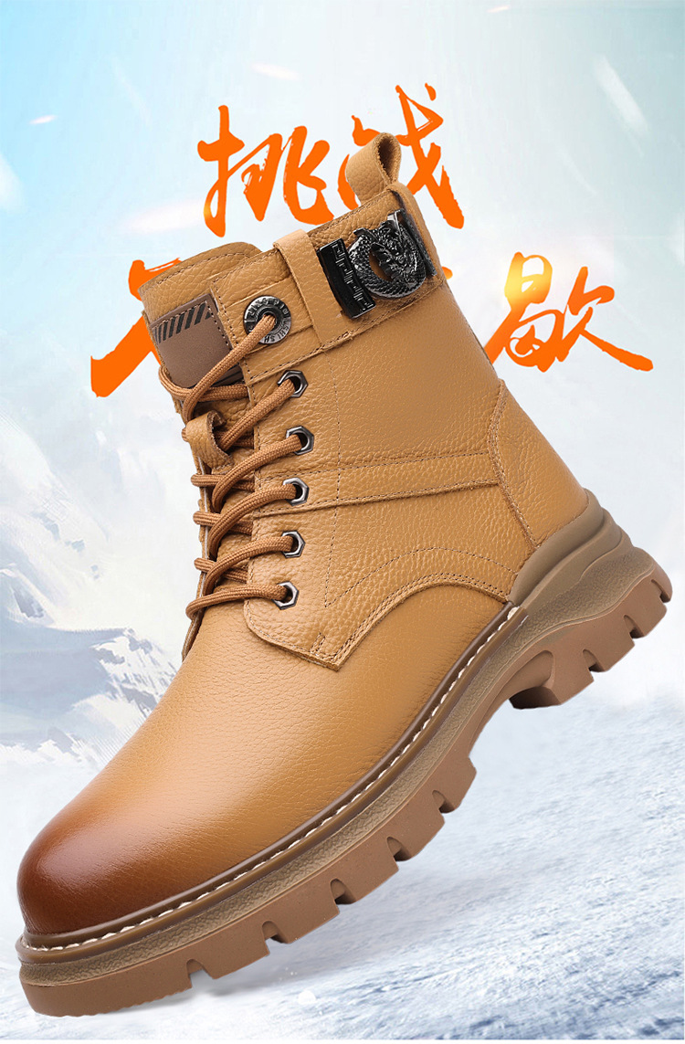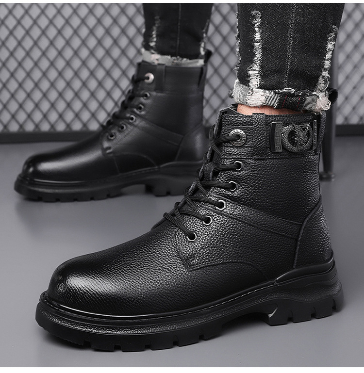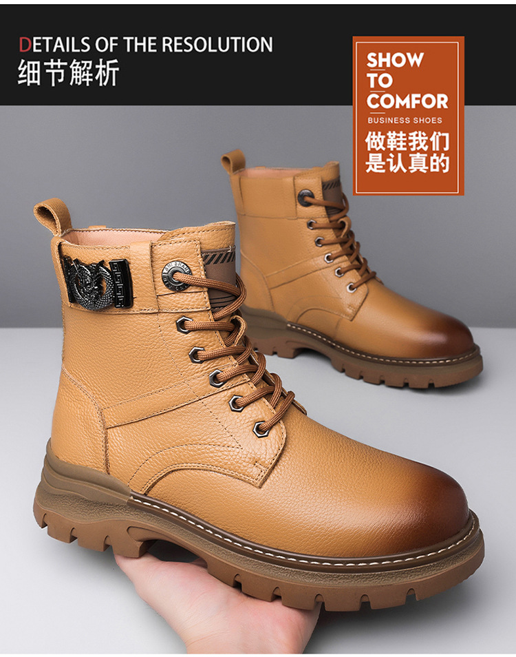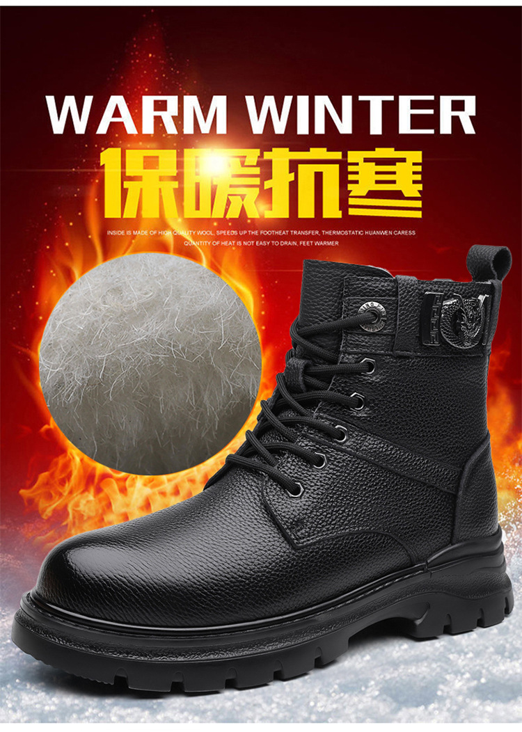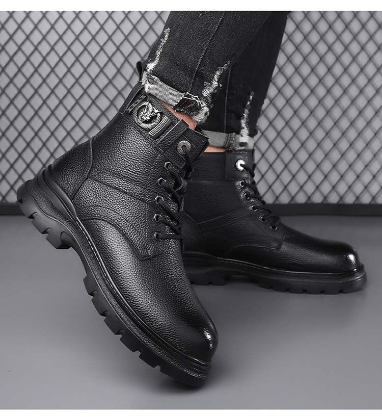 2024 남성용 천연 가죽 하이탑 슈즈, 남성용 마틴 부츠, 플러스 벨벳 안감 따뜻한 면 가죽 부츠, 남성용 스노우 부츠, 방수 및 미끄럼 방지