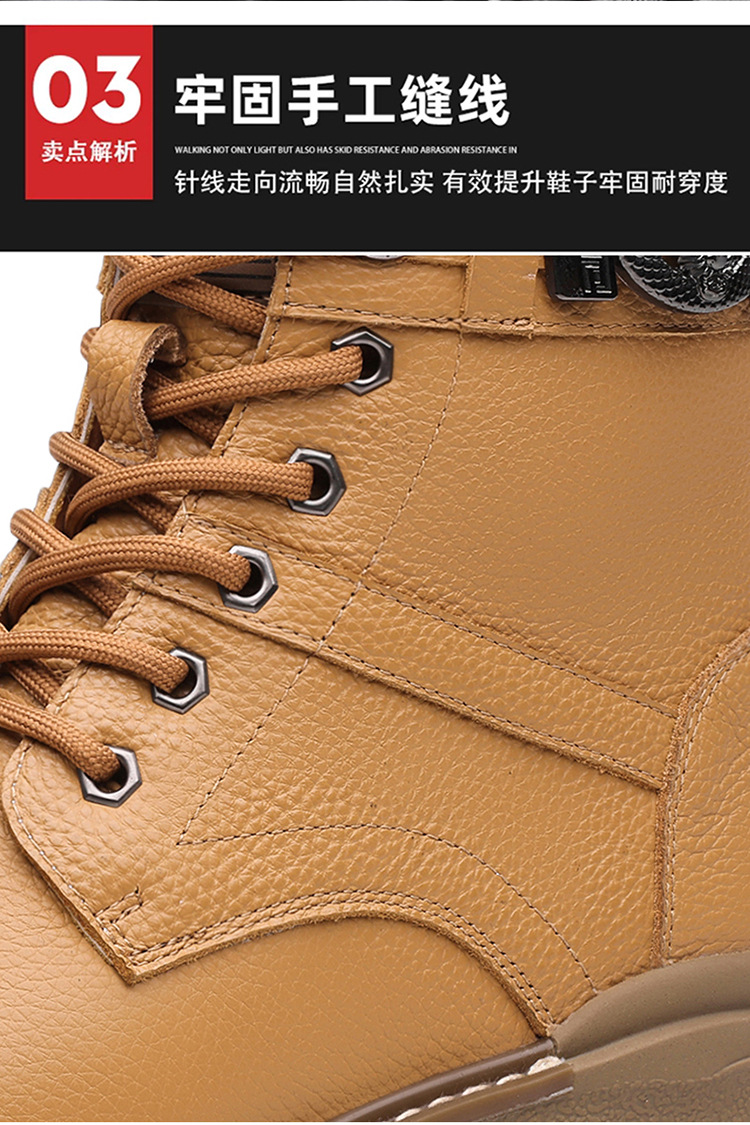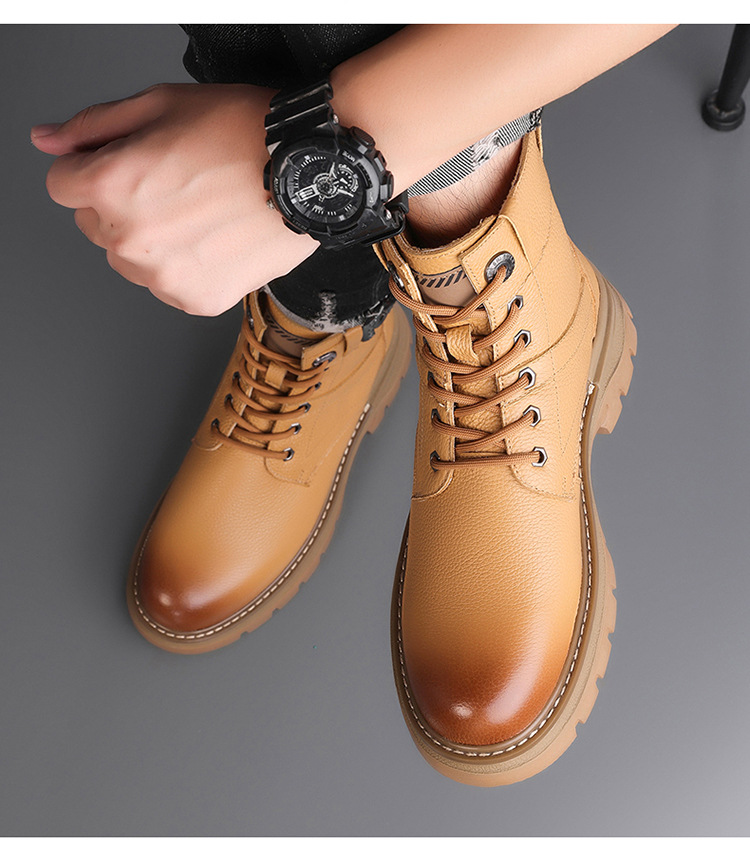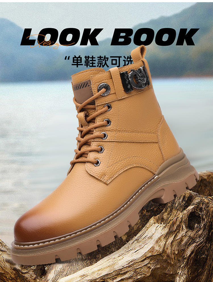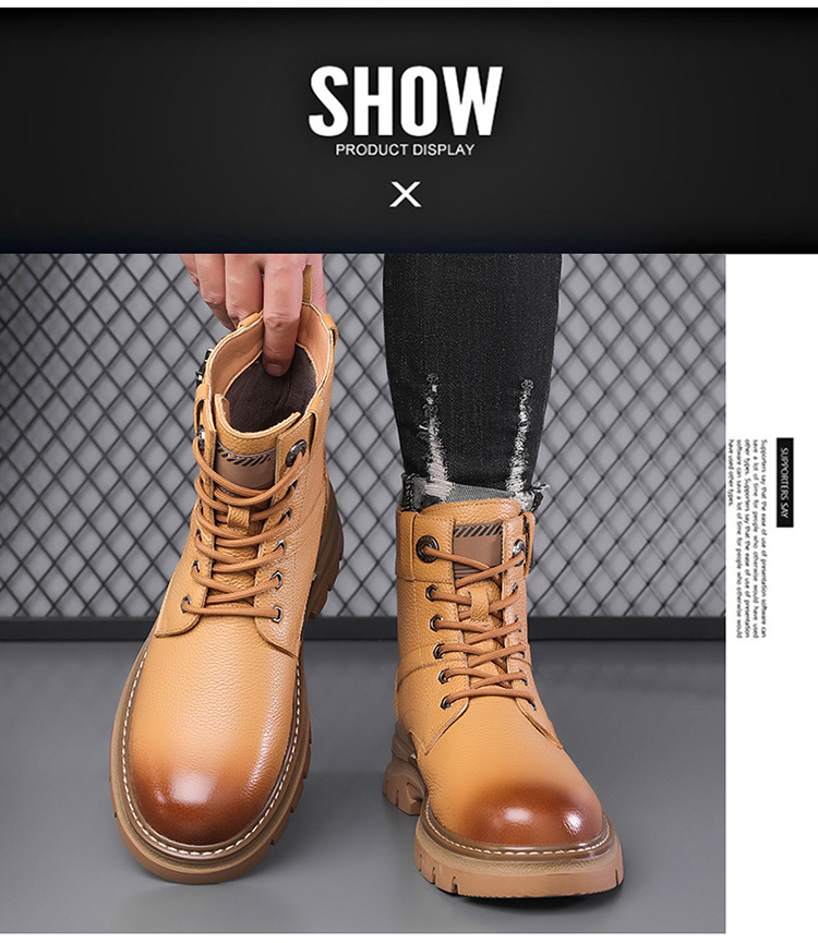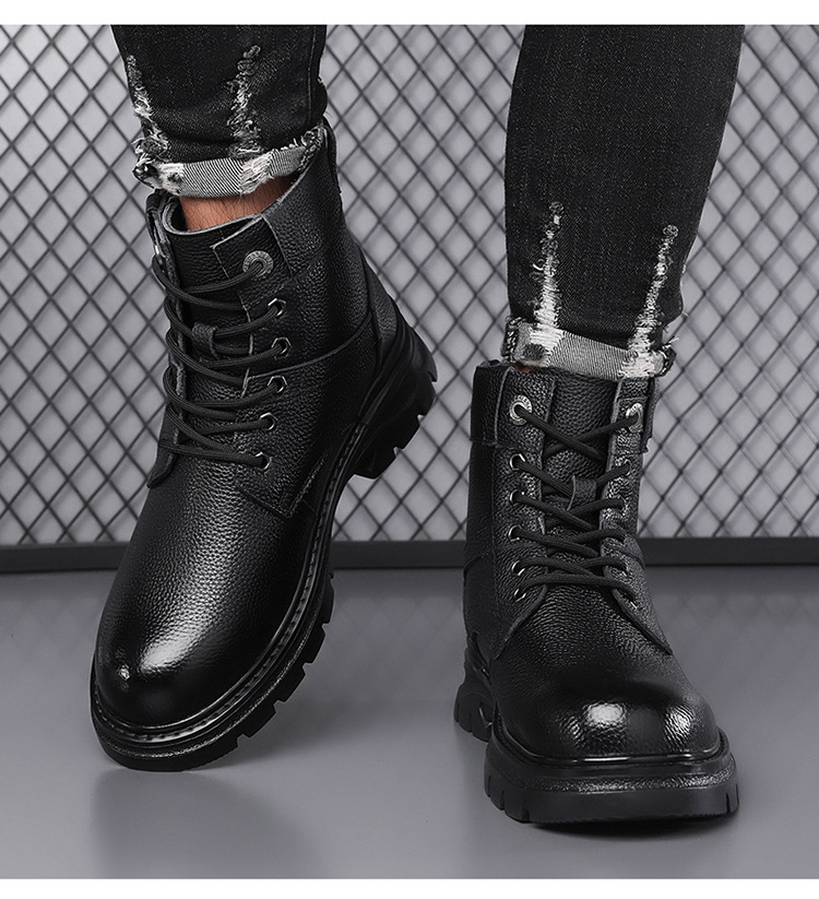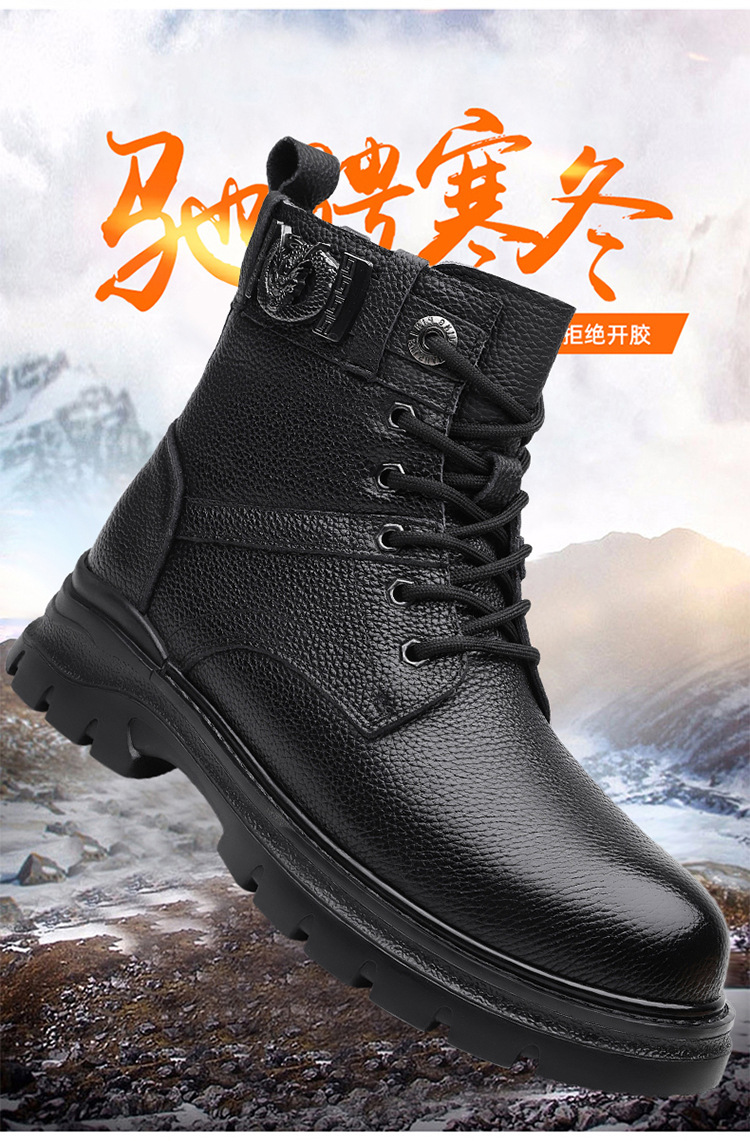 2024 남성용 천연 가죽 하이탑 슈즈, 남성용 마틴 부츠, 플러스 벨벳 안감 따뜻한 면 가죽 부츠, 남성용 스노우 부츠, 방수 및 미끄럼 방지