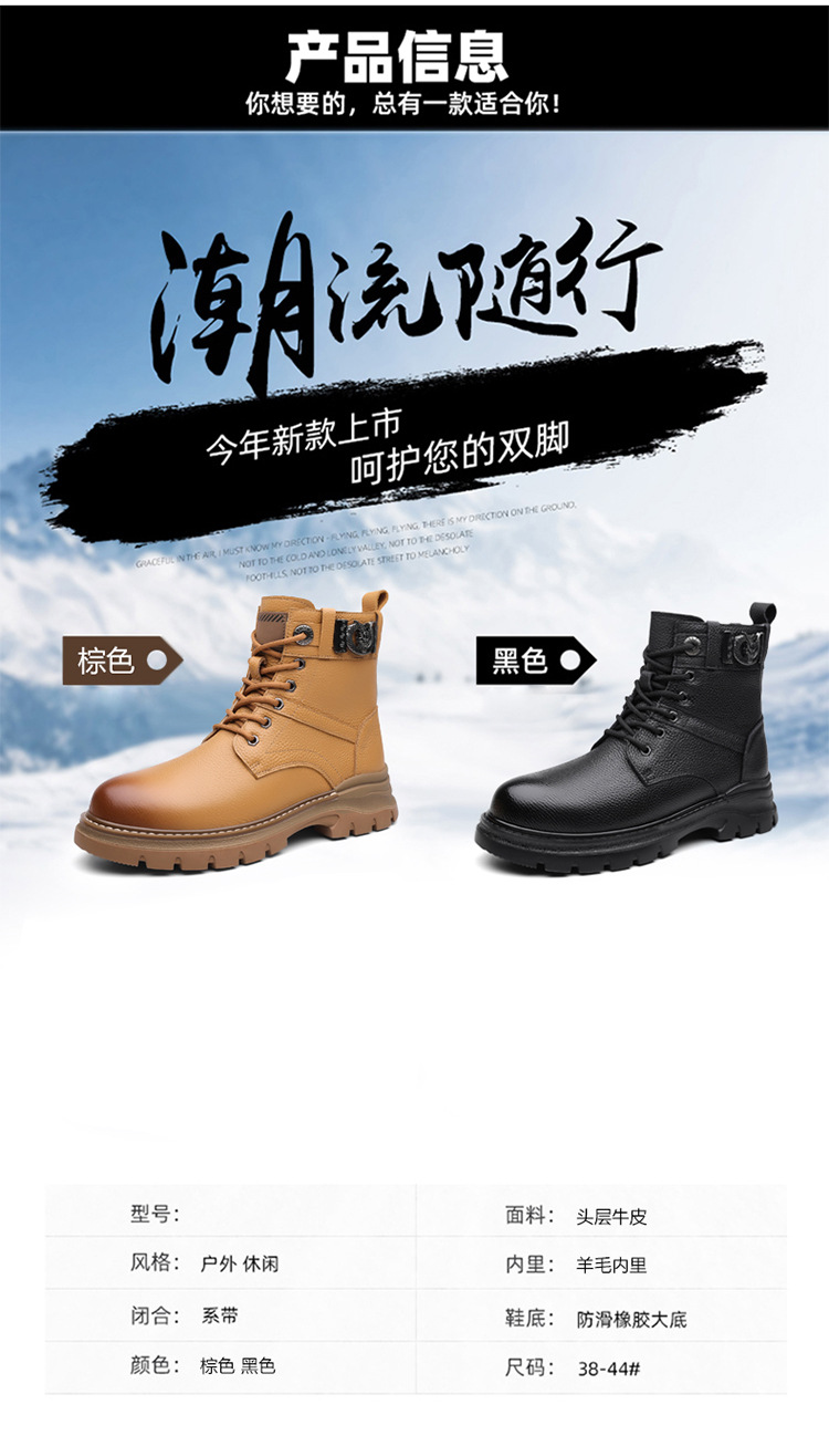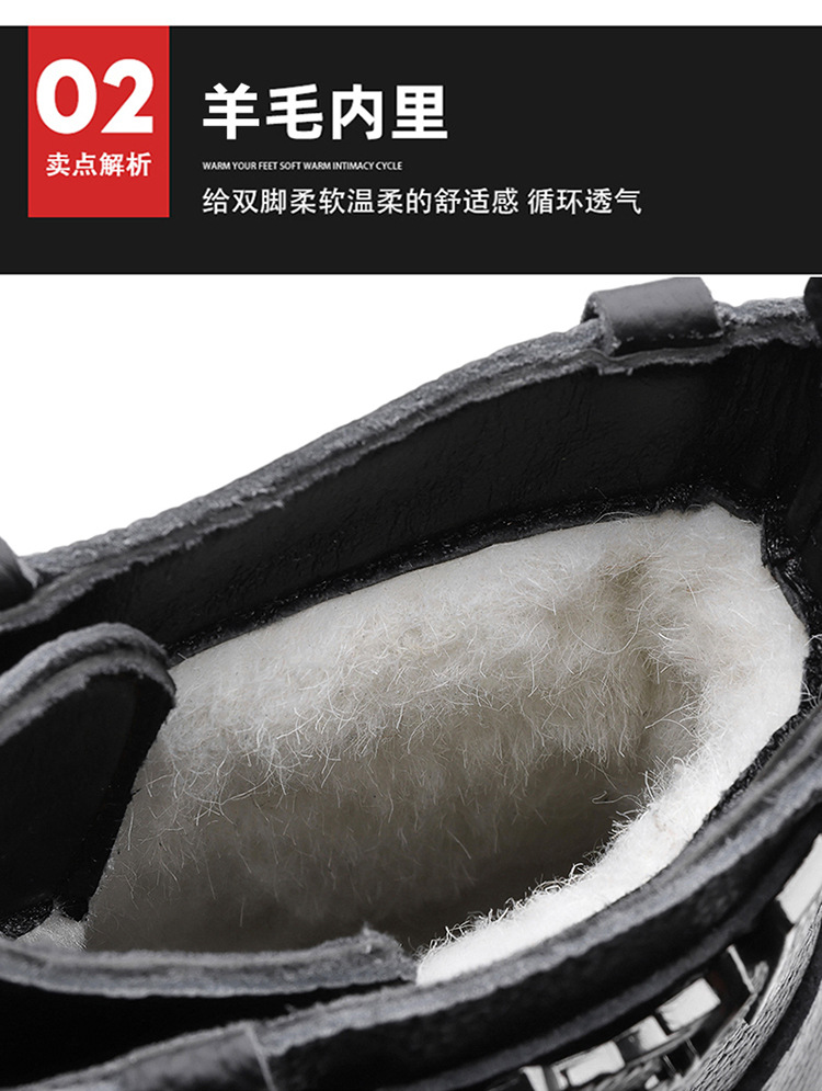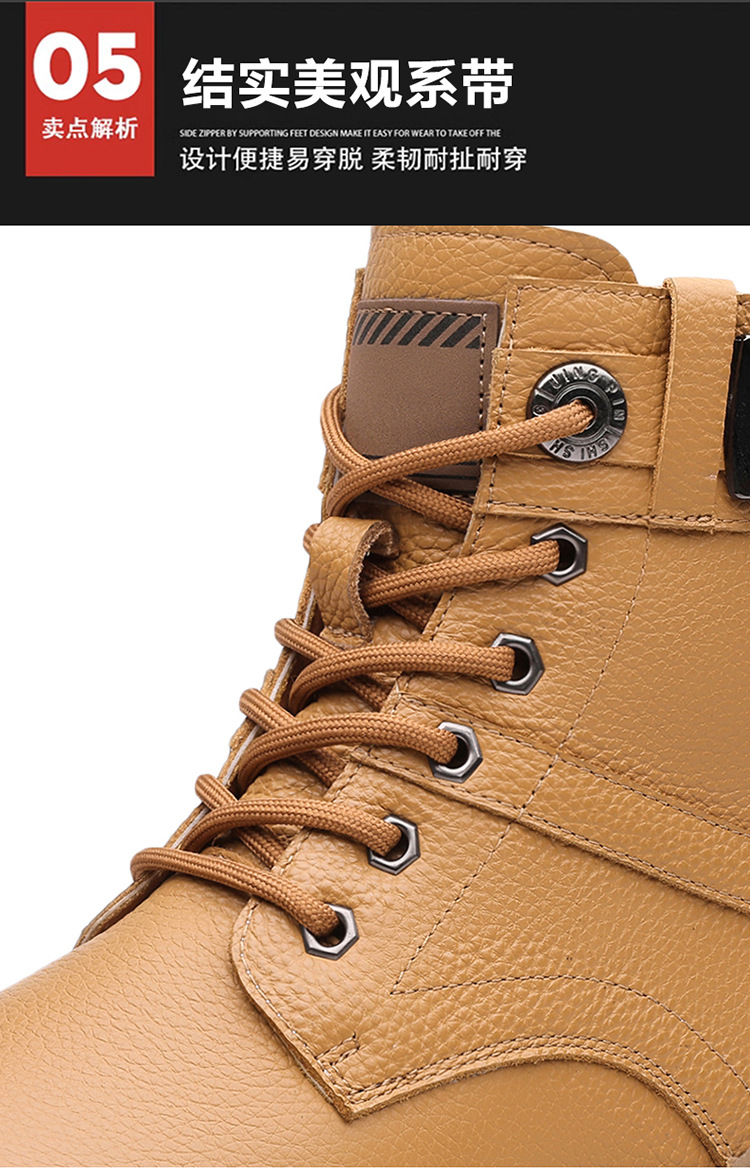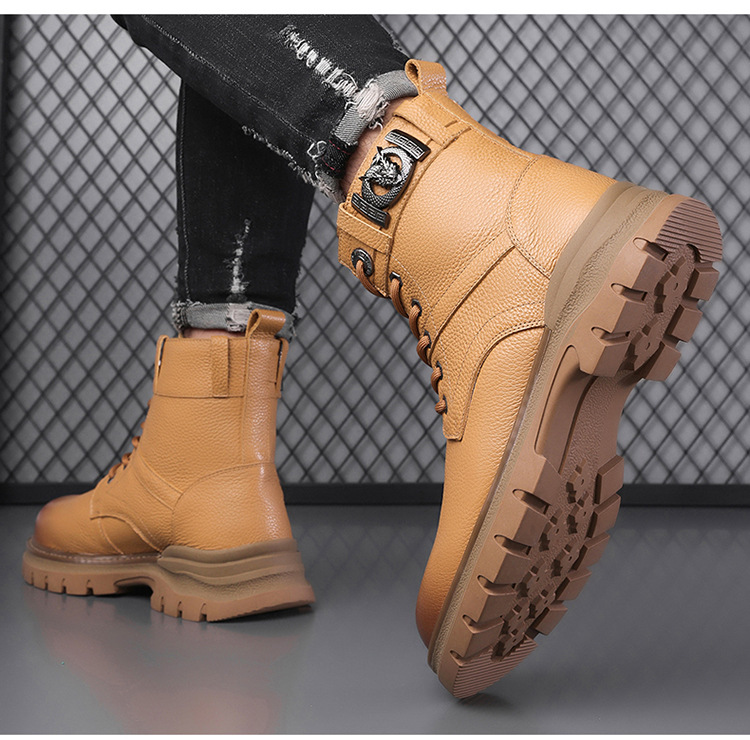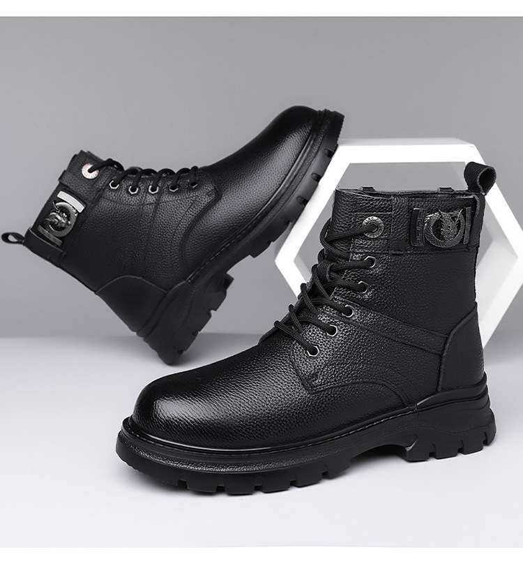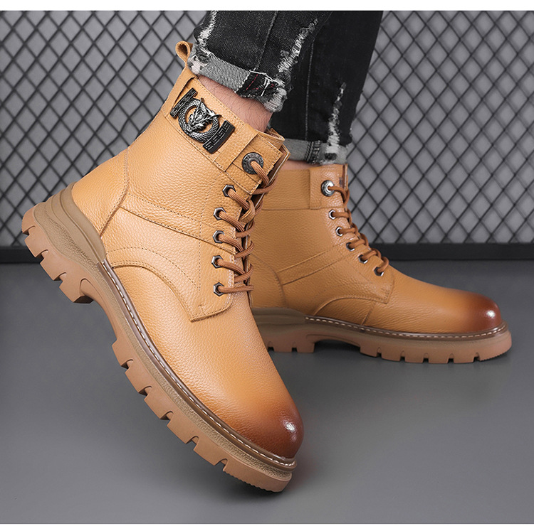 2024 남성용 천연 가죽 하이탑 슈즈, 남성용 마틴 부츠, 플러스 벨벳 안감 따뜻한 면 가죽 부츠, 남성용 스노우 부츠, 방수 및 미끄럼 방지