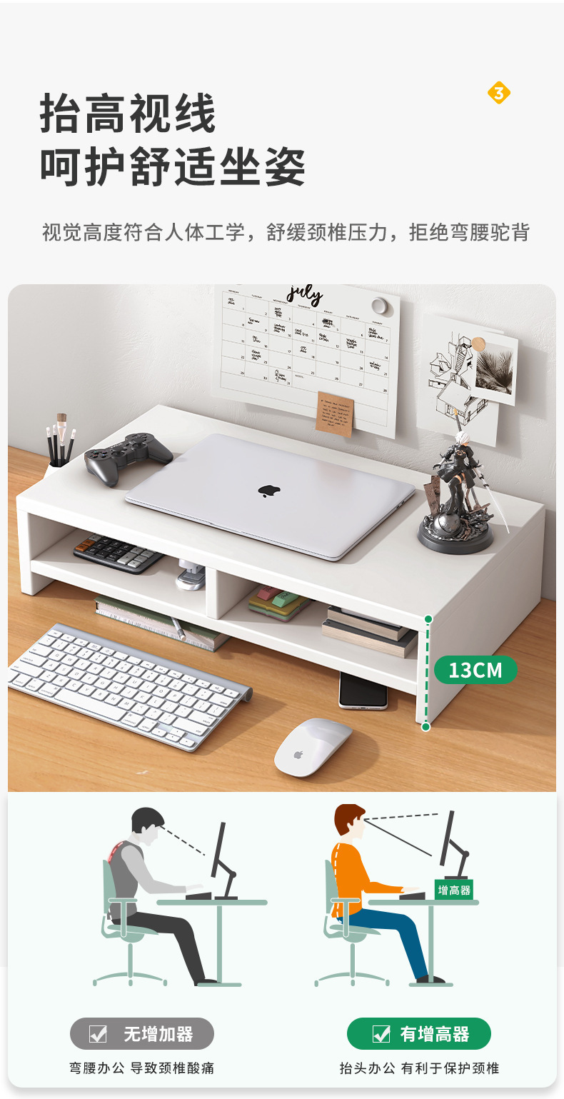 노트북 높이 조절 스탠드, 사무실 책상 수납 선반, 데스크탑 모니터 화면 스탠드 받침대