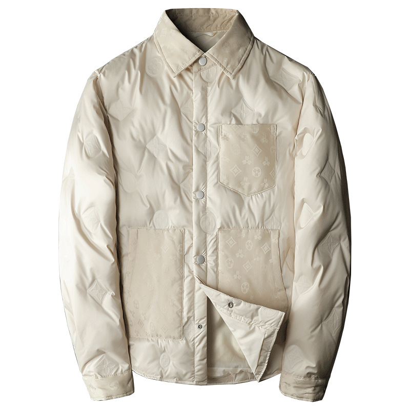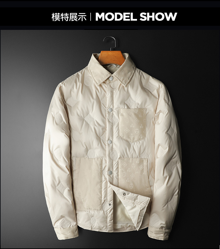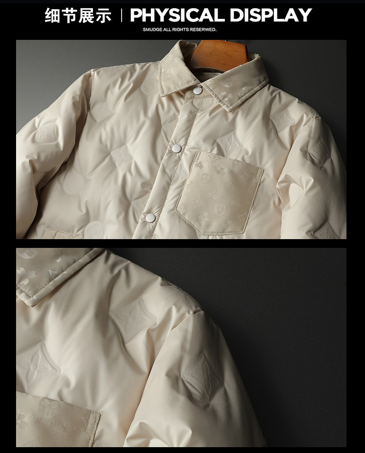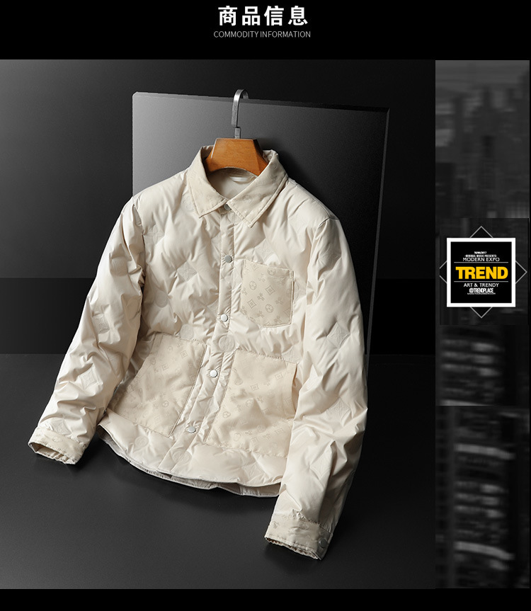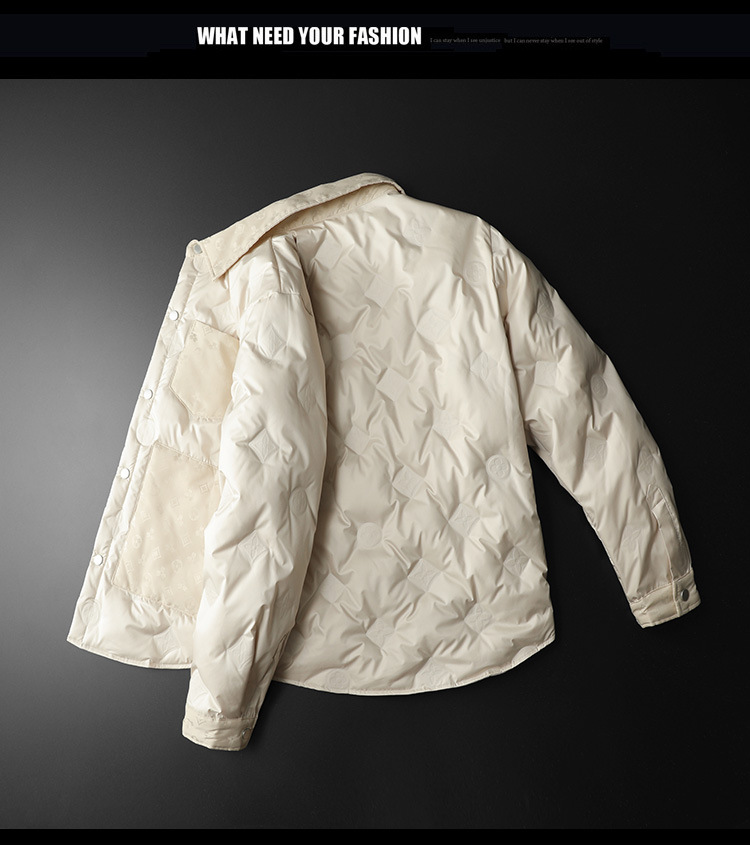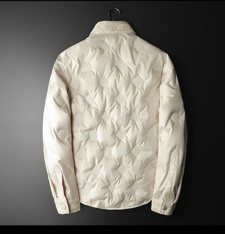 2025 겨울 신상 남성 캐주얼 라펠 셔츠 칼라 셔츠 다운 재킷 화이트 덕다운 셔닐 스판덱스 미디엄