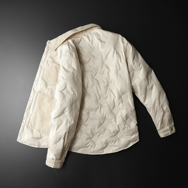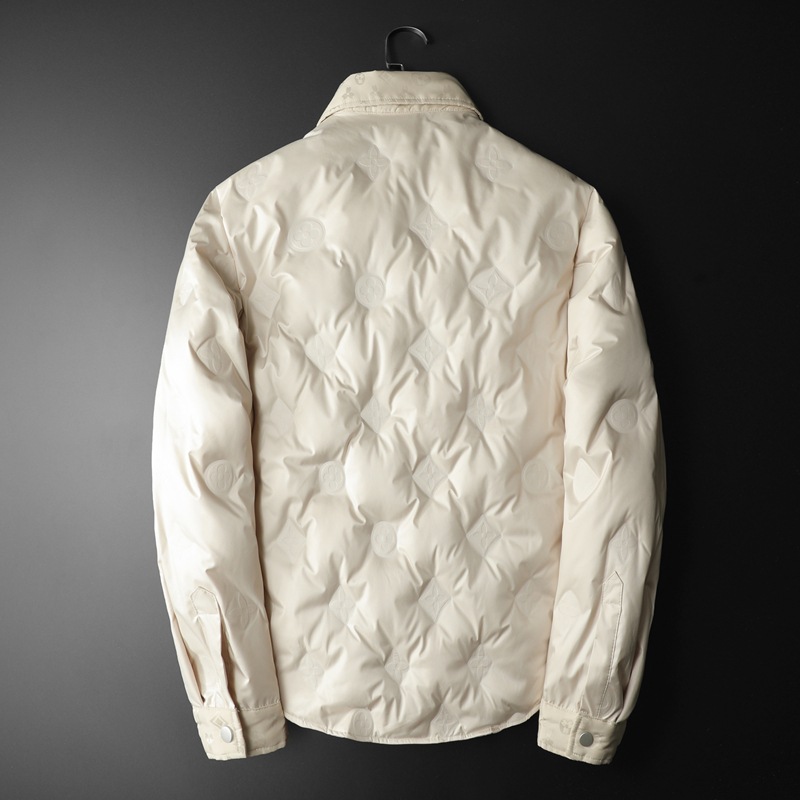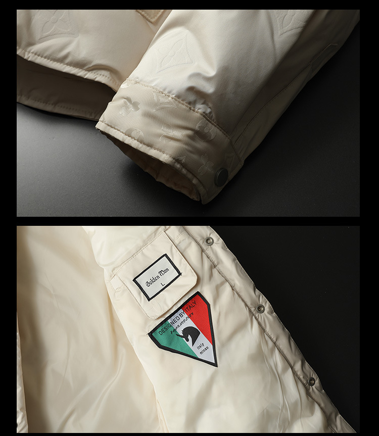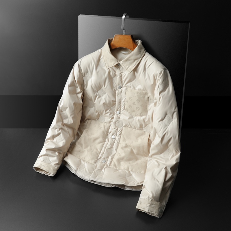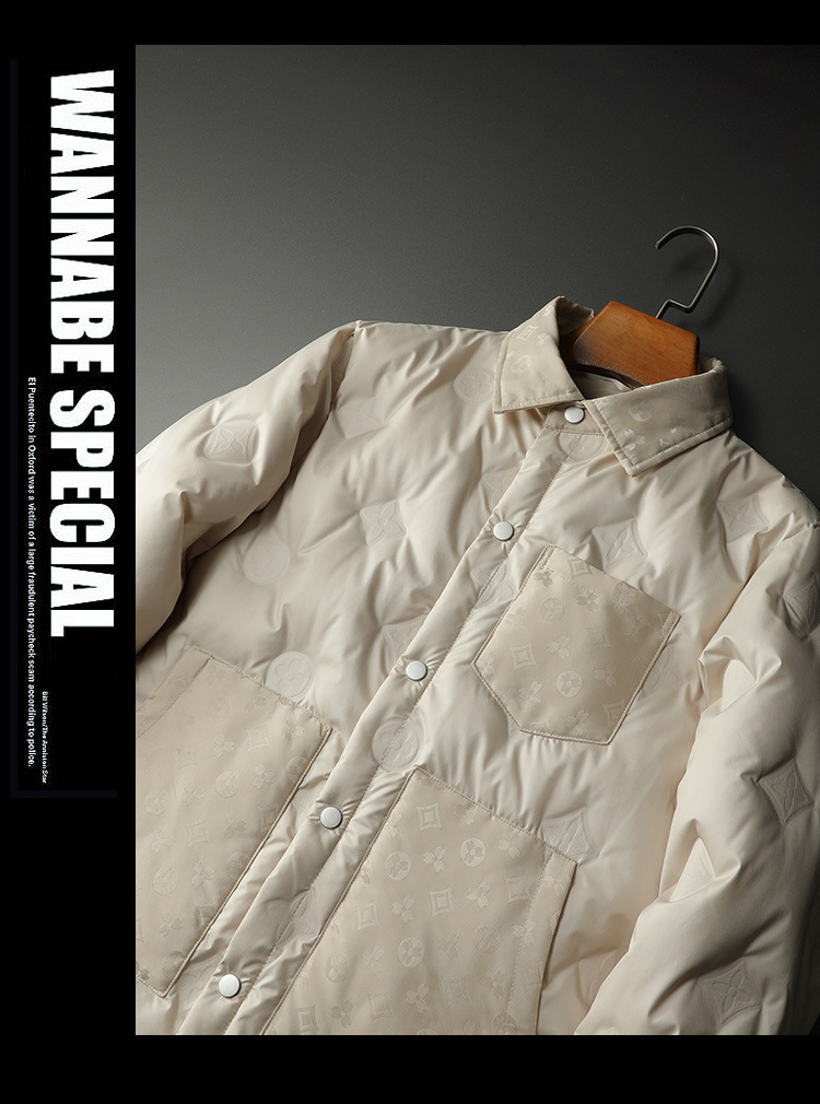 2025 겨울 신상 남성 캐주얼 라펠 셔츠 칼라 셔츠 다운 재킷 화이트 덕다운 셔닐 스판덱스 미디엄
