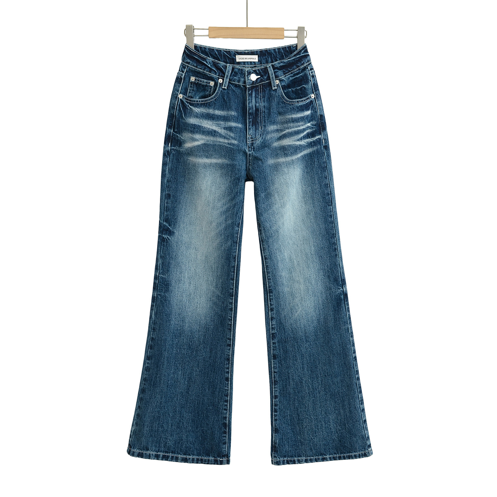 5602-새로운 겨울 2024 유럽과 미국 스타일의 뜨거운 소녀 섹시한 넓은 다리 청바지 여성 복고풍 느슨한 조커 바지