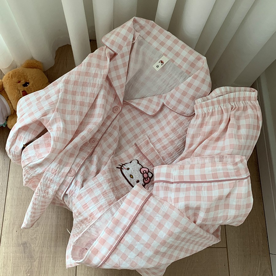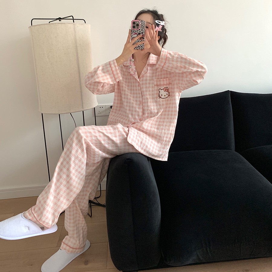만화 KT 고양이 잠옷 여성의 봄과 가을 새로운 긴 소매 바지 구름 면 달콤한 귀여운 학생 홈 의류 세트