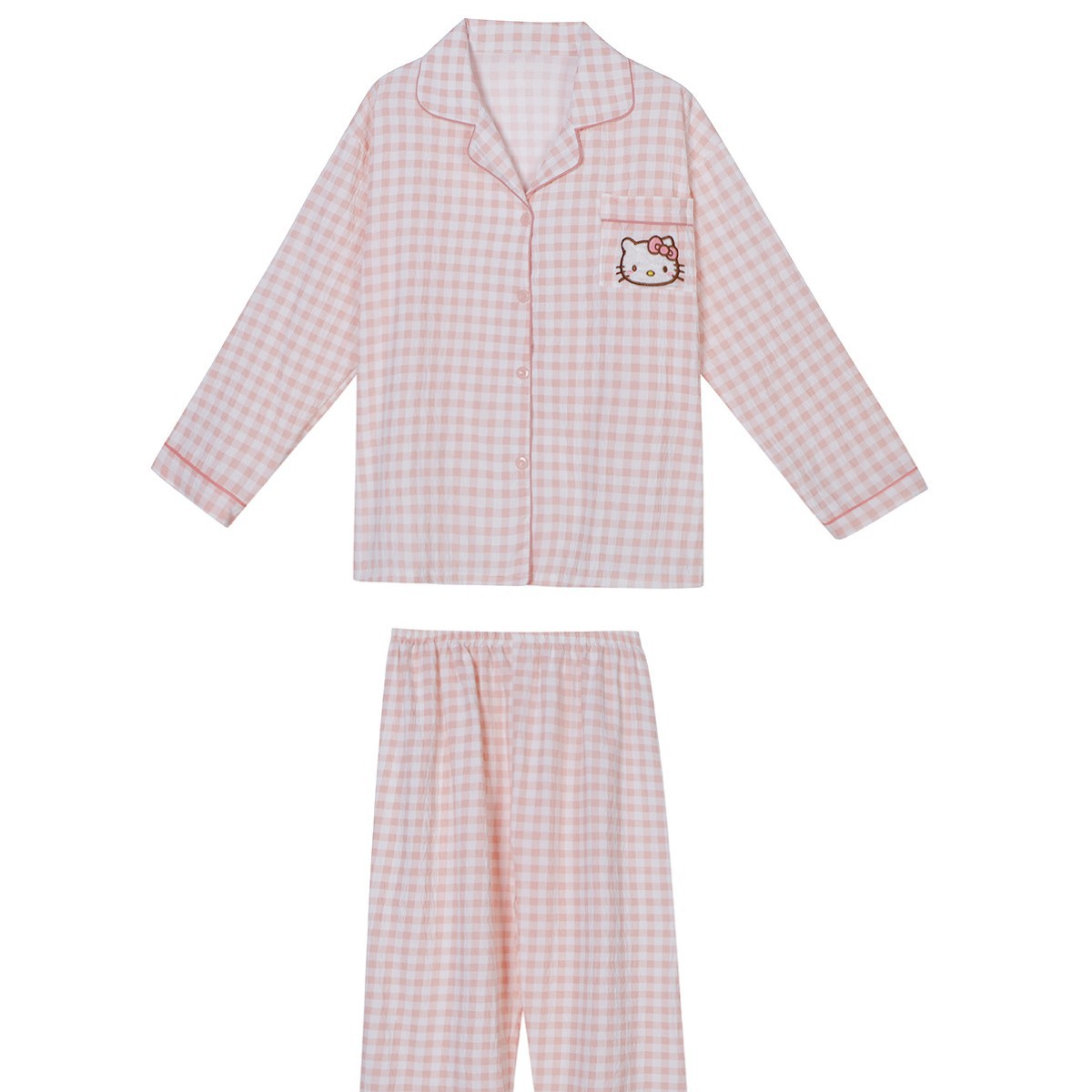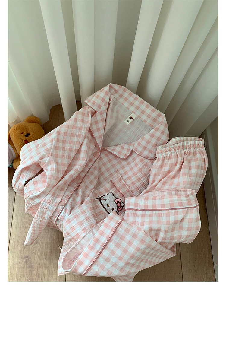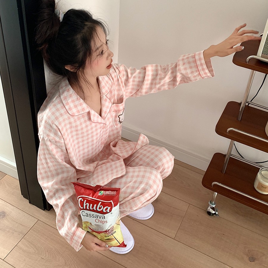 LW* 핑크 체크 무늬 KT 고양이 구름 코튼 슈트