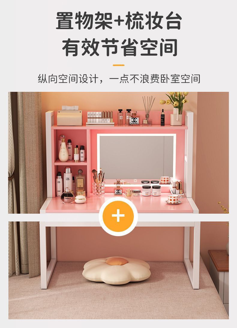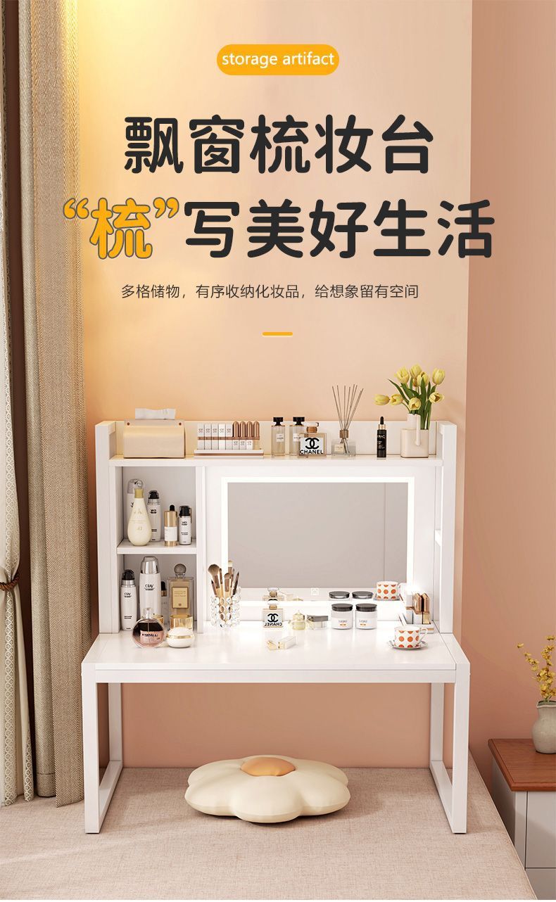 창가 화장대 수납장 일체형 침실 심플 침대 옆 화장대 여학생 기숙사 침대 테이블 메이크업 제거 거울 포함