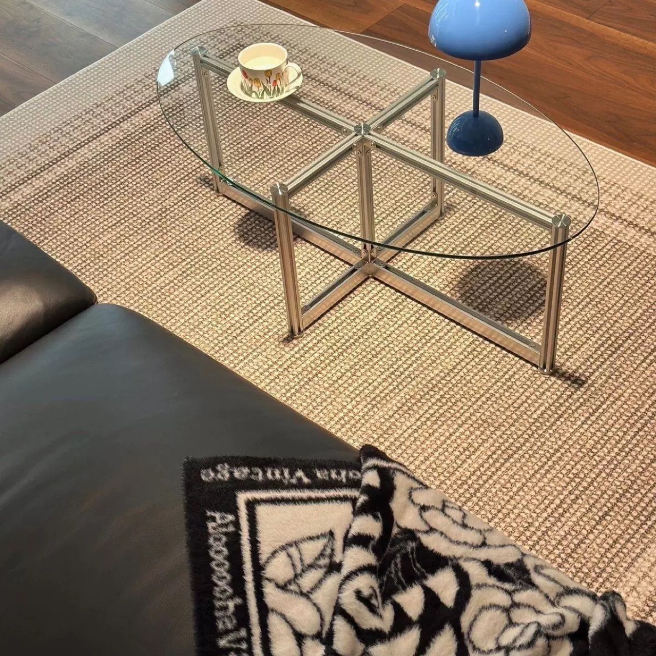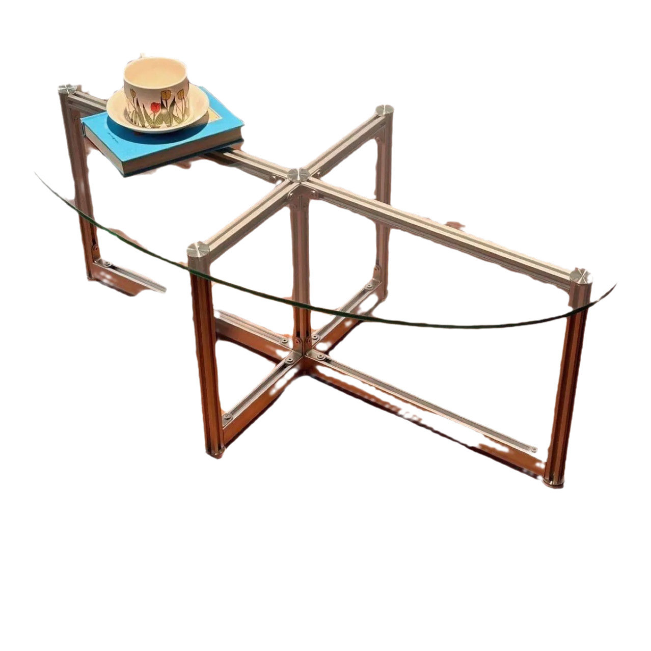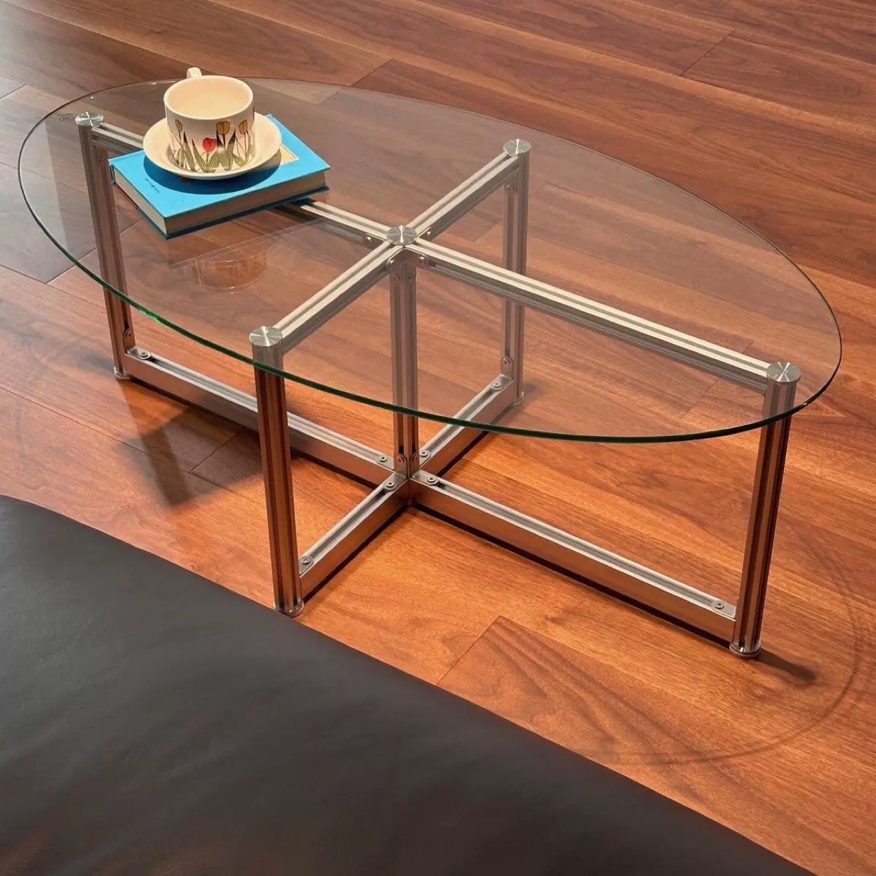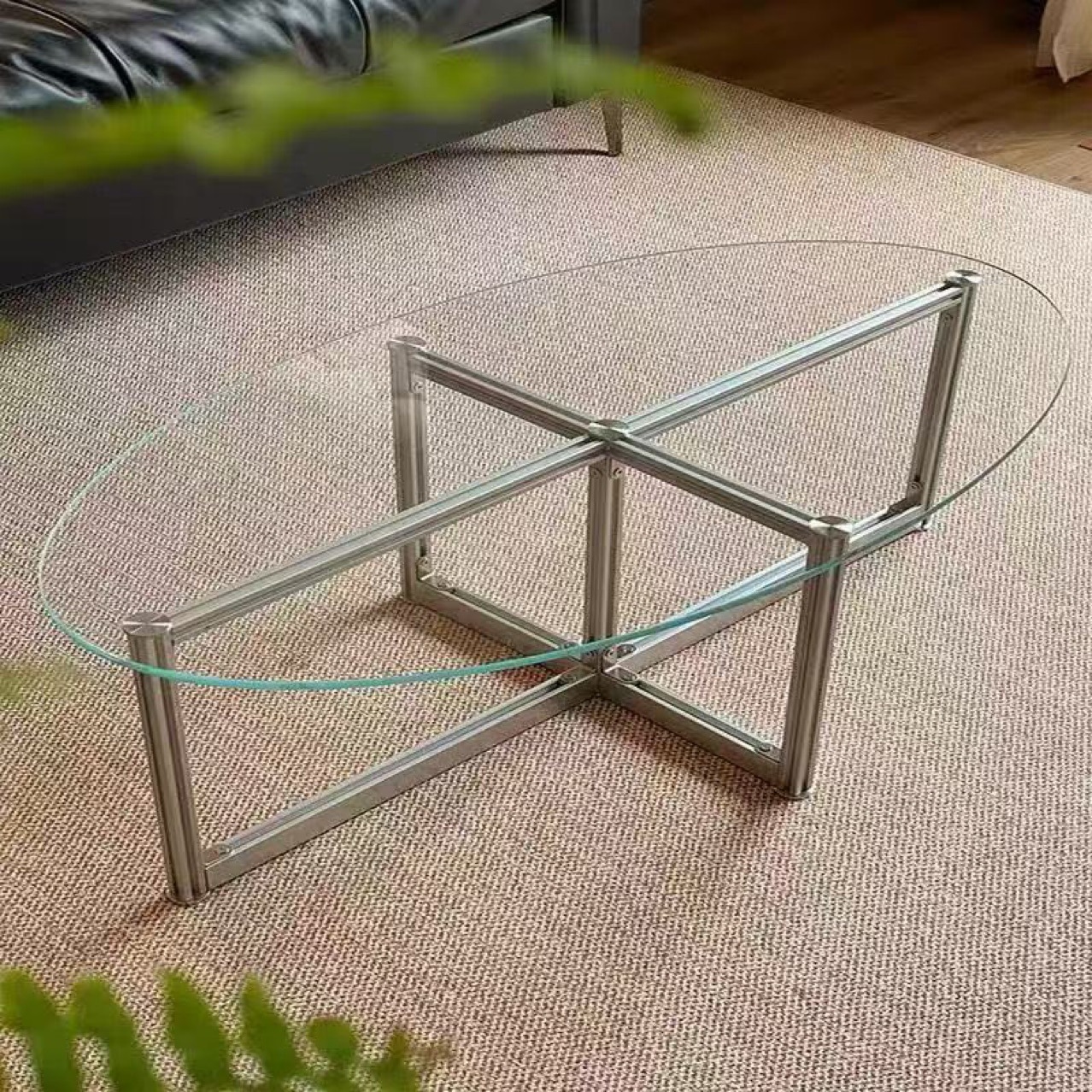 노르딕 레트로 강화 유리 커피 테이블 타원형 현대 간단한 홈 바우 하우스 작은 아파트 알루미늄 테이블