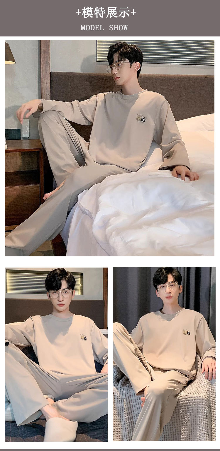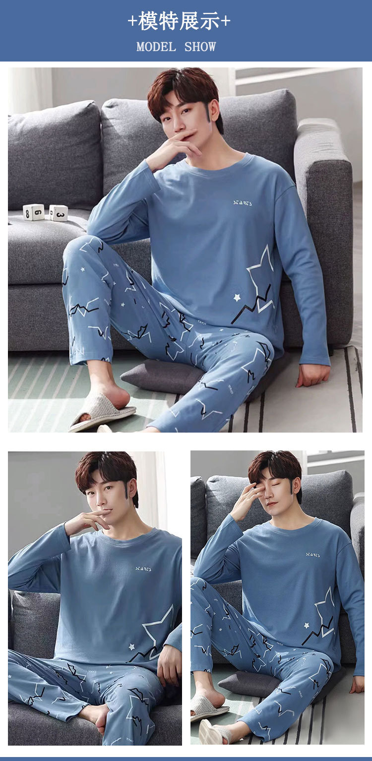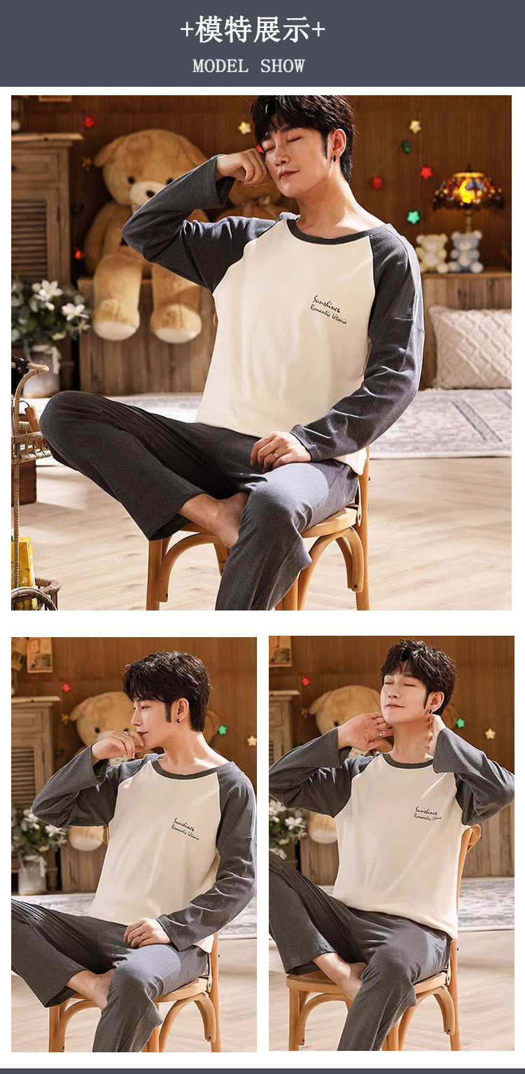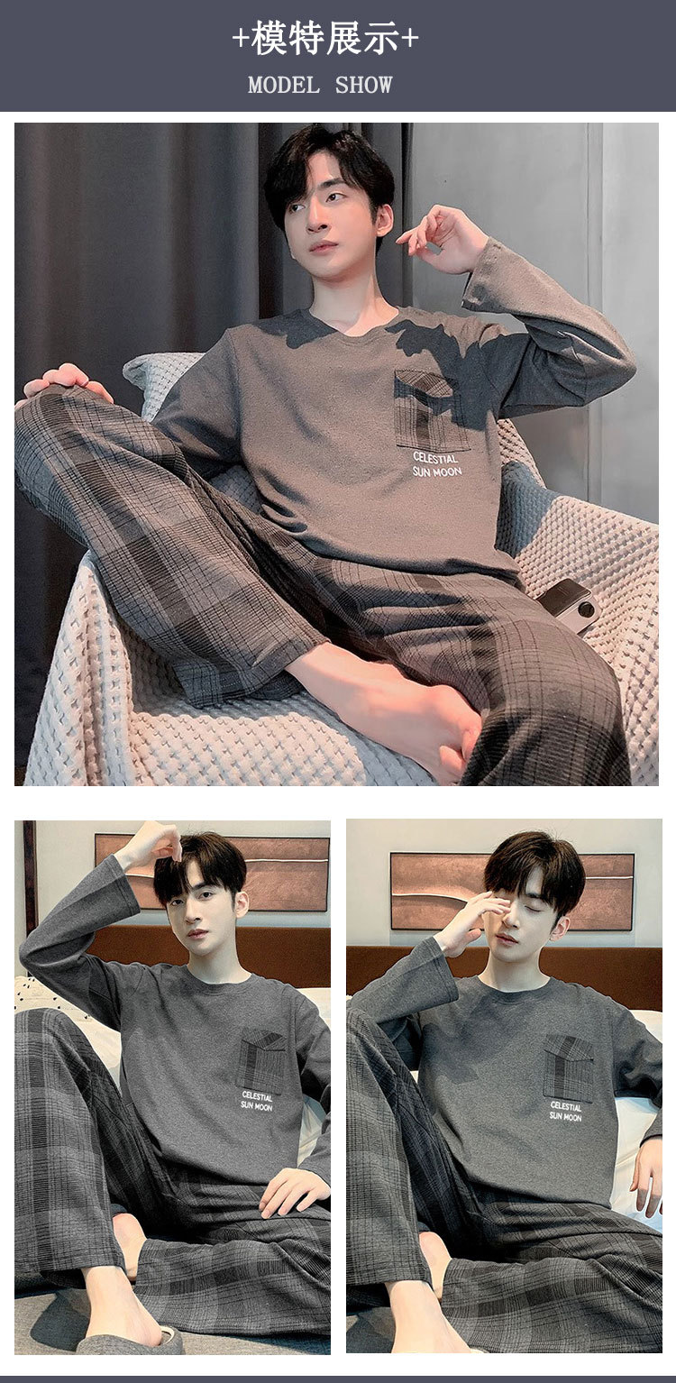 새로운 도착 잠옷 남자의 캐주얼 봄과 가을 순면 긴 소매 간단한 십대 겨울 플러스 사이즈 홈 의류 세트 착용