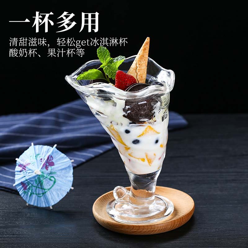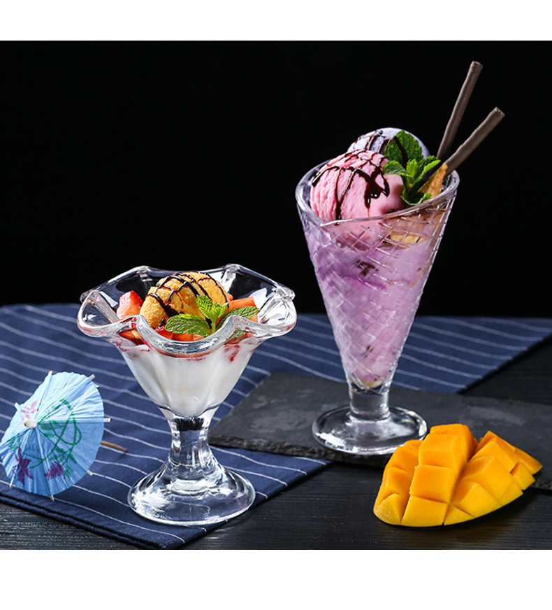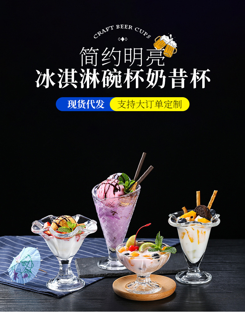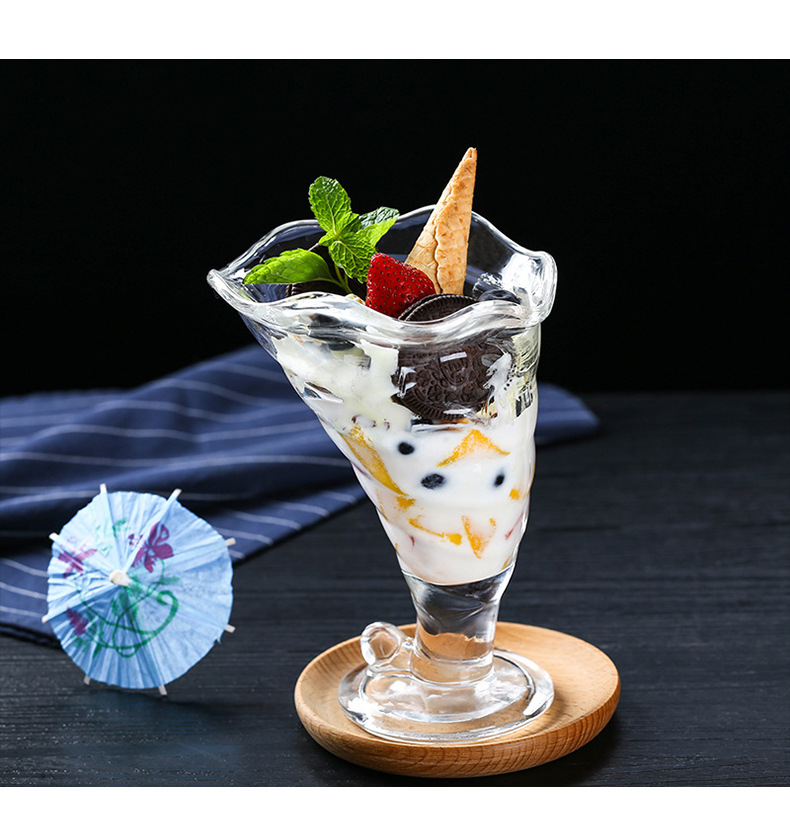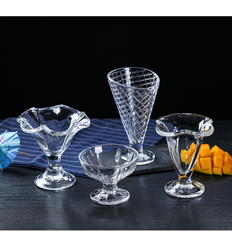 디저트 가게 스무디 컵 밀크 쉐이크 컵 우유 차 음료 아이스크림 샐러드 그릇 컬러 디저트 컵을위한 유리 아이스크림 컵