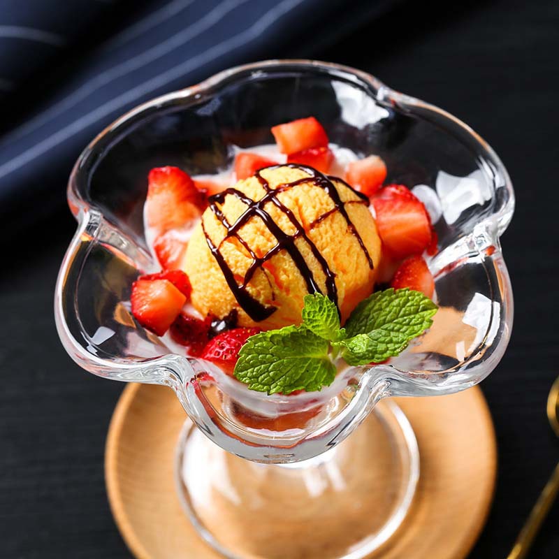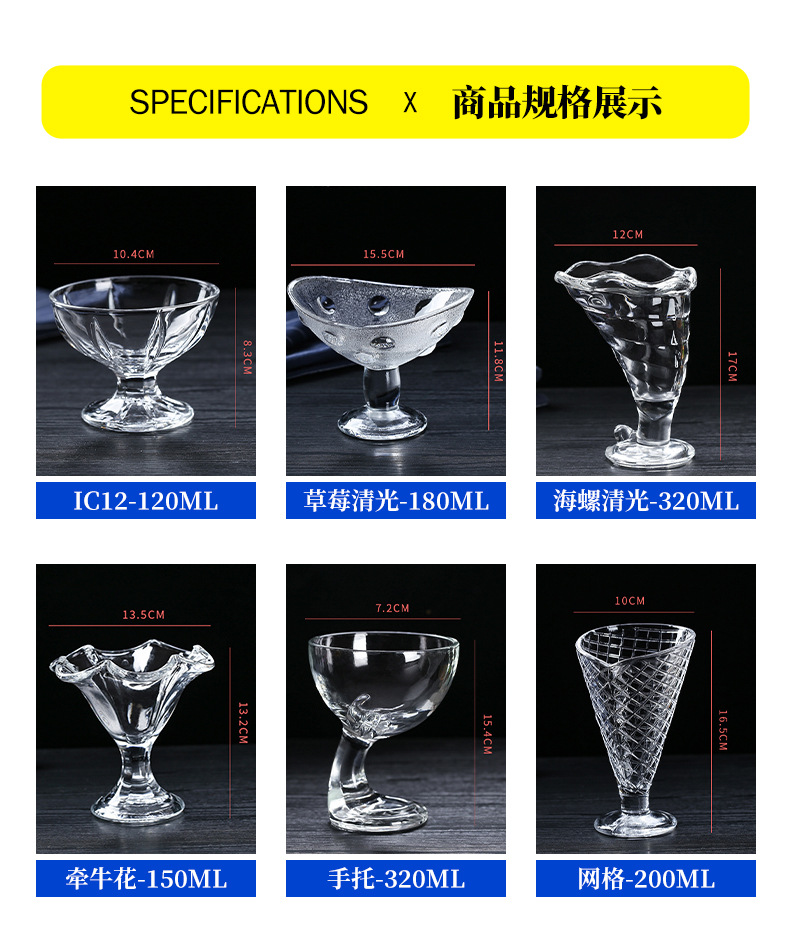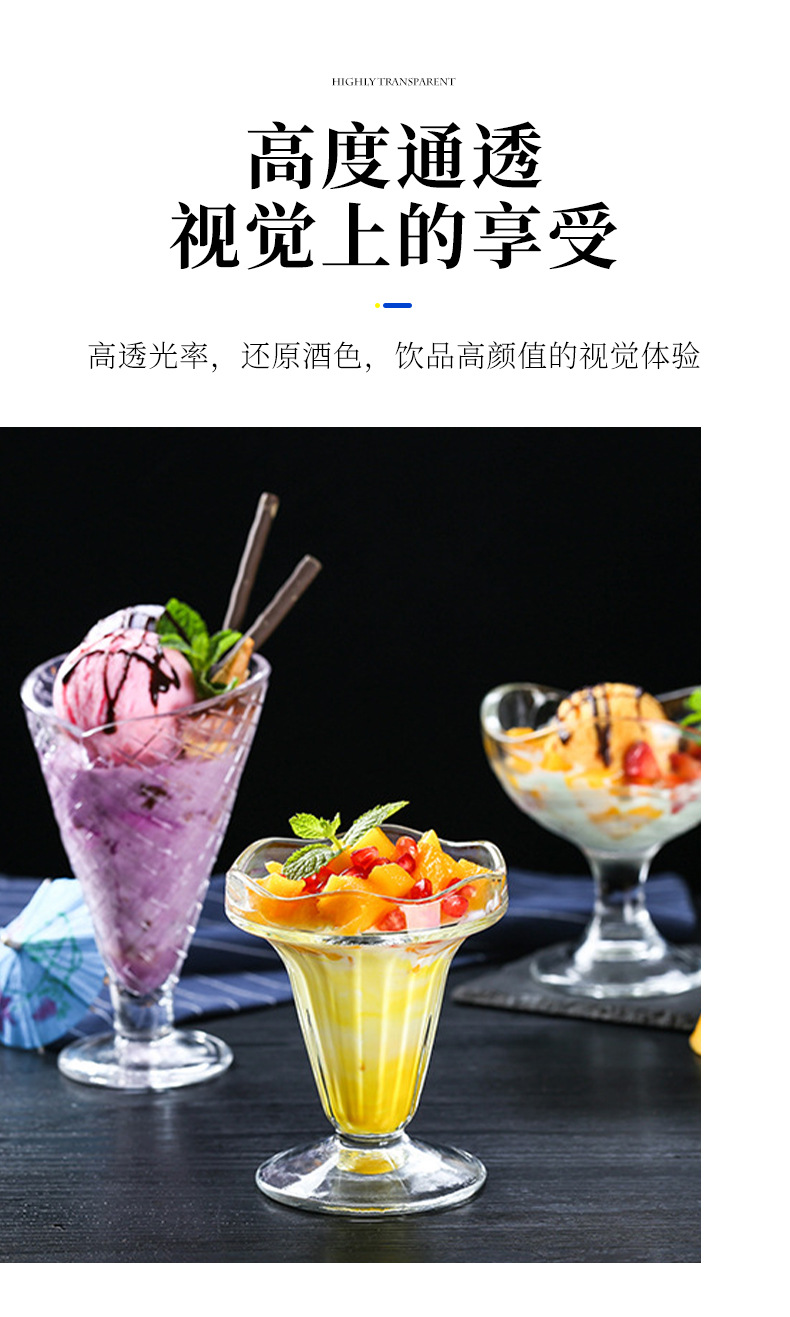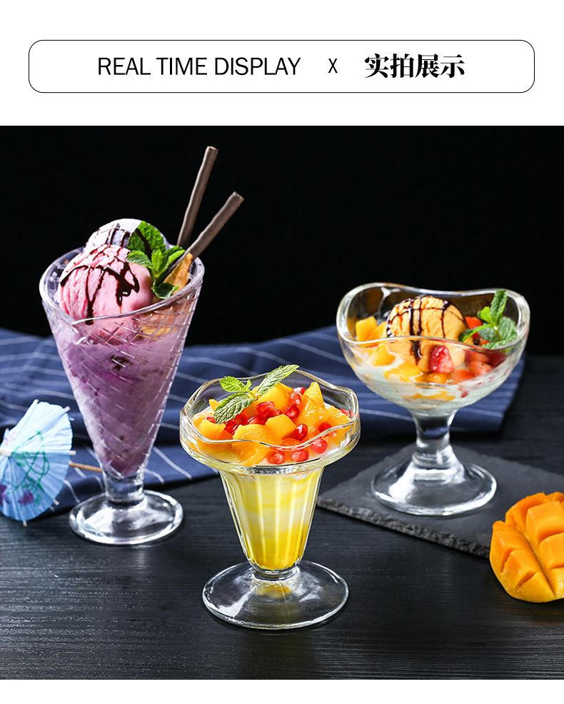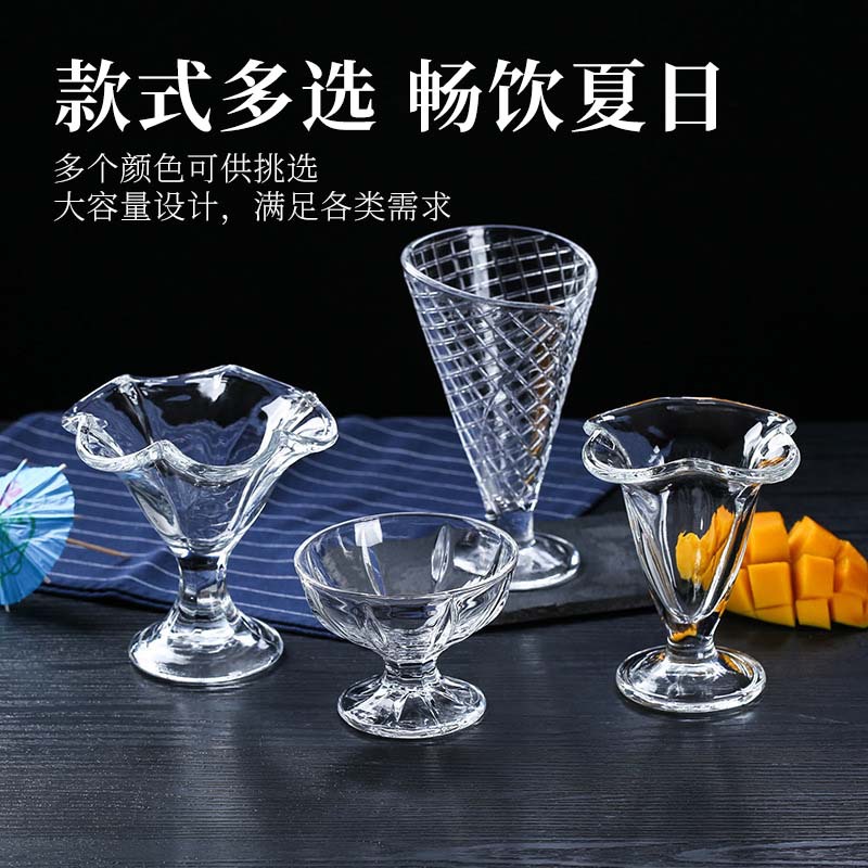 디저트 가게 스무디 컵 밀크 쉐이크 컵 우유 차 음료 아이스크림 샐러드 그릇 컬러 디저트 컵을위한 유리 아이스크림 컵