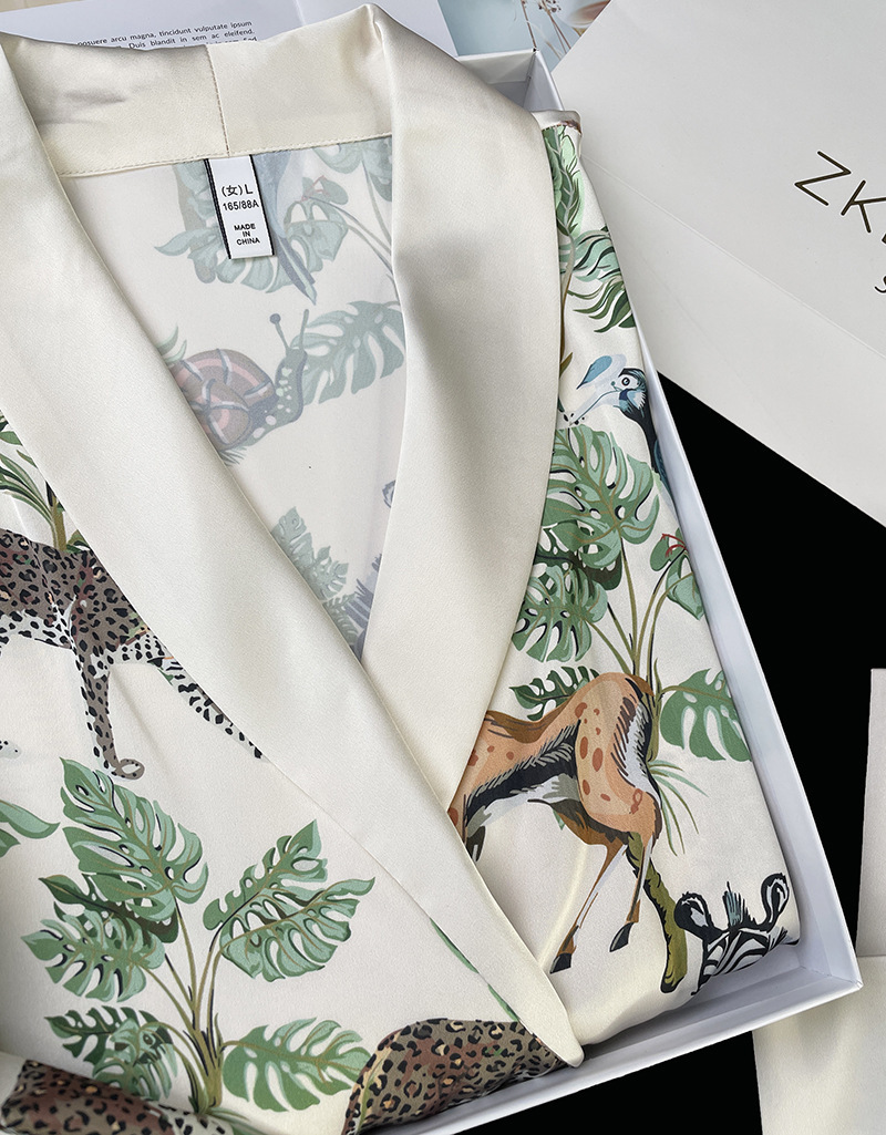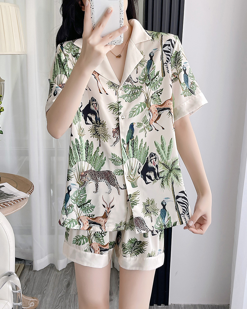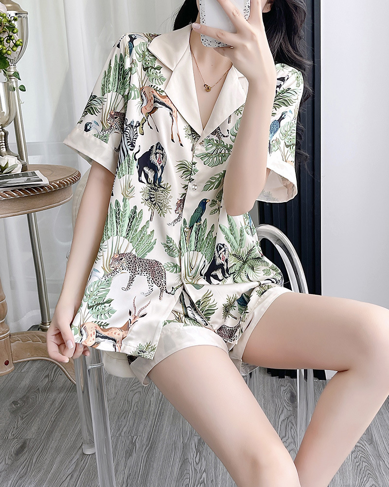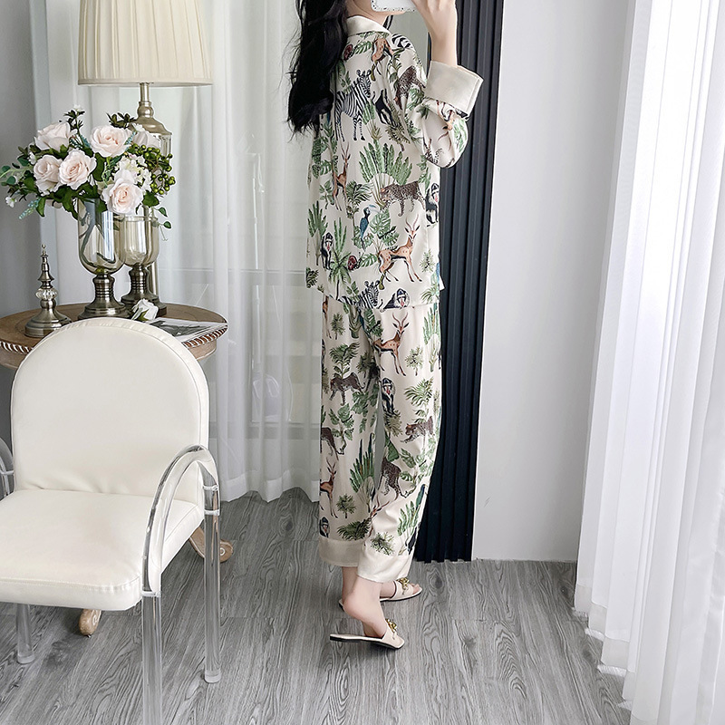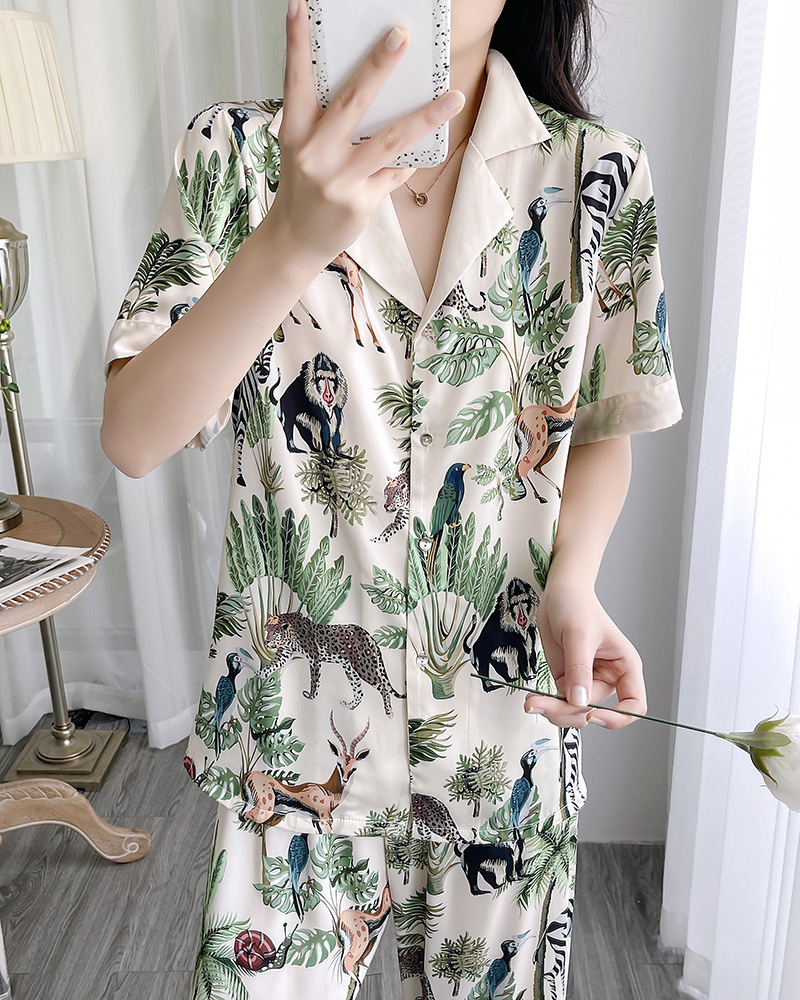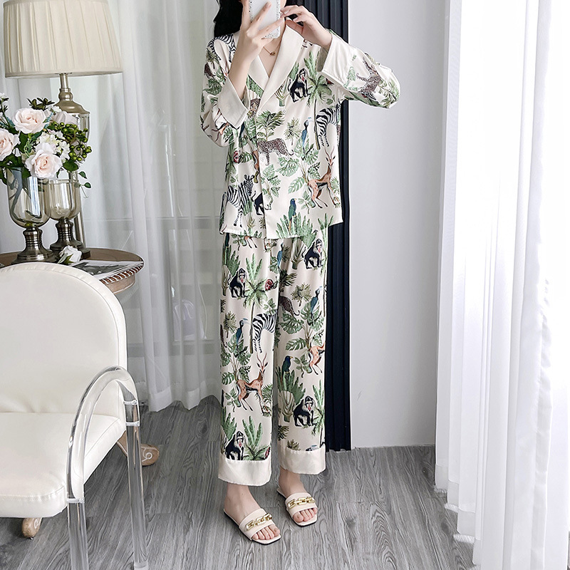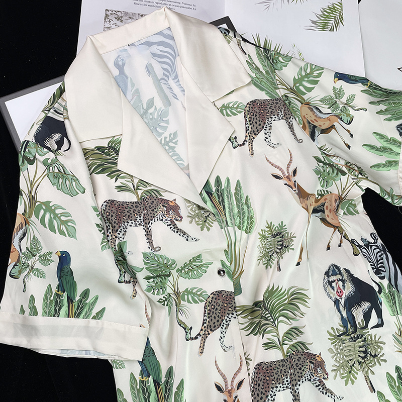 인터넷 연예인 동물 세계 4 피스 아이스 실크 파자마 여성 봄과 여름 새로운 도착 빛 럭셔리 프랑스 스타일 인공 실크 홈 옷