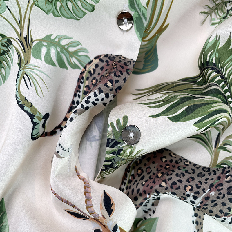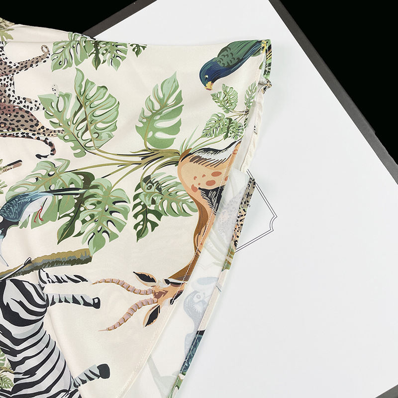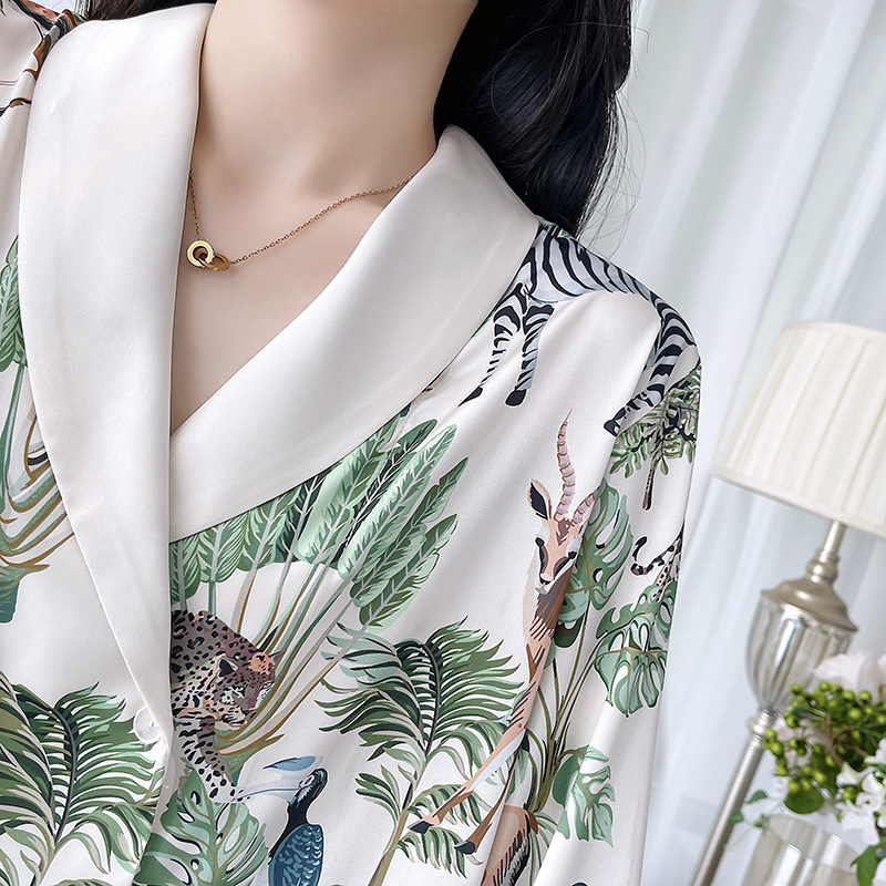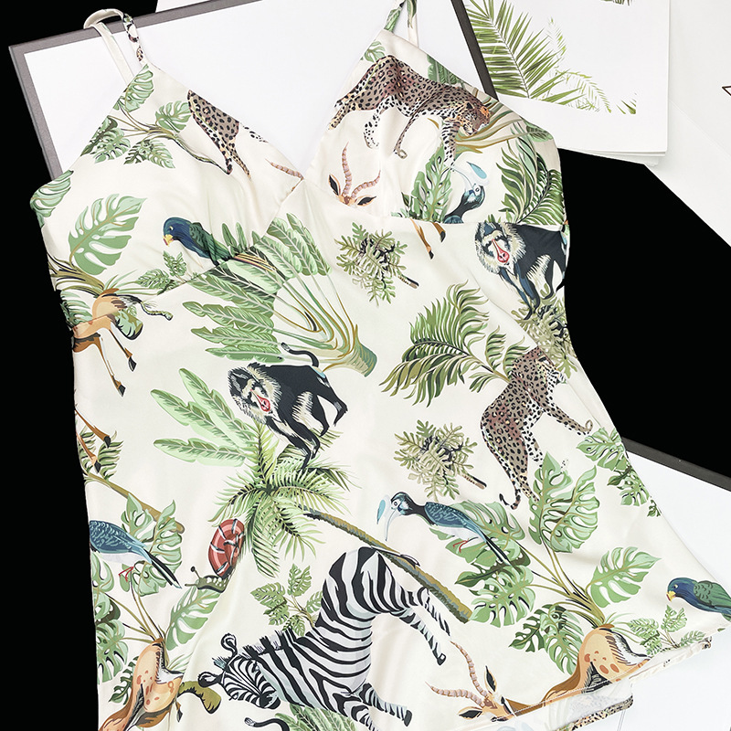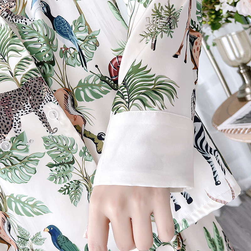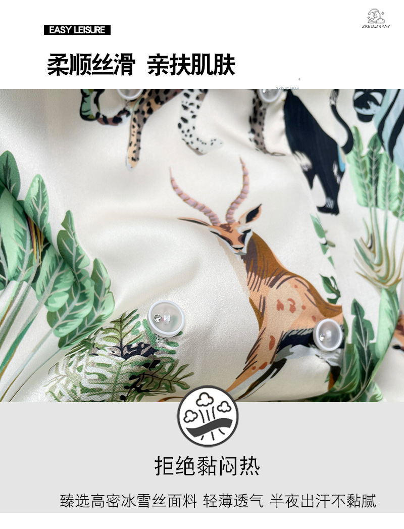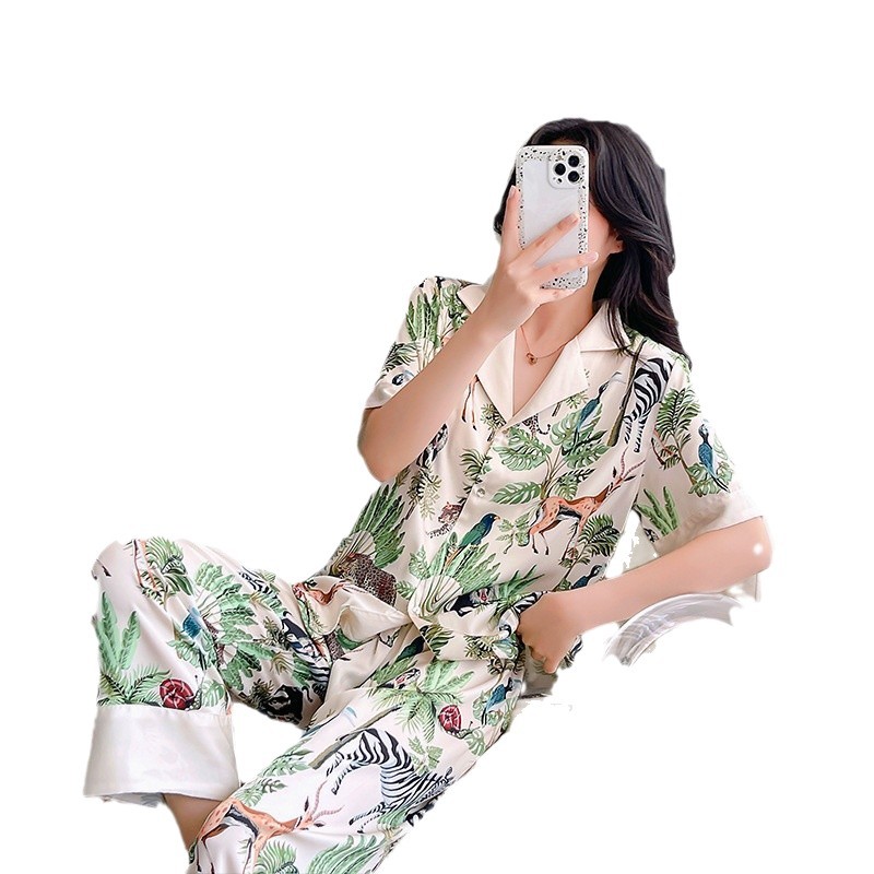 인터넷 연예인 동물 세계 4 피스 아이스 실크 파자마 여성 봄과 여름 새로운 도착 빛 럭셔리 프랑스 스타일 인공 실크 홈 옷