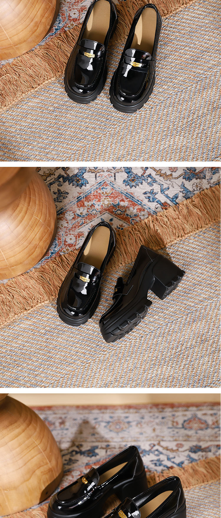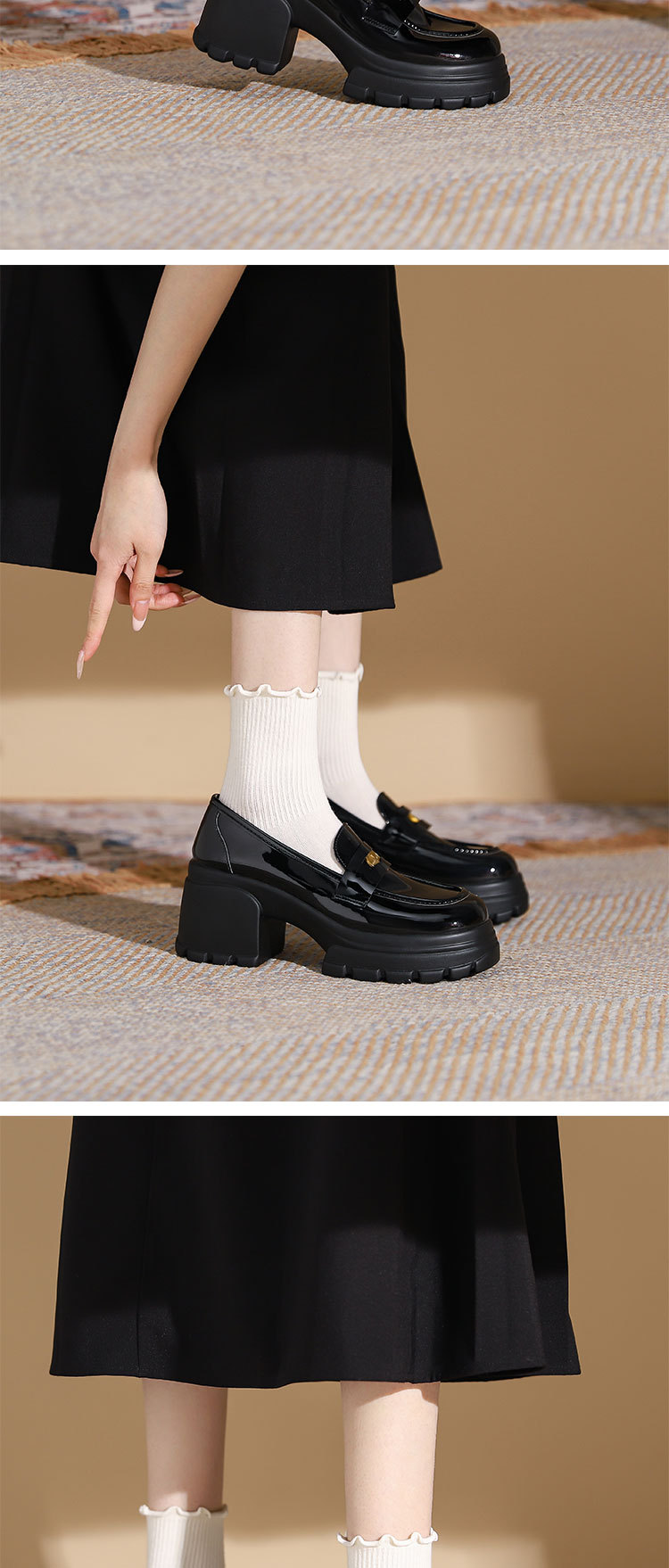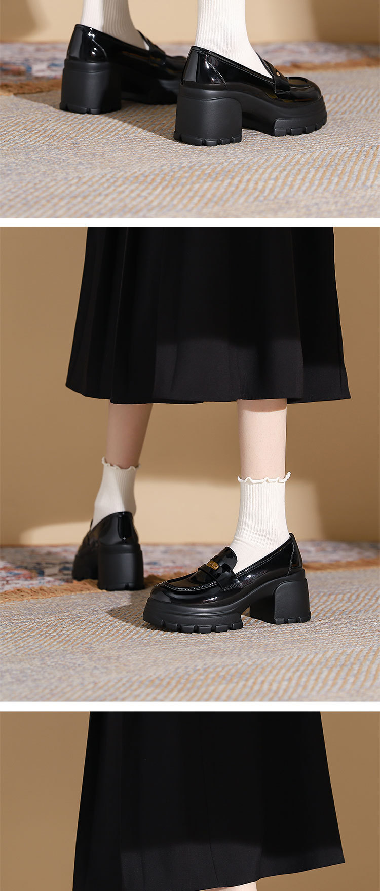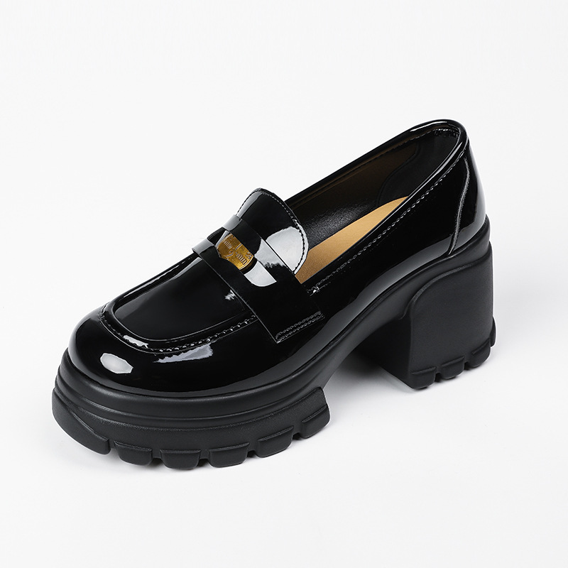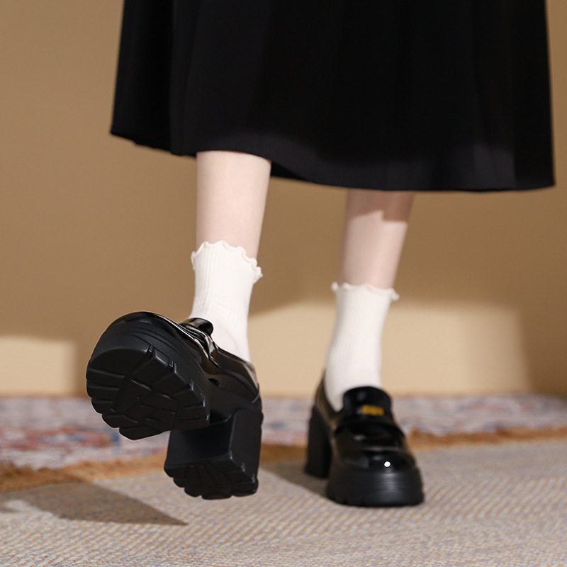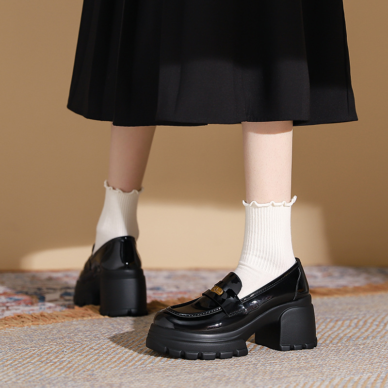 내부 높이 높이 작은 가죽 신발 여성의 봄 2025 새로운 영국 스타일 두꺼운 작은 검은 단일 레이어 신발 한 단계 로퍼