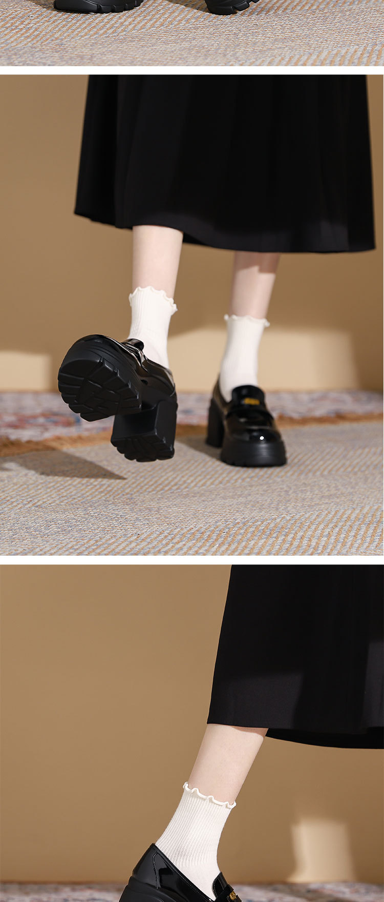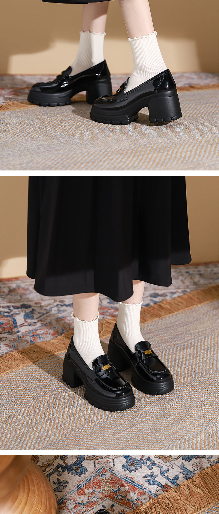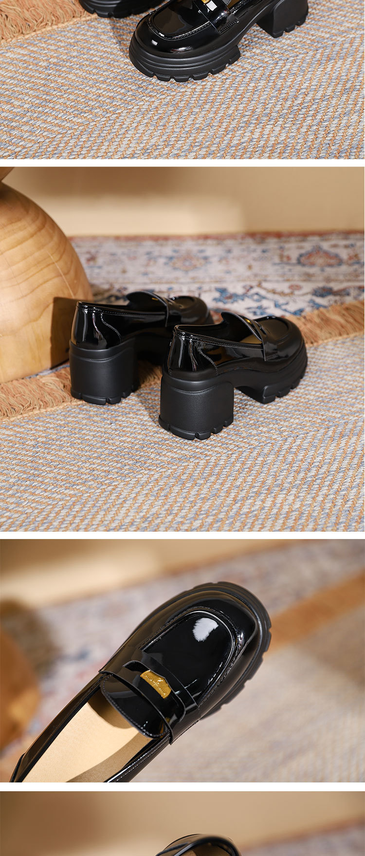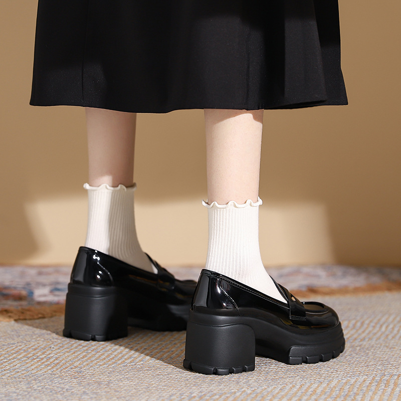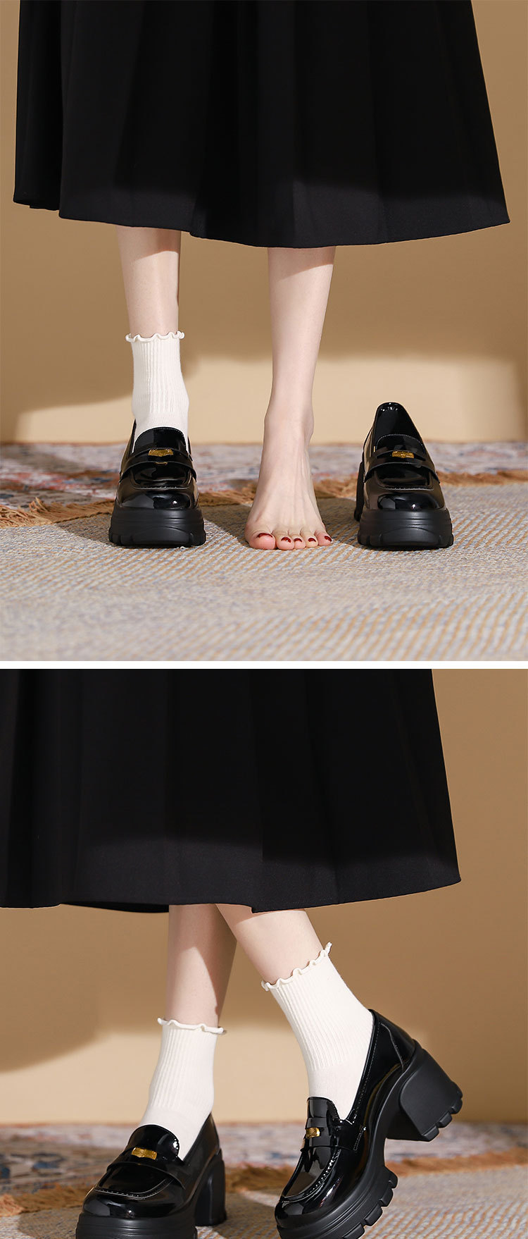 내부 높이 높이 작은 가죽 신발 여성의 봄 2025 새로운 영국 스타일 두꺼운 작은 검은 단일 레이어 신발 한 단계 로퍼