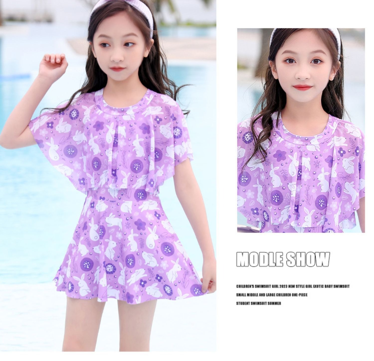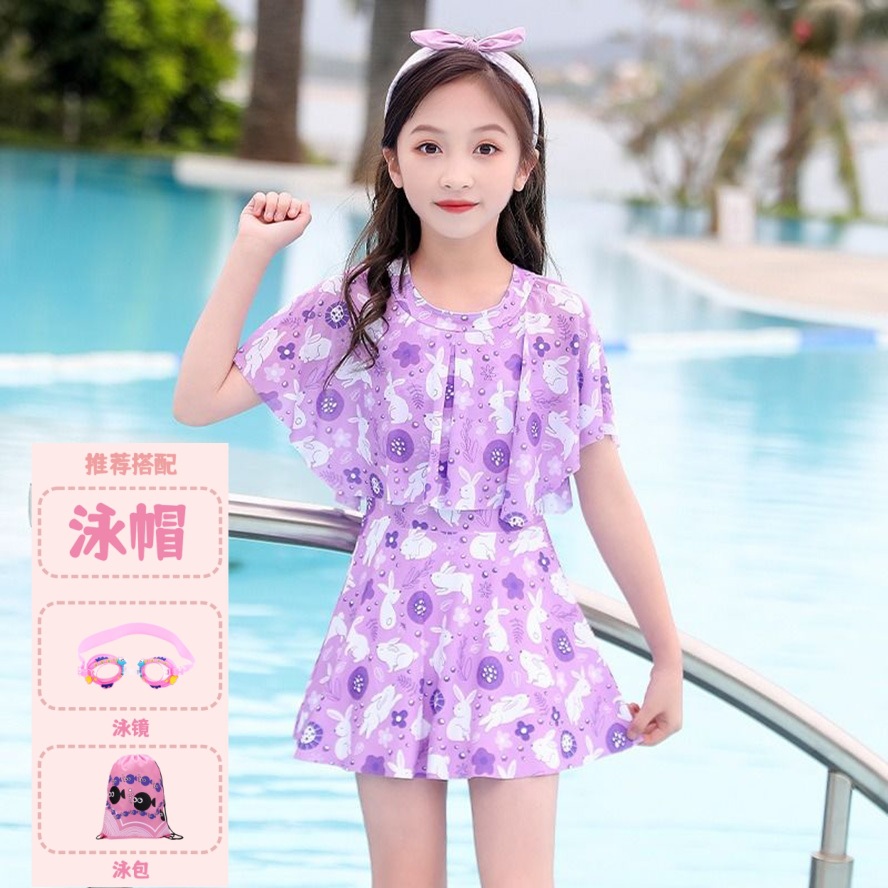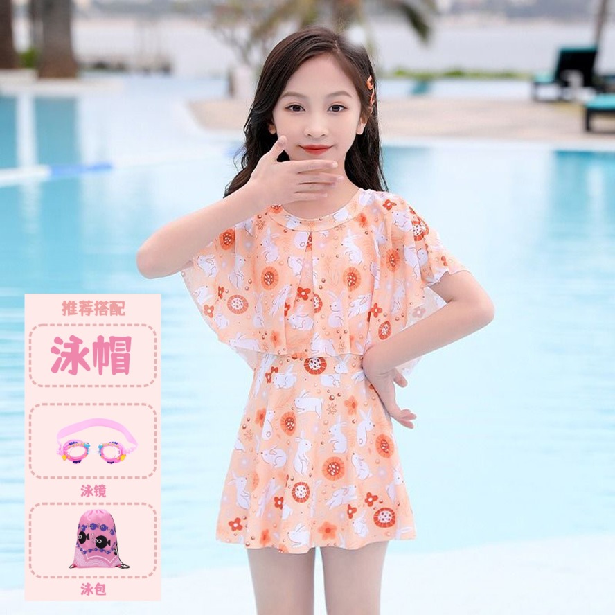 어린이 캐주얼 수영복 소녀의 여름 2024 새로운 도착 Siomatic 중형 및 대형 어린이 공주 원피스 소녀 귀여운 수영 세트
