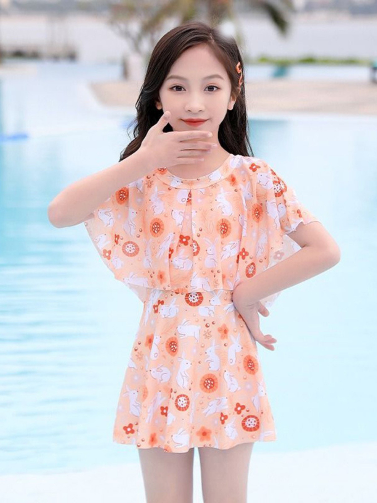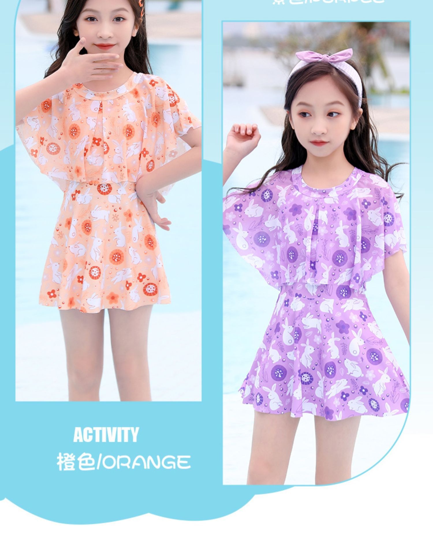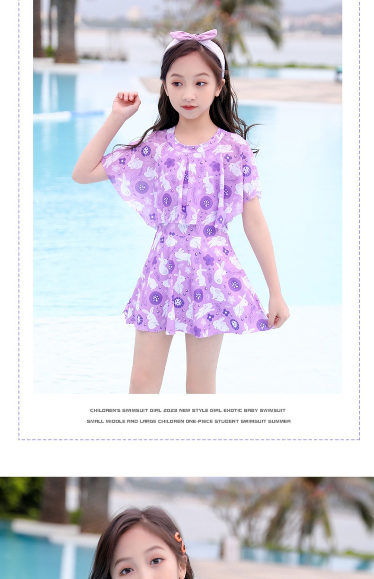 어린이 캐주얼 수영복 소녀의 여름 2024 새로운 도착 Siomatic 중형 및 대형 어린이 공주 원피스 소녀 귀여운 수영 세트