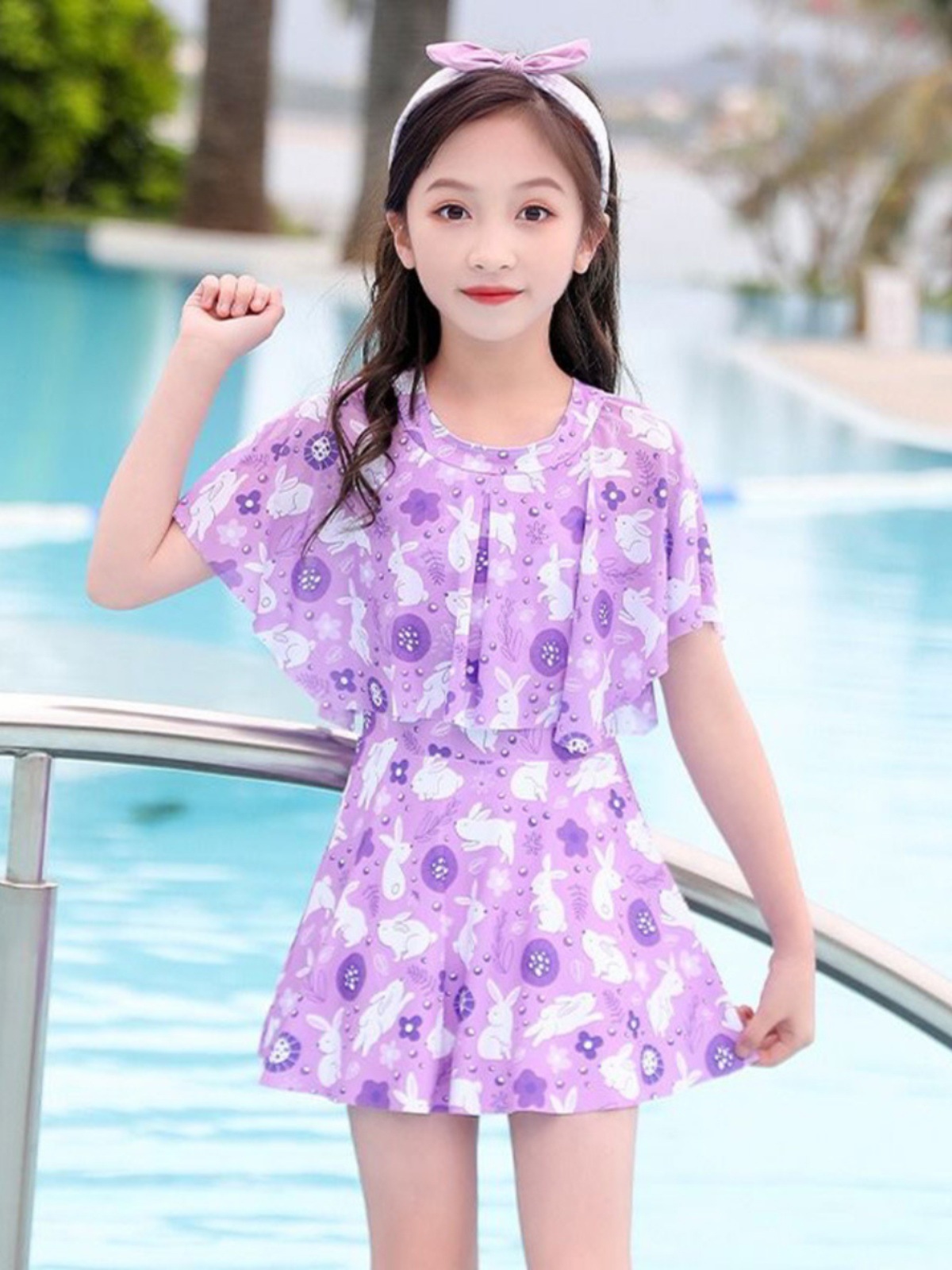 733#보라색 원피스 수영복