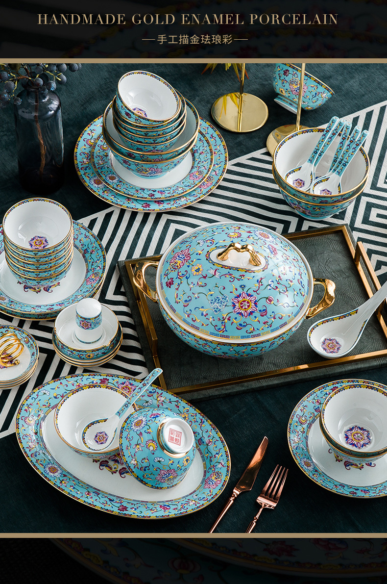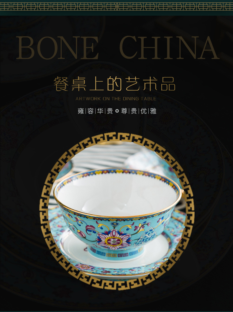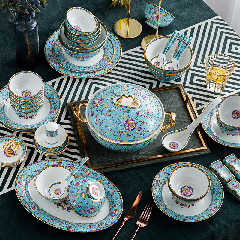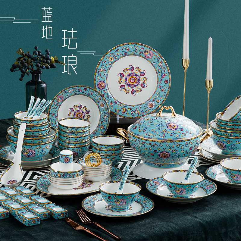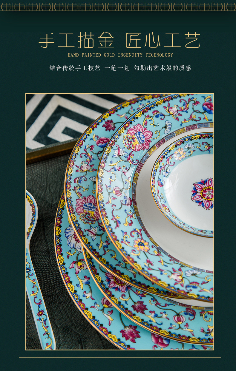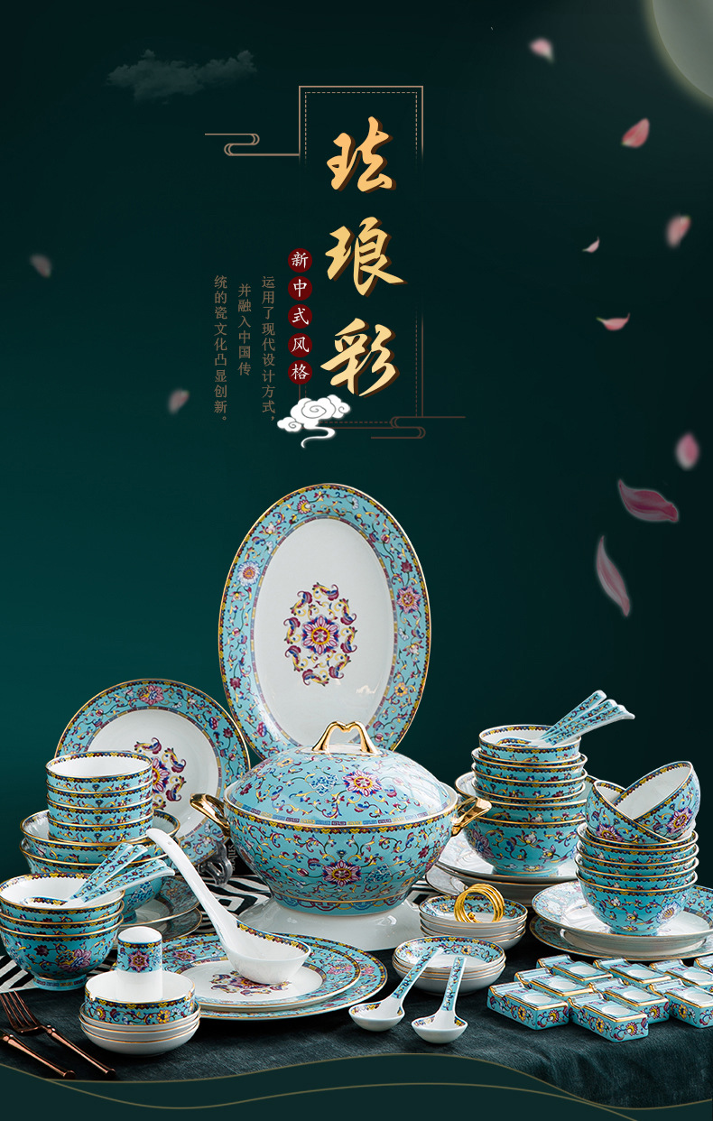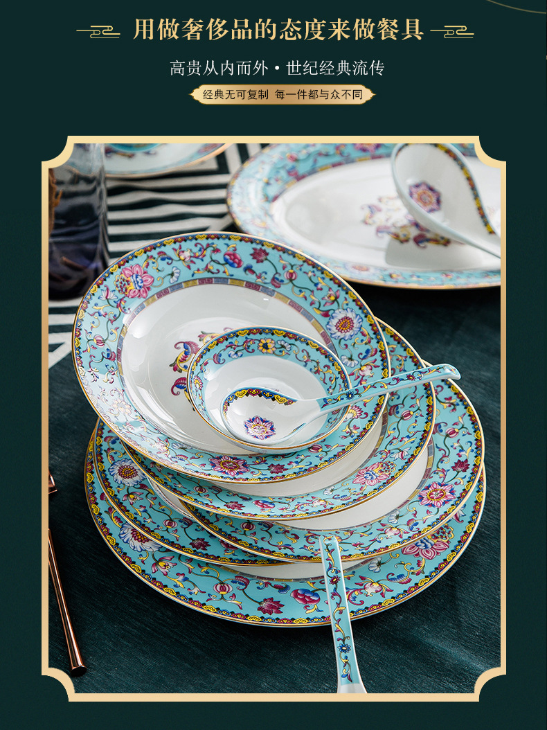 Jingdezhen 고온 에나멜 중국 스타일 식기 세트 요리 가정용 고급 뼈 중국 식기 세라믹 고급 요리