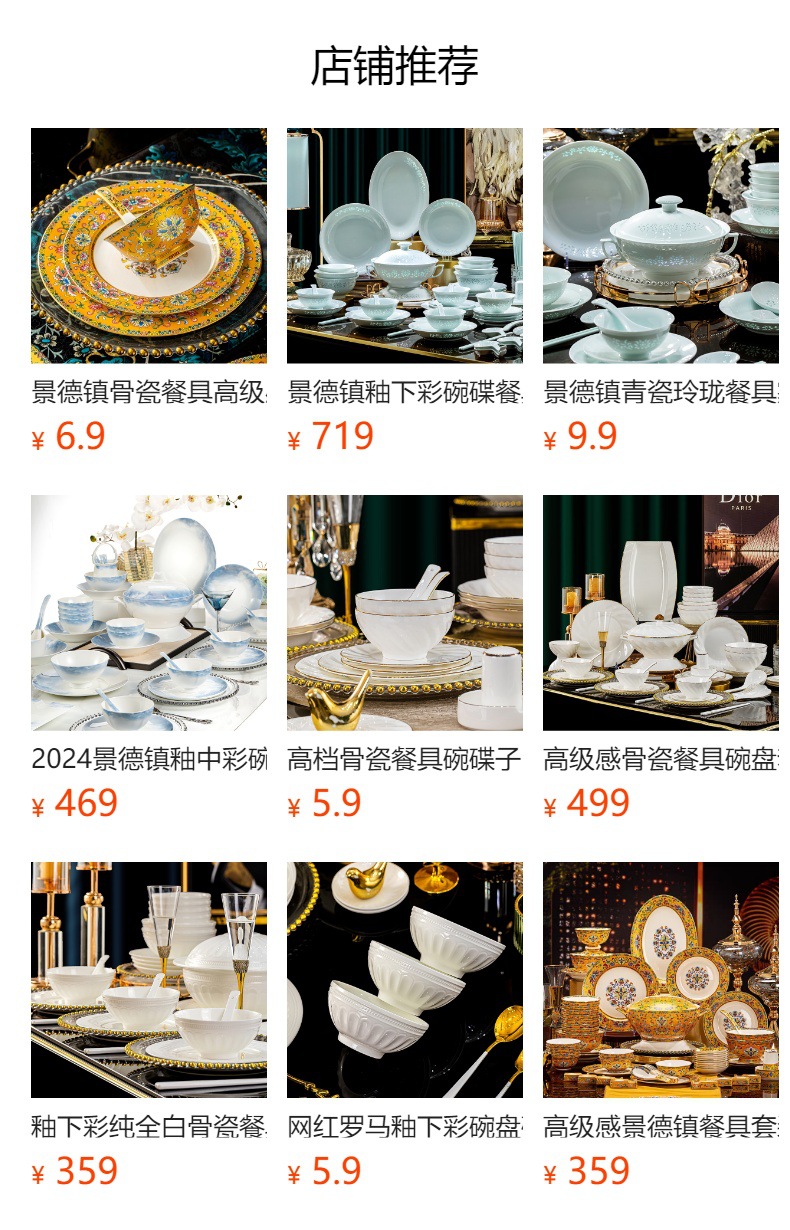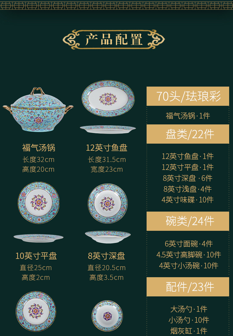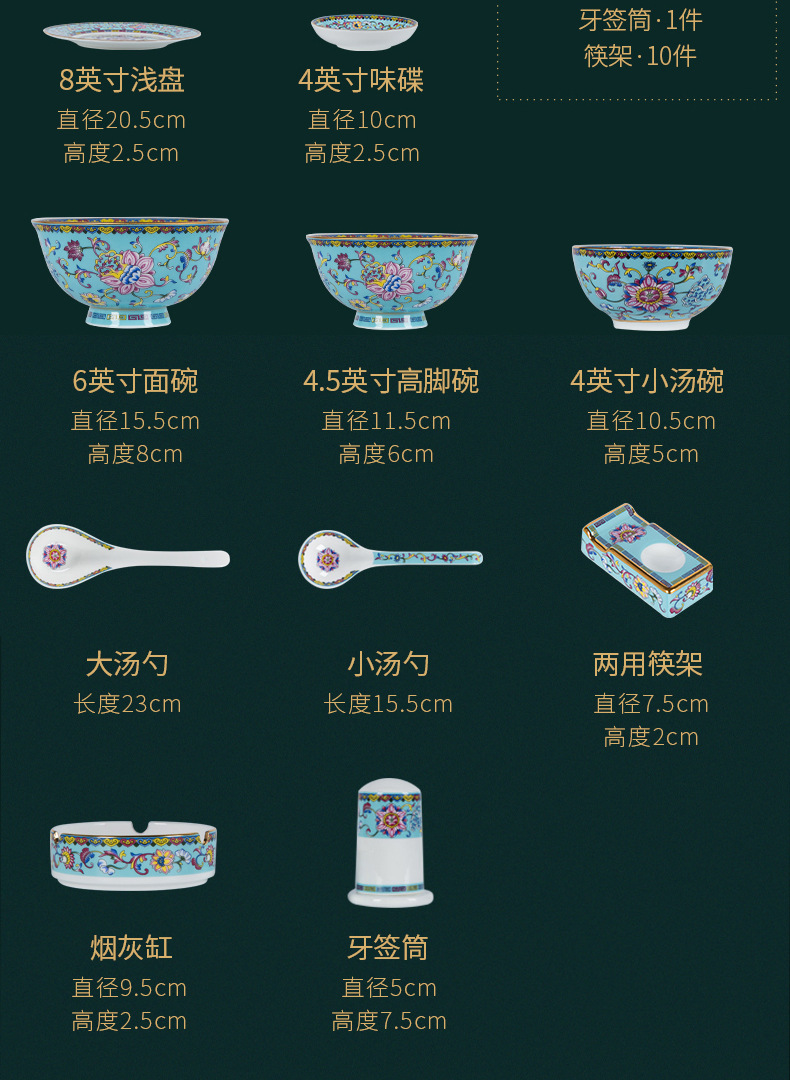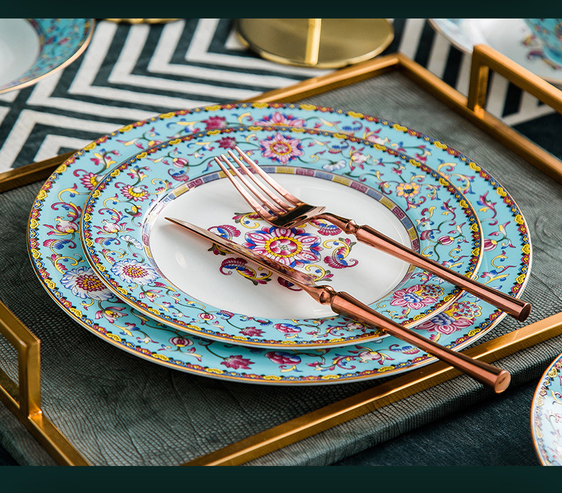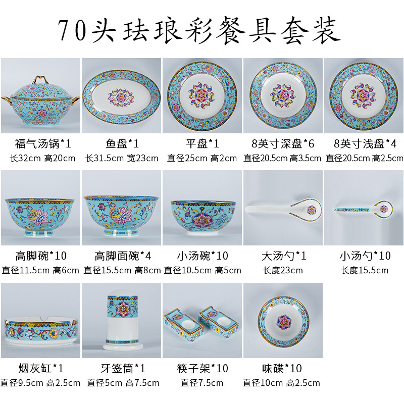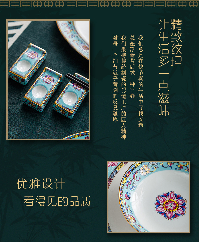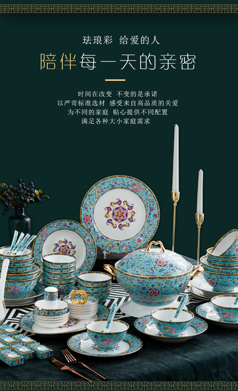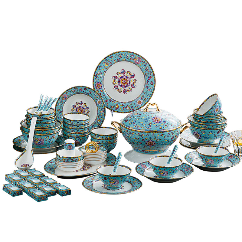 Jingdezhen 고온 에나멜 중국 스타일 식기 세트 요리 가정용 고급 뼈 중국 식기 세라믹 고급 요리