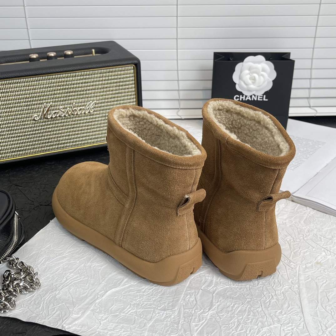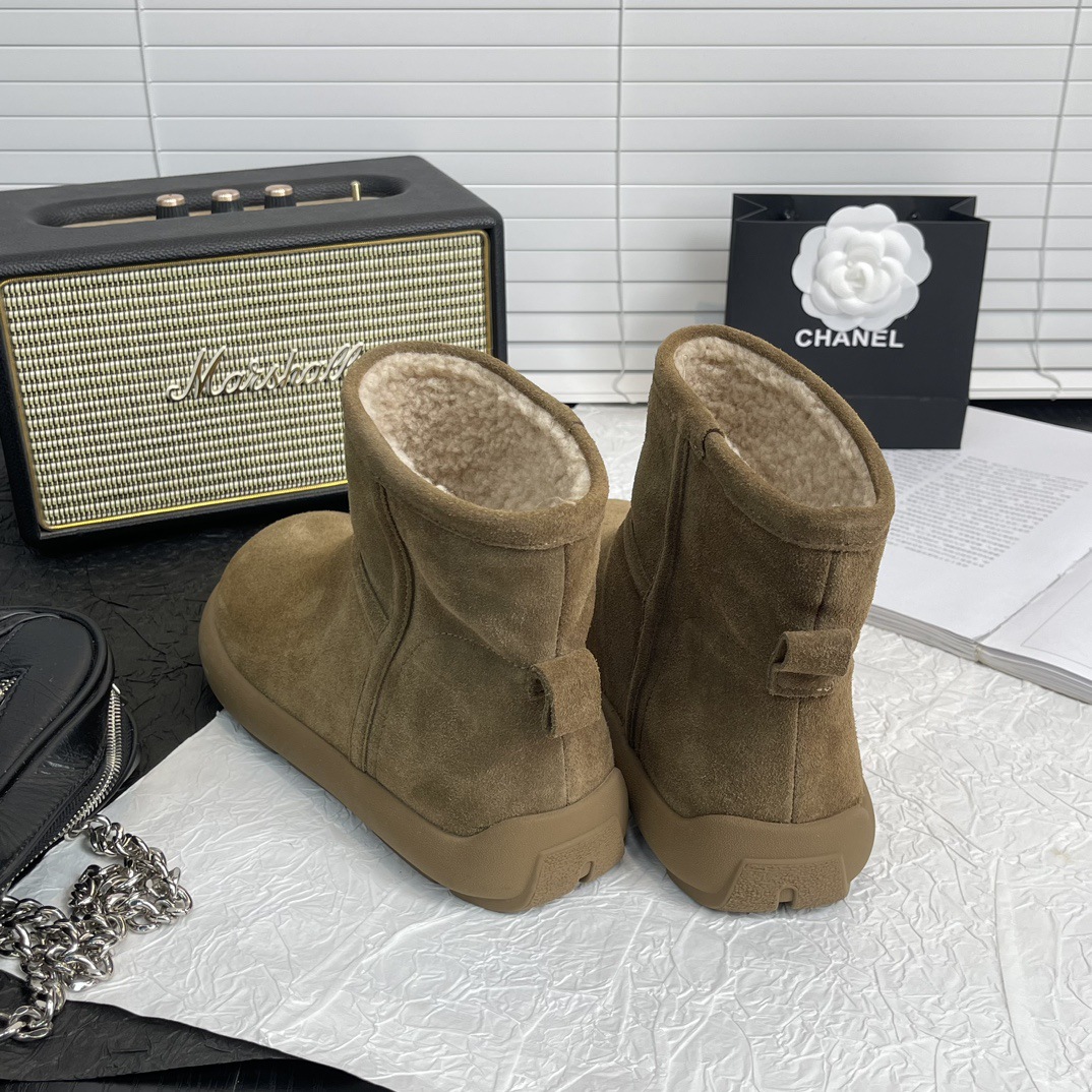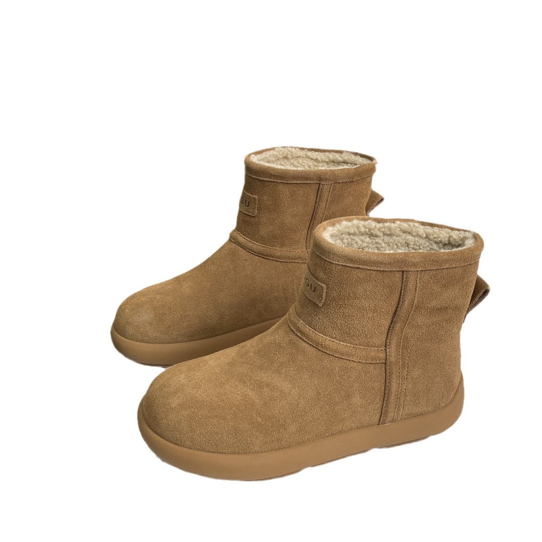 레트로 두꺼운 바닥 가죽 스노우 부츠 여성의 2024 겨울 새 기모 짧은 부츠 미끄럼 방지 따뜻한 빵면 신발 조수