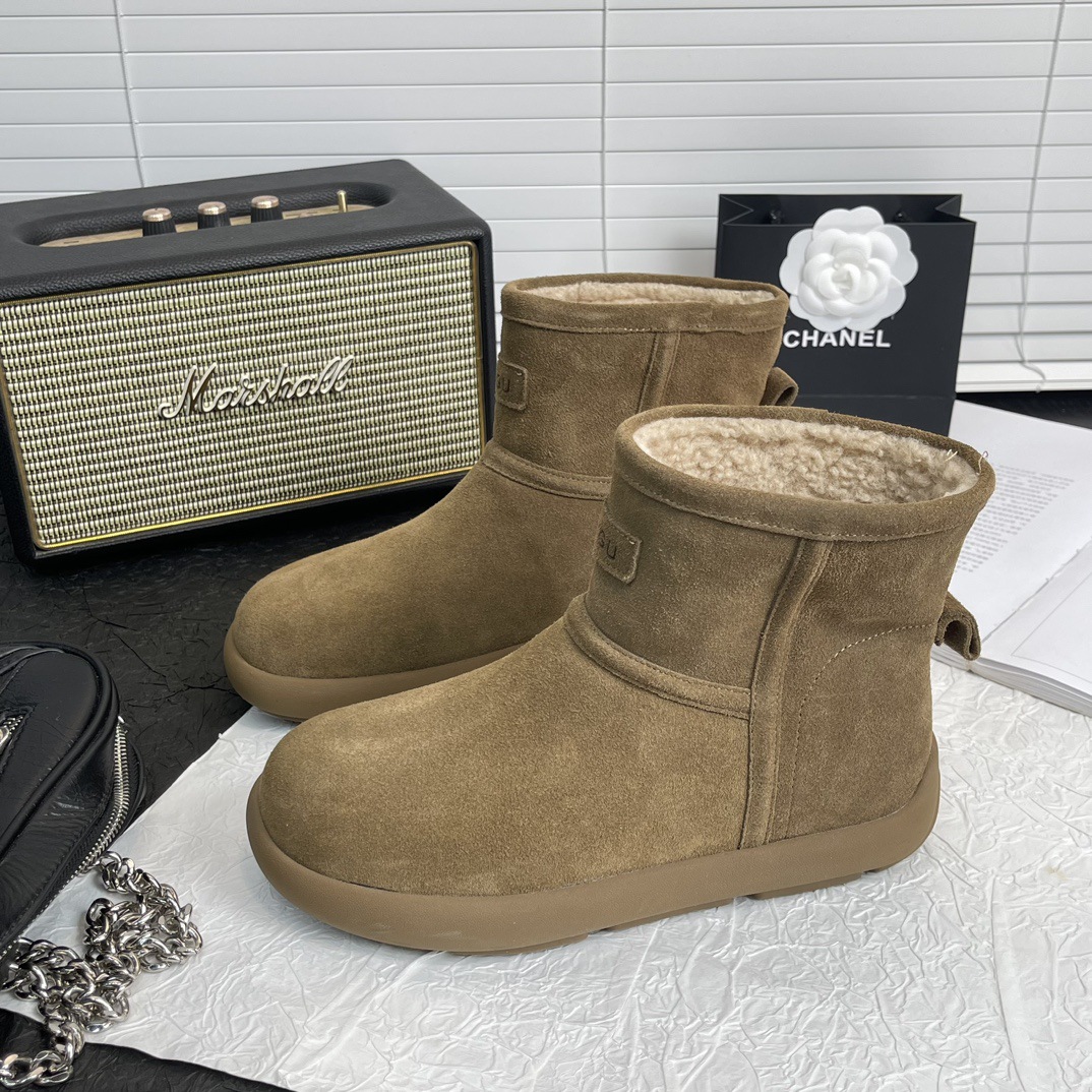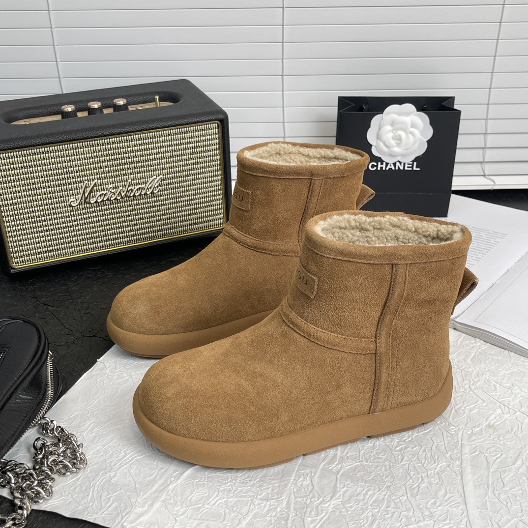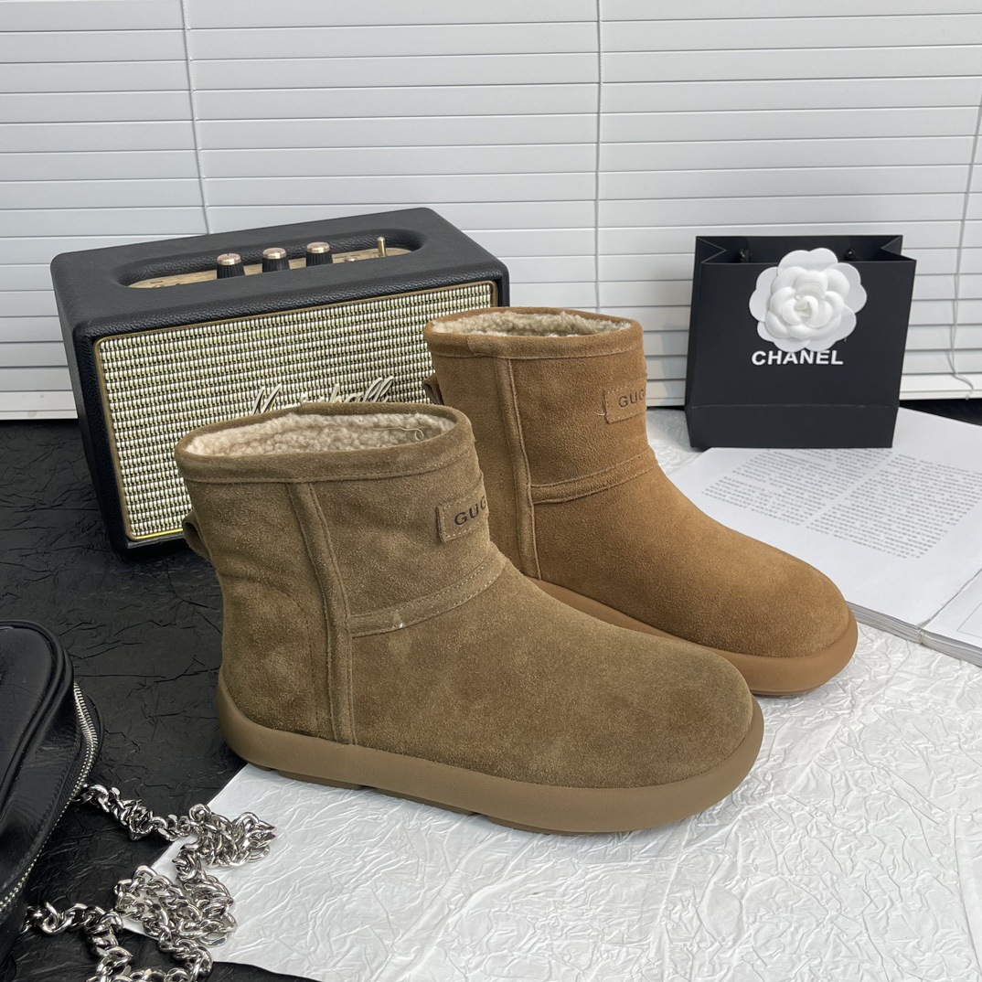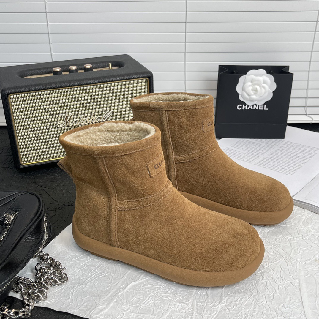 레트로 두꺼운 바닥 가죽 스노우 부츠 여성의 2024 겨울 새 기모 짧은 부츠 미끄럼 방지 따뜻한 빵면 신발 조수