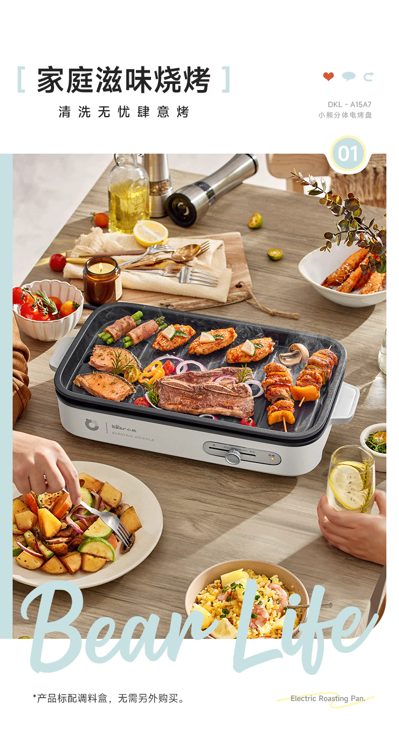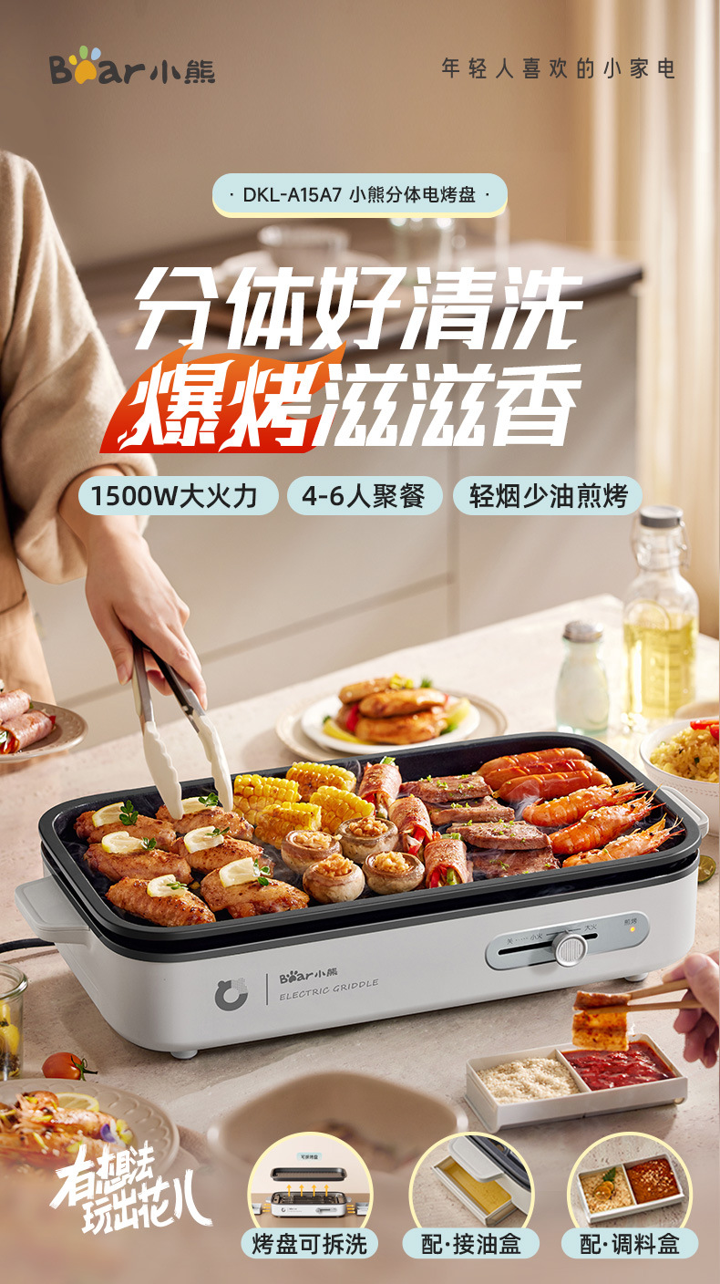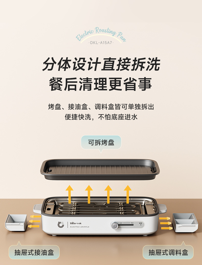 곰 바베큐 냄비 전기 그릴 가정용 바베큐 오븐 통합 실내 이동식 및 세척 가능한 야외 바베큐 오븐 DKL-A15A7