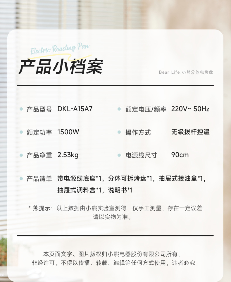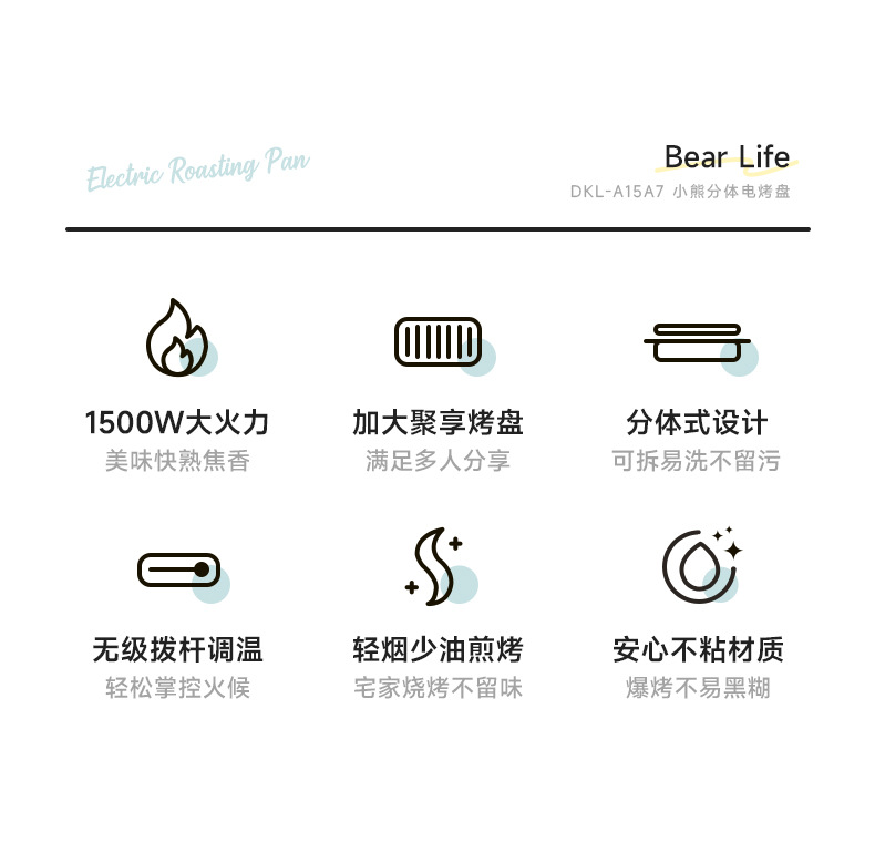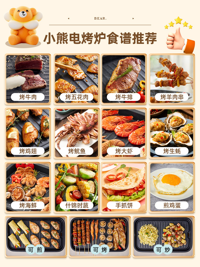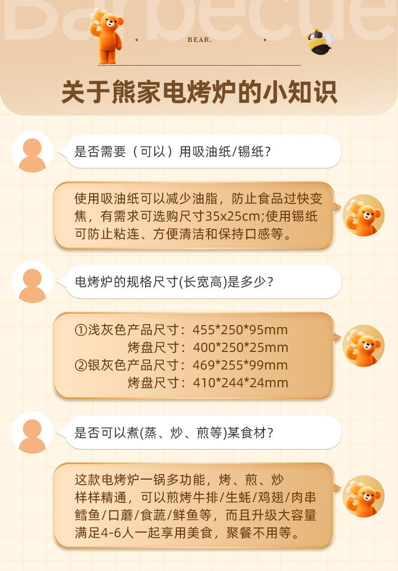 곰 바베큐 냄비 전기 그릴 가정용 바베큐 오븐 통합 실내 이동식 및 세척 가능한 야외 바베큐 오븐 DKL-A15A7