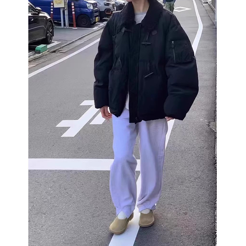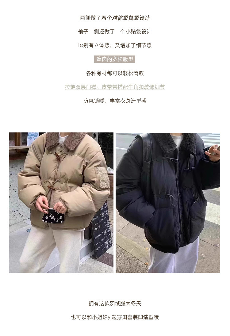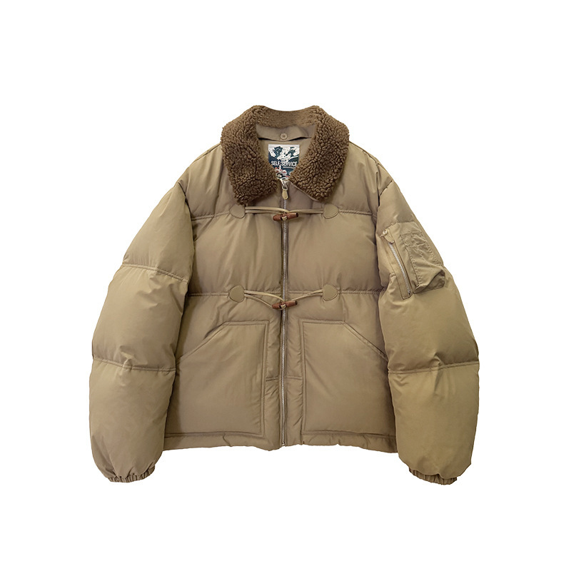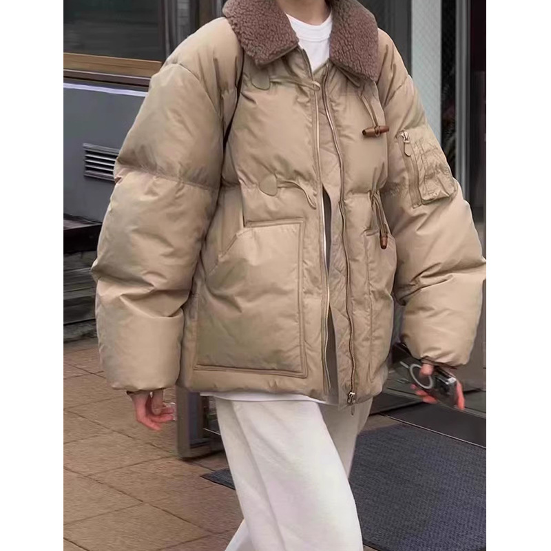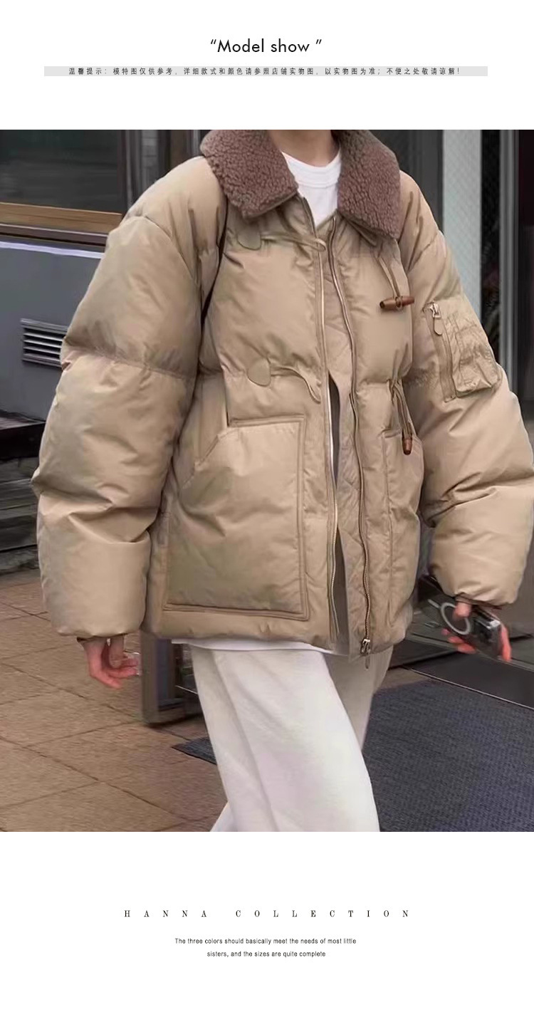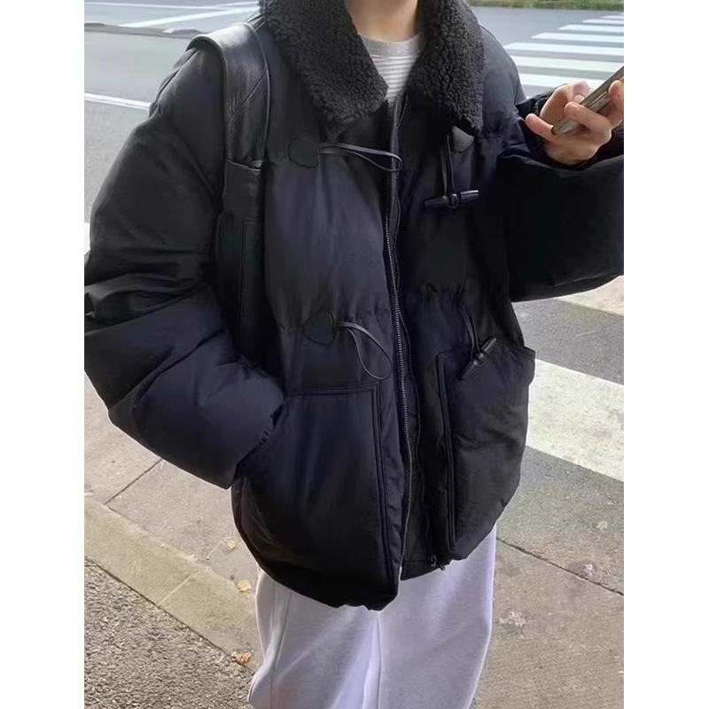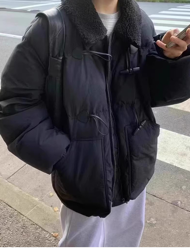 2025 겨울 한국 셀프 서비스 다운 재킷 레트로 캐주얼 탈부착 가능한 모피 칼라 뿔 단추 숏 코트