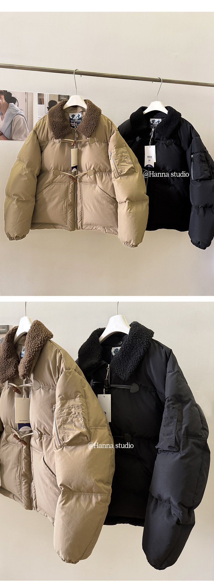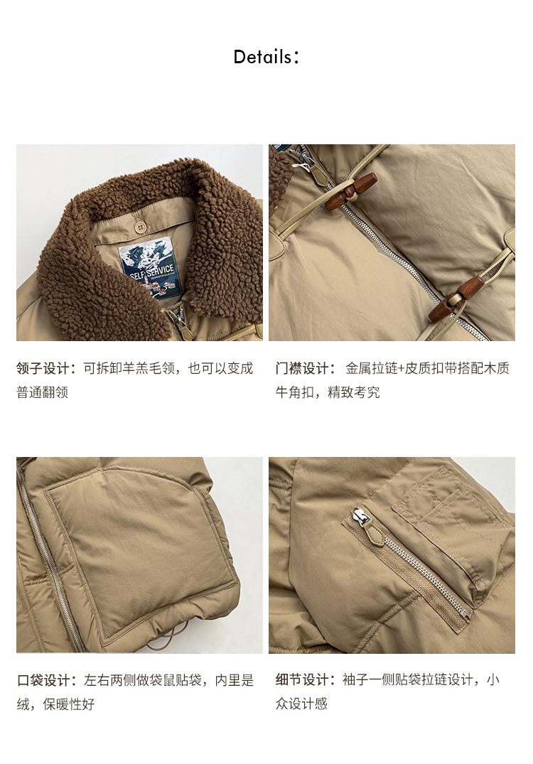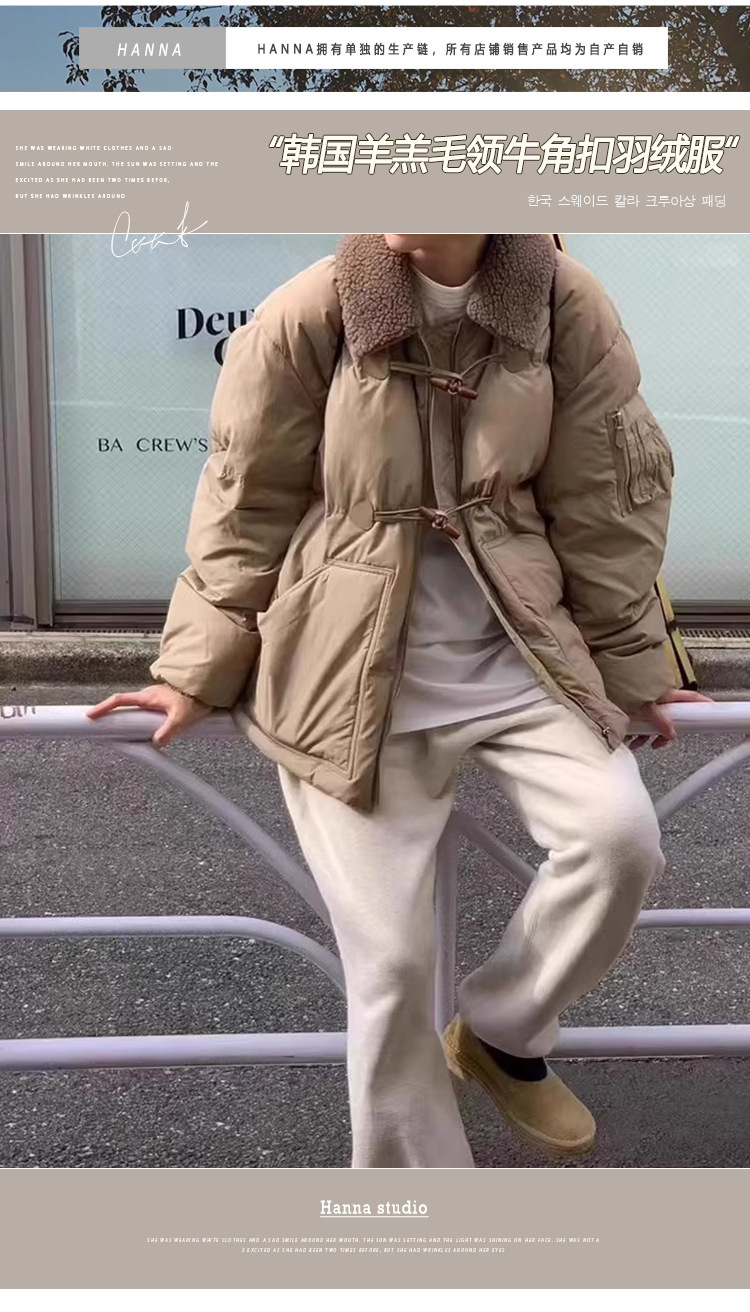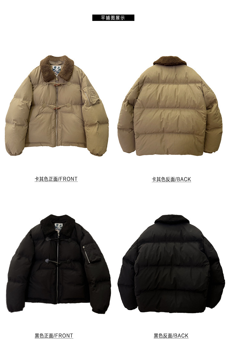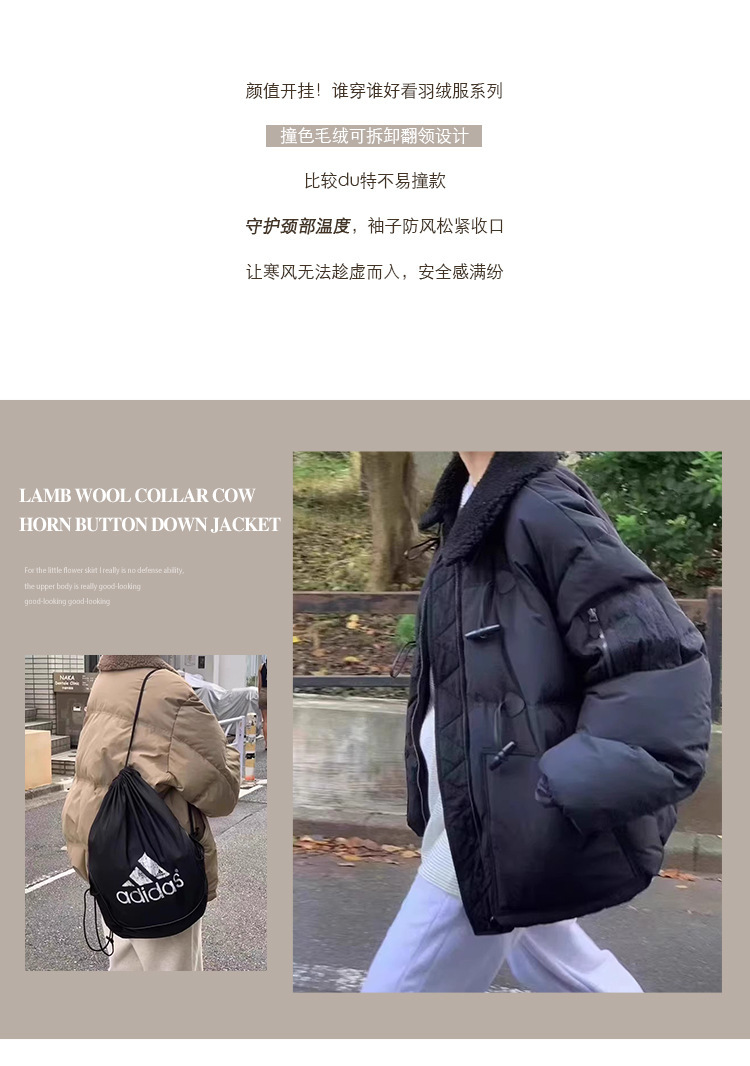 2025 겨울 한국 셀프 서비스 다운 재킷 레트로 캐주얼 탈부착 가능한 모피 칼라 뿔 단추 숏 코트