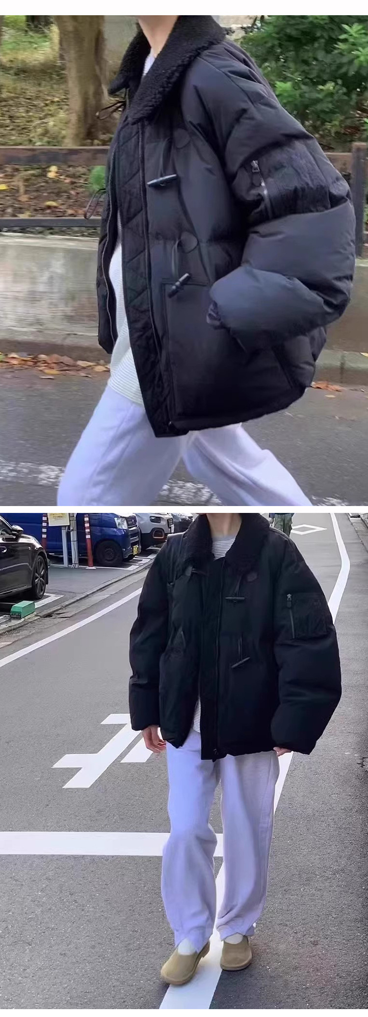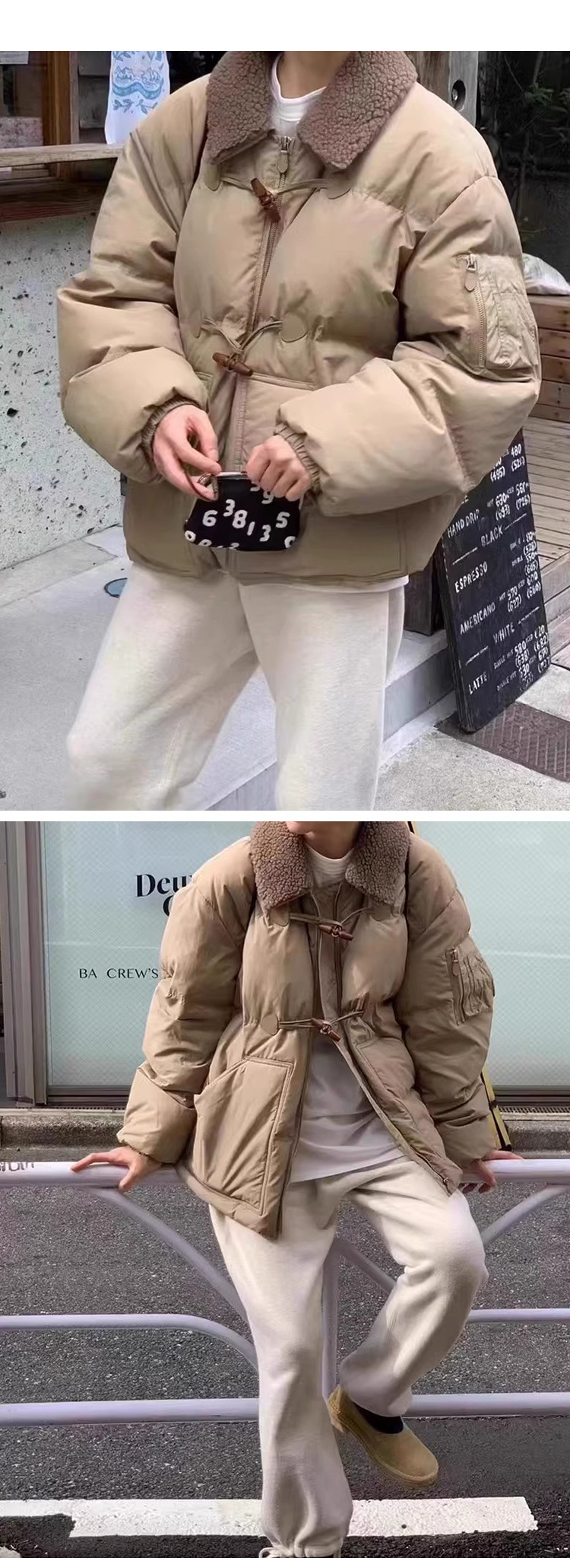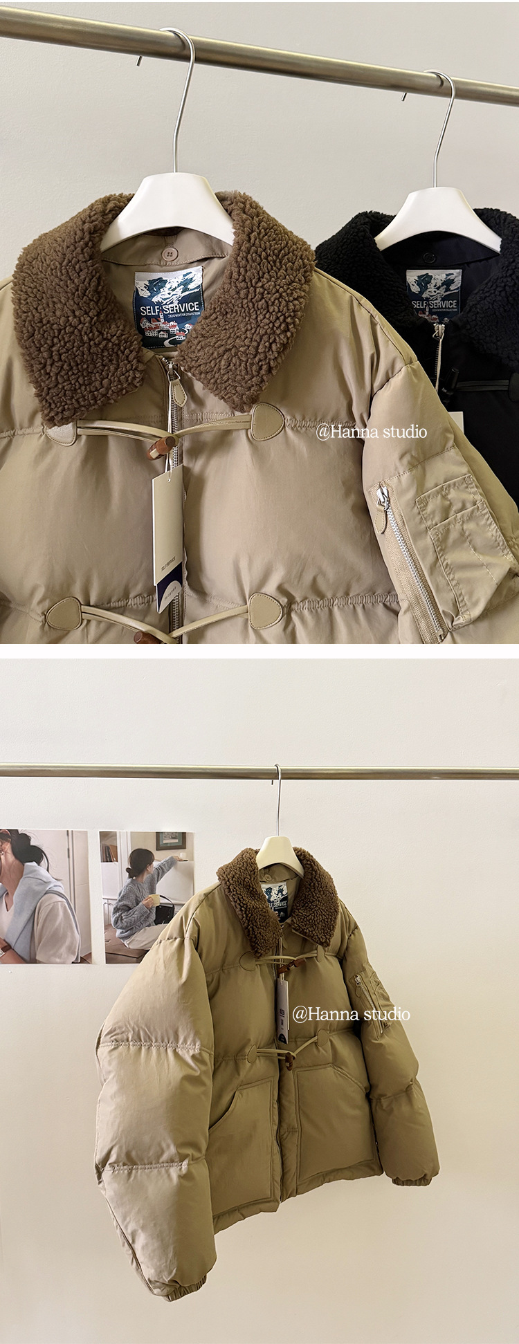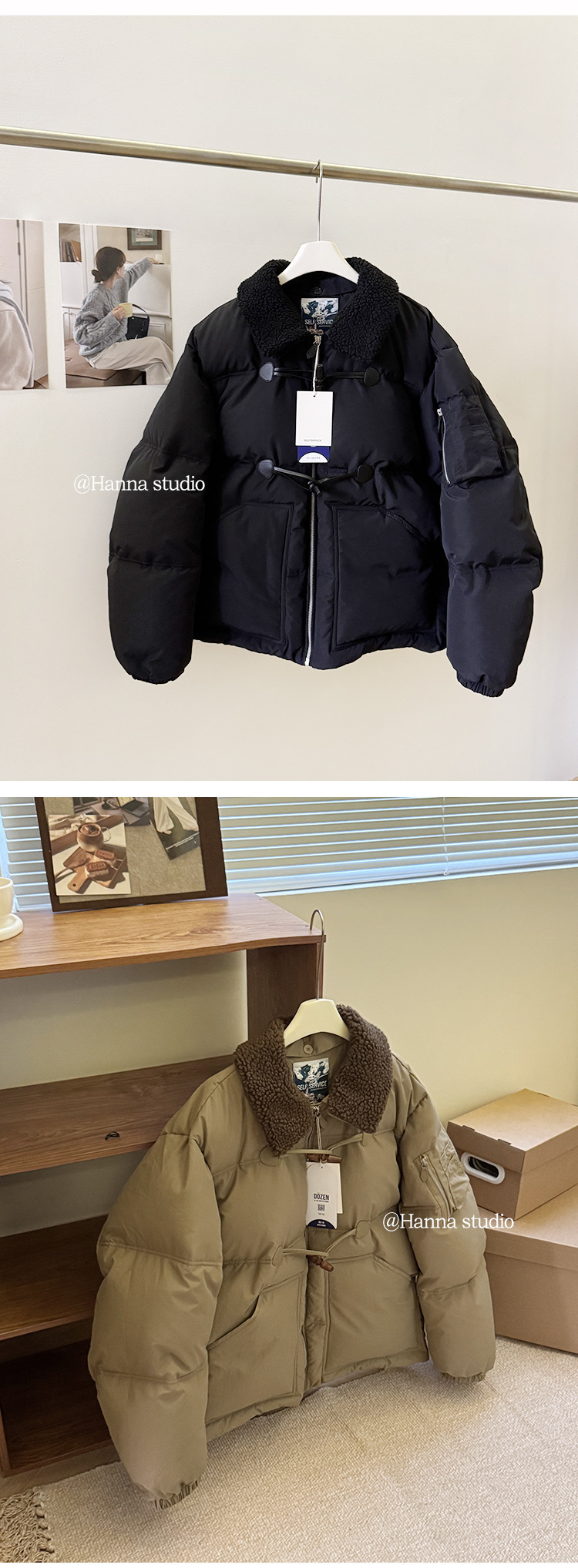 2025 겨울 한국 셀프 서비스 다운 재킷 레트로 캐주얼 탈부착 가능한 모피 칼라 뿔 단추 숏 코트