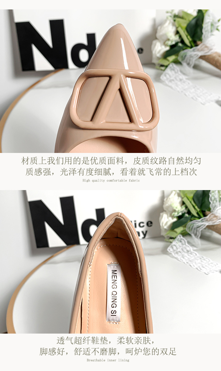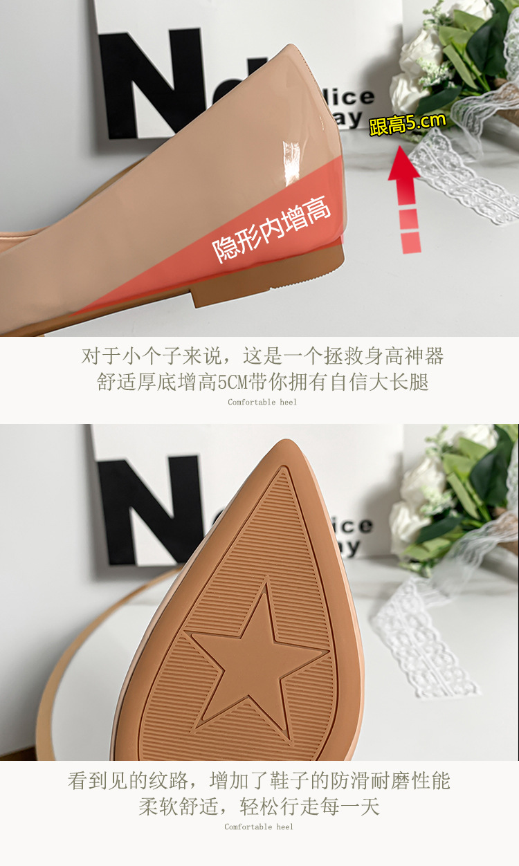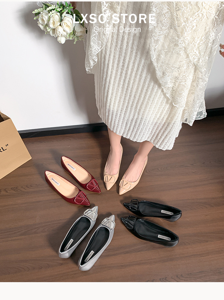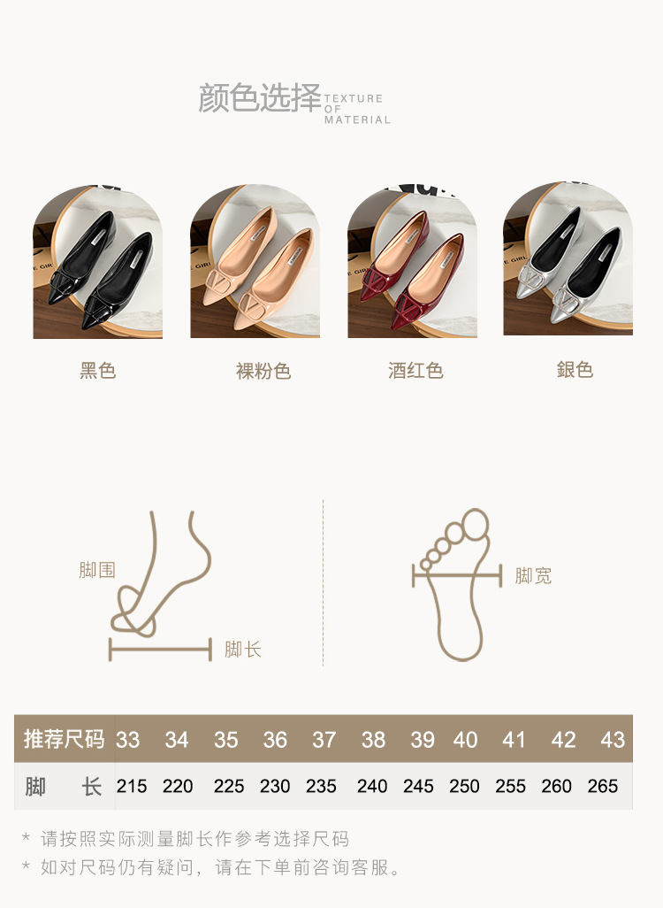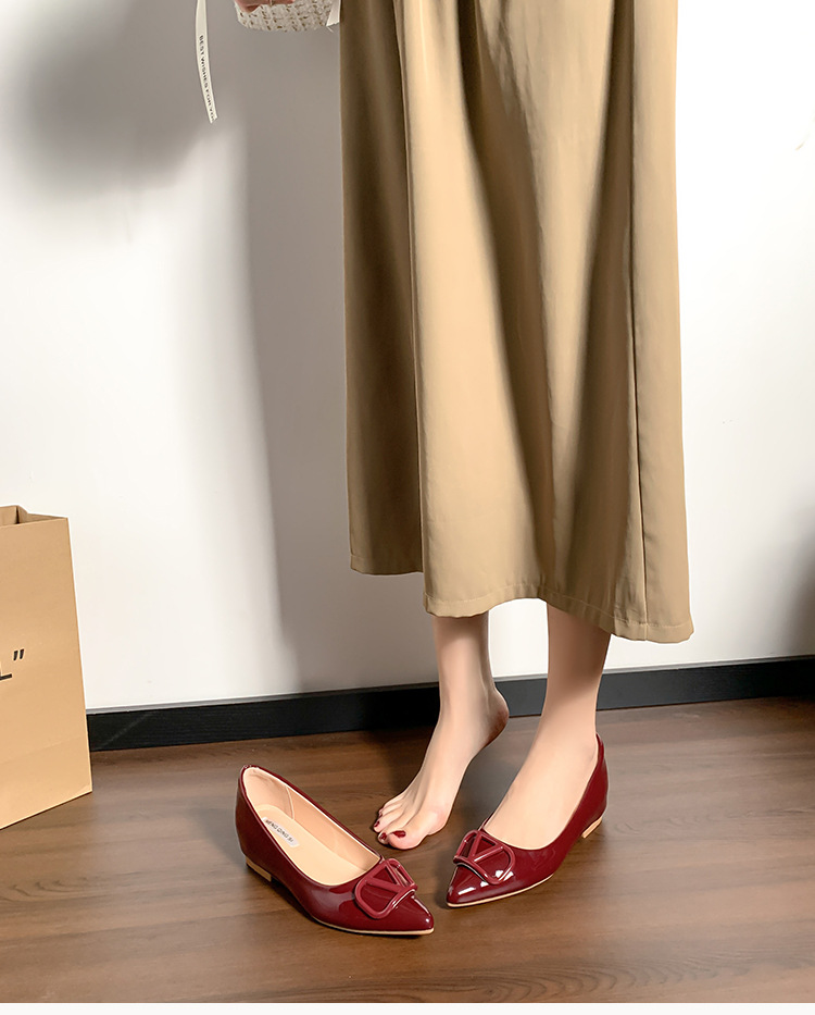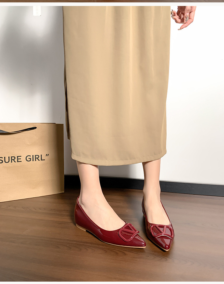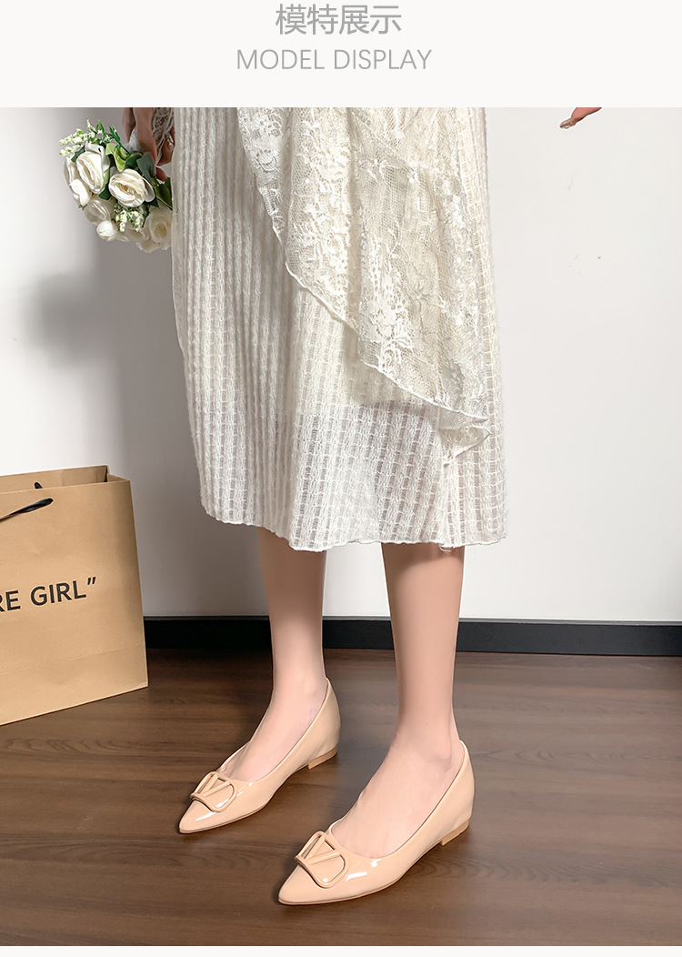 메탈 V 버클 페이턴트 가죽 누드 컬러 플랫 슈즈, 여성스러운 스타일, 키 작은 분들을 위한 키높이, 빅사이즈 여성화 41~43