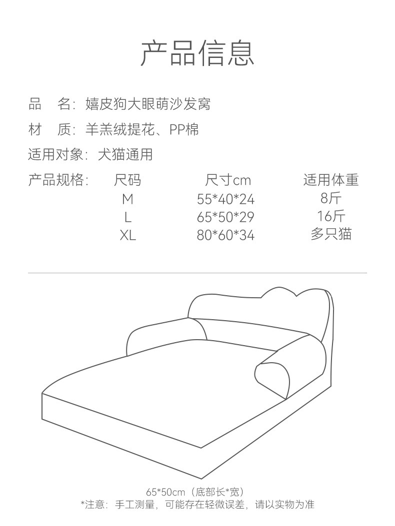 큰 눈을 가진 애완 동물 소파, 귀여운 인터넷 연예인 고양이 개집, 겨울 따뜻한 애완 동물 침대, 중소형 개 테디 개집, 개 침구