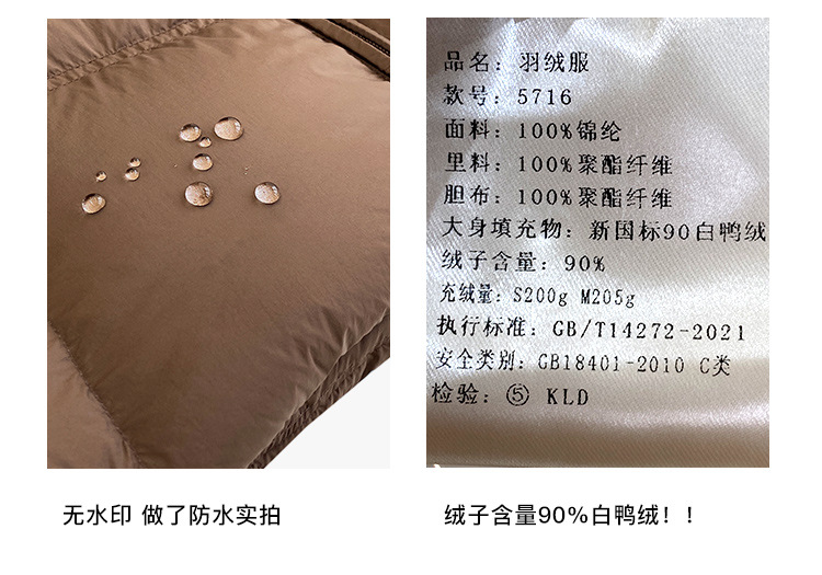 整件羽绒服充绒量te别足