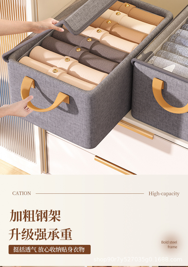 부직포 직물 강철 프레임 바지 뚜껑 옷을 가진 저장 바구니 접히는 Tinier 상자 가정용 옷장 서랍 유형 저장 상자