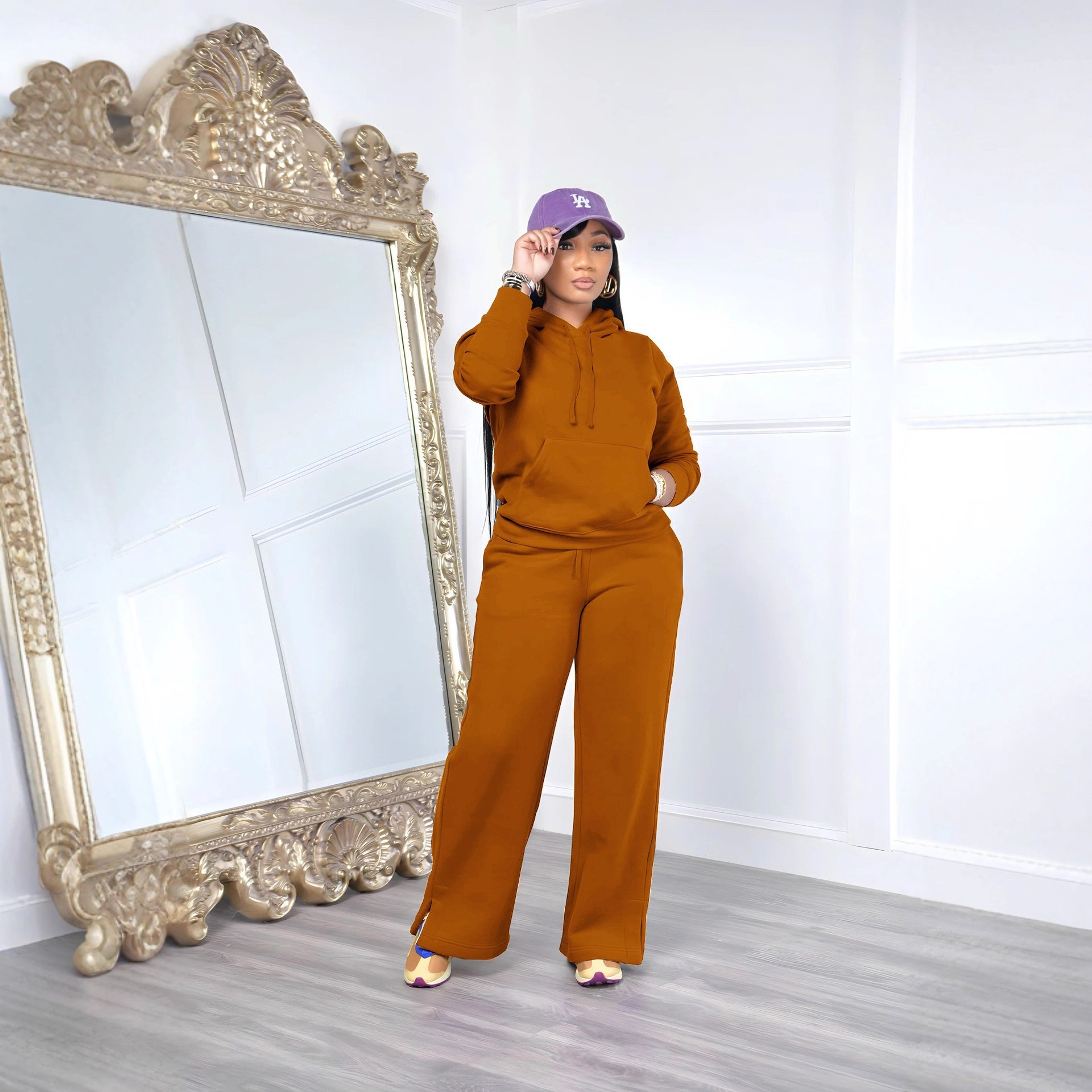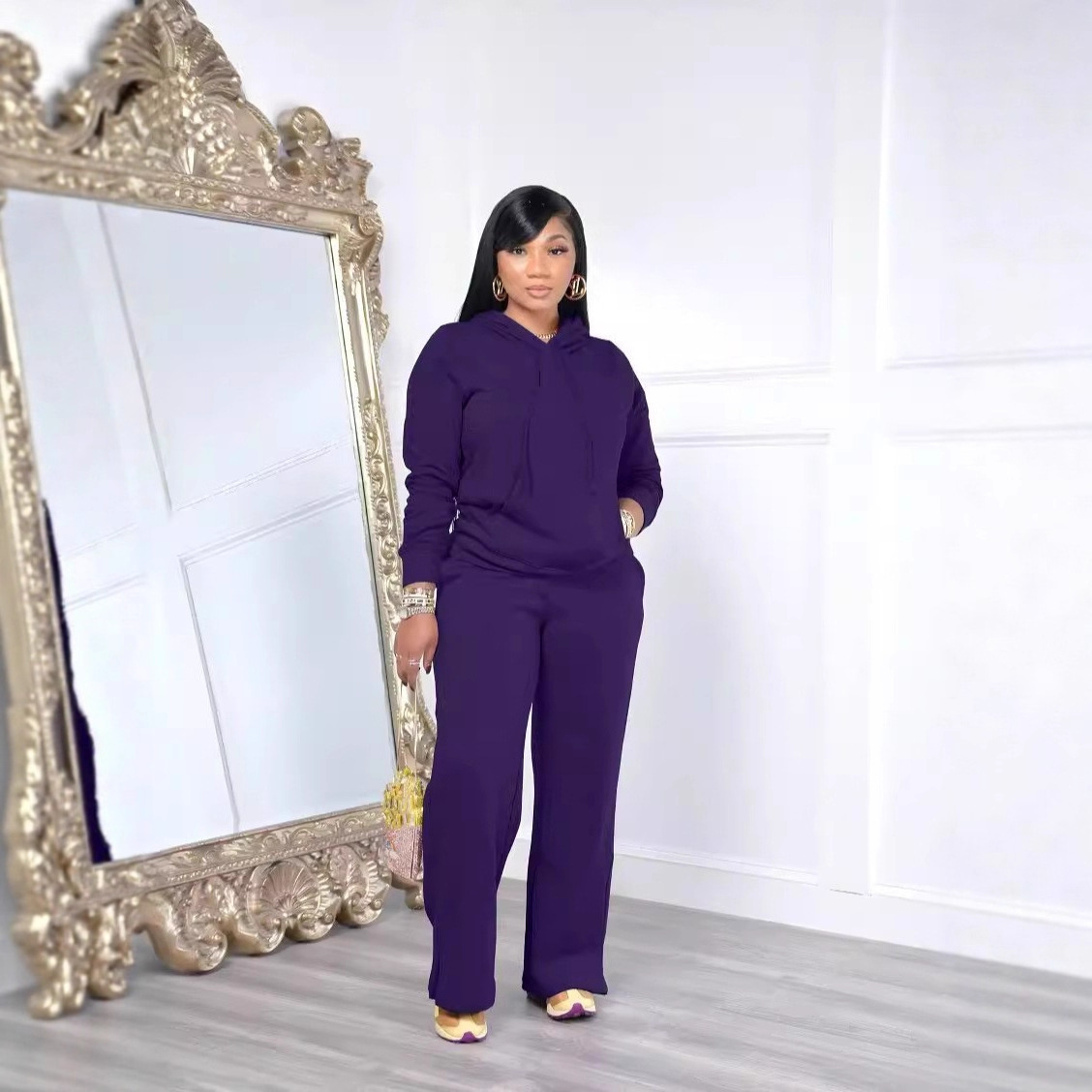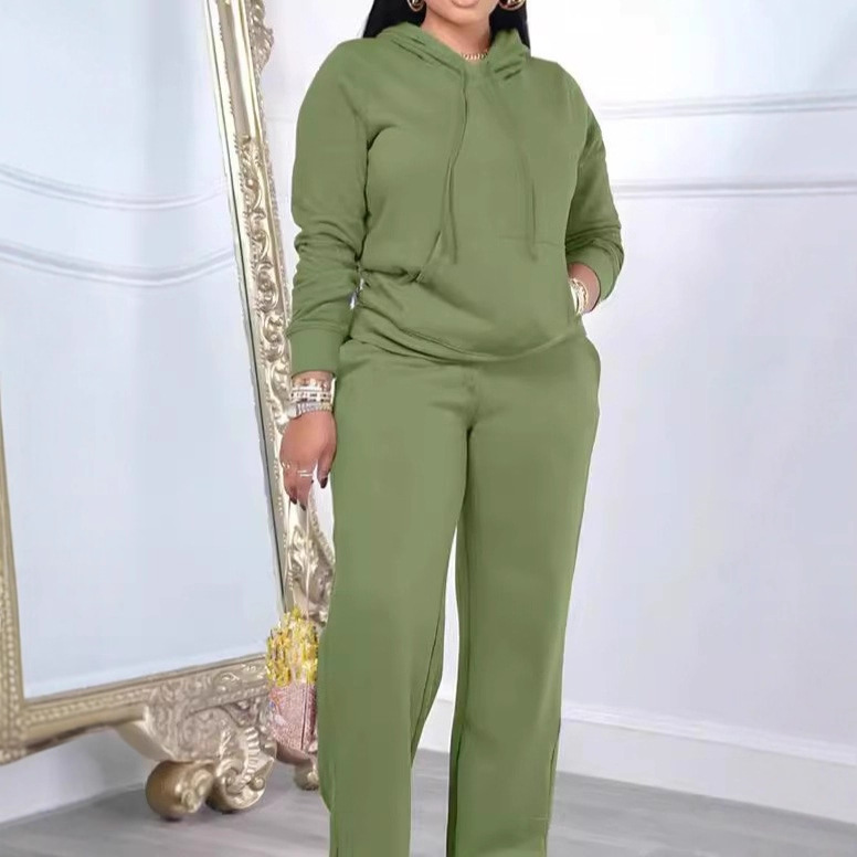 유럽과 미국의 대외 무역 2024 아마존 가을과 겨울 레저 스포츠 세트 지퍼 긴팔 스웨터 넓은 다리 바지 투피스 세트