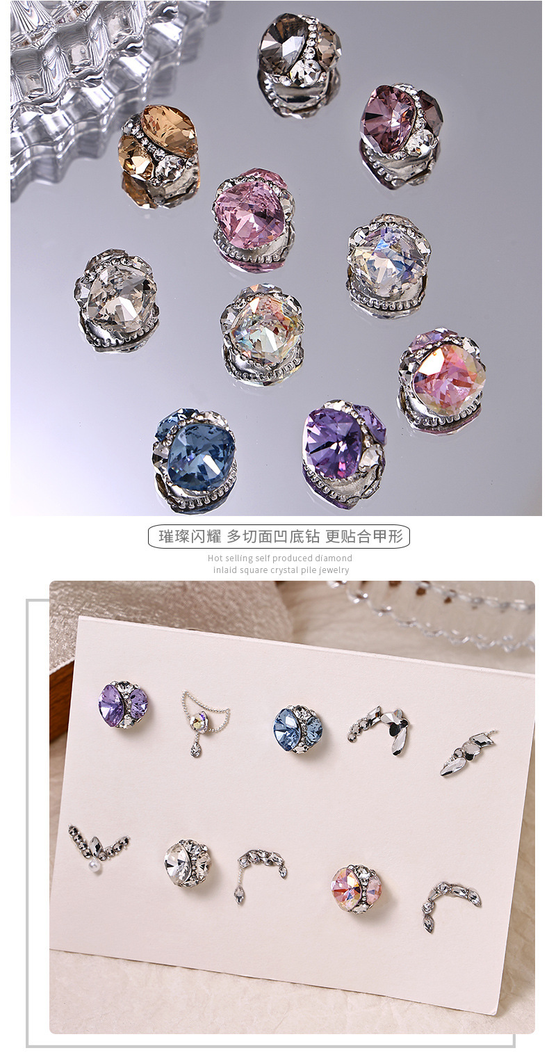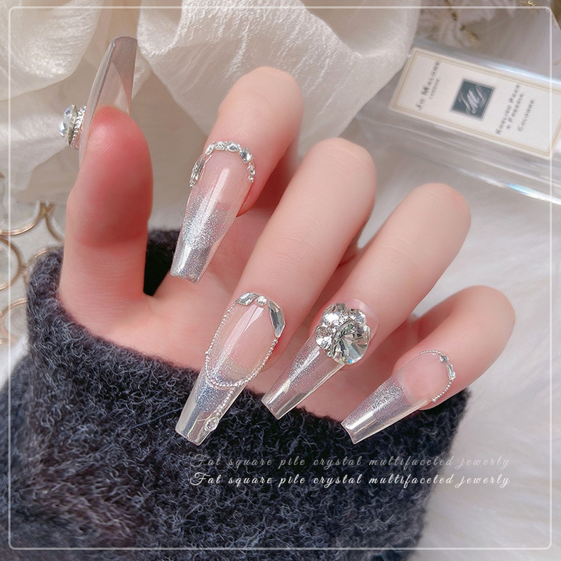 폭발성 매니큐어 쥬얼리 라이트 럭셔리 하이 제품 팻 스퀘어 핸드 스택 드릴링 마무리 드릴 볼 넷 연예인 슈퍼 플래시 풀 다이아몬드 네일 액세서리