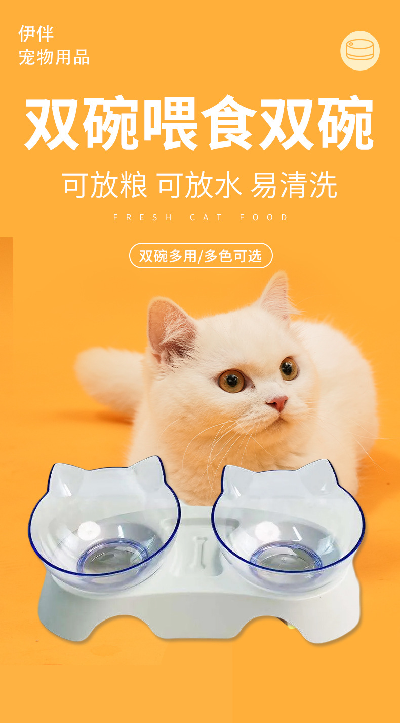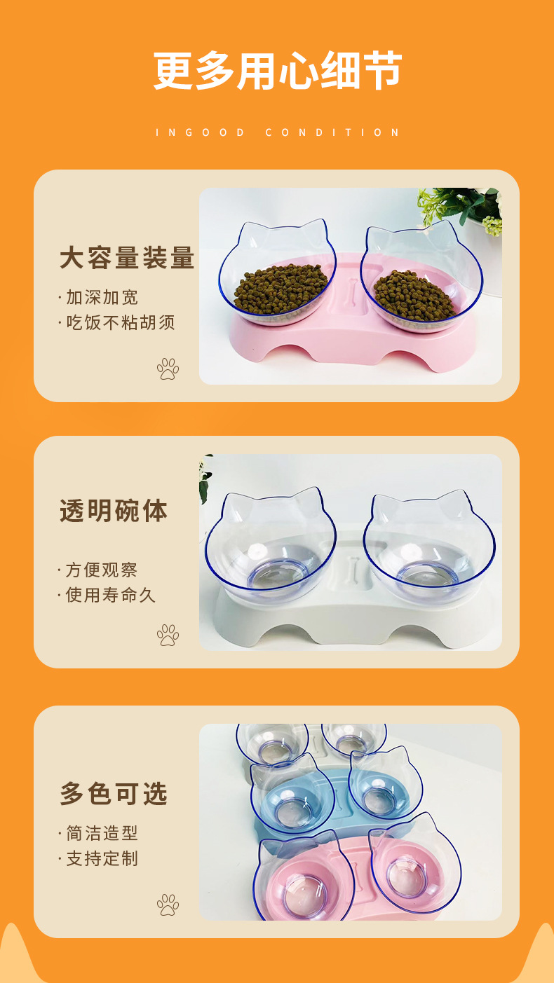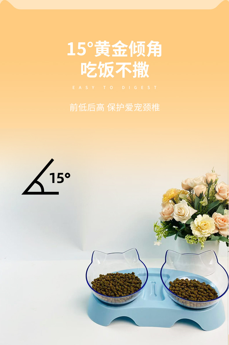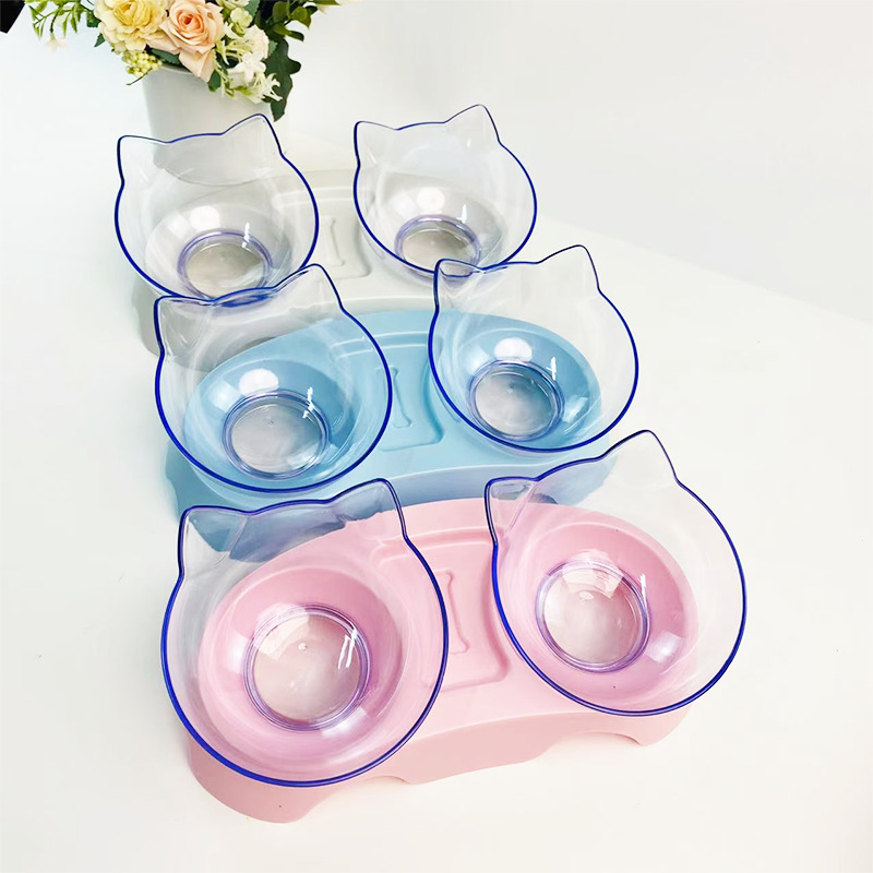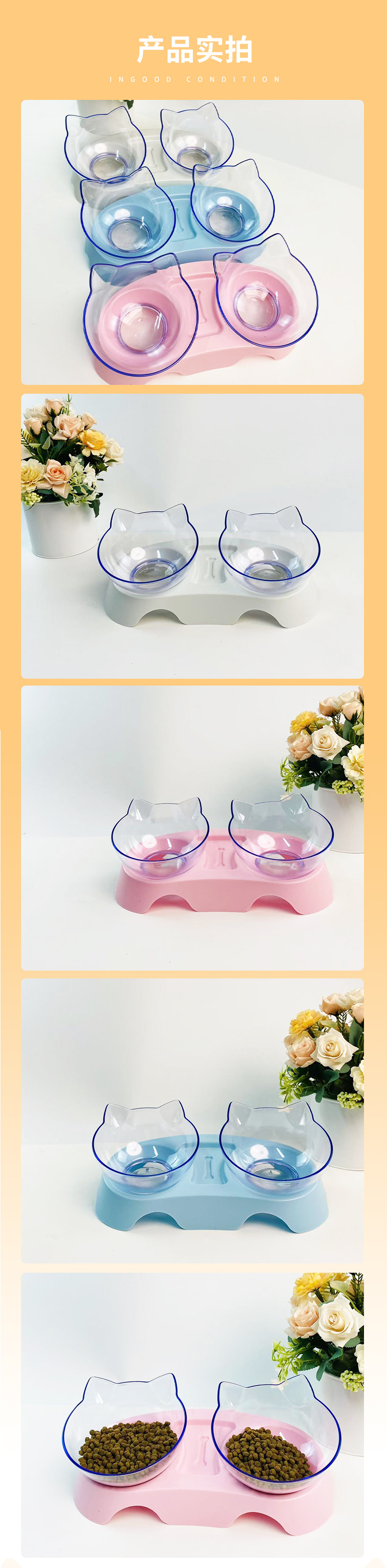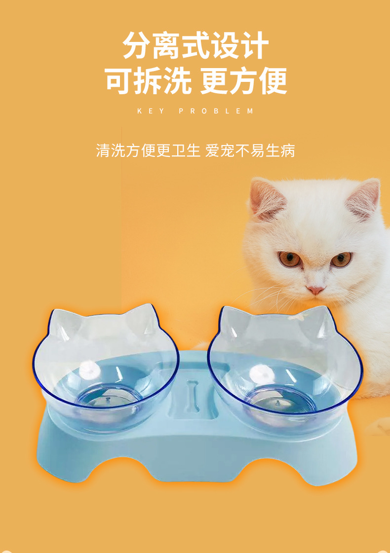 고양이 밥그릇, 넘어짐 방지, 고양이 사료 그릇, 목 보호, 자동 급수, 이중 그릇, 애완동물 급수기