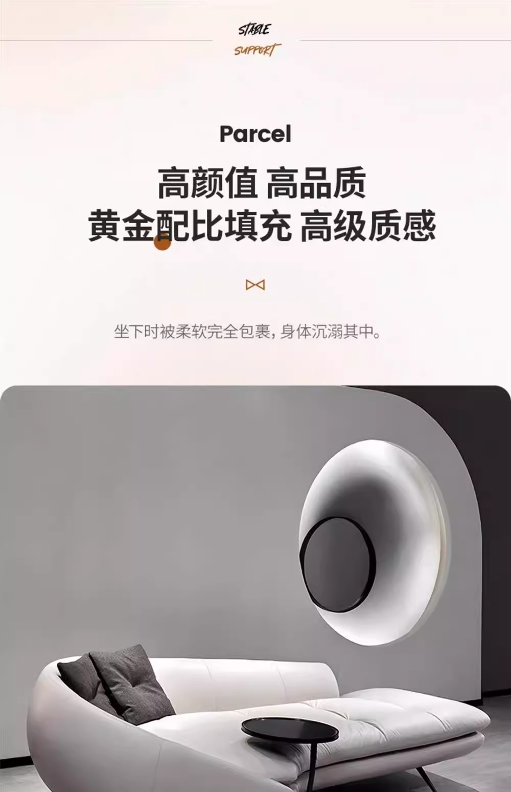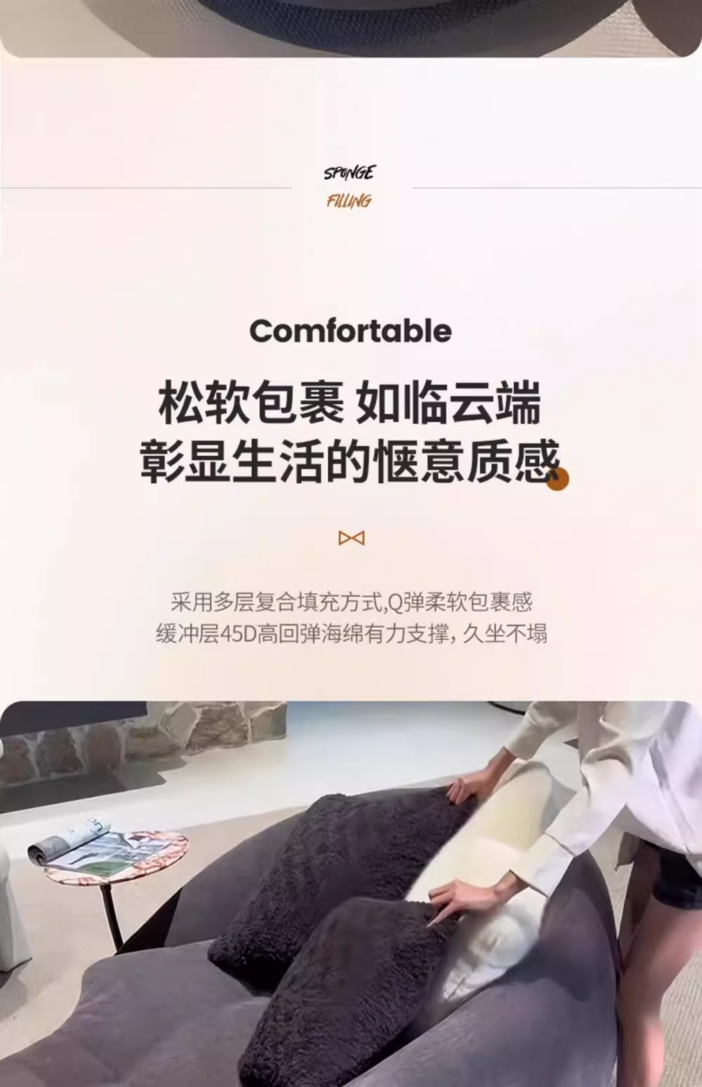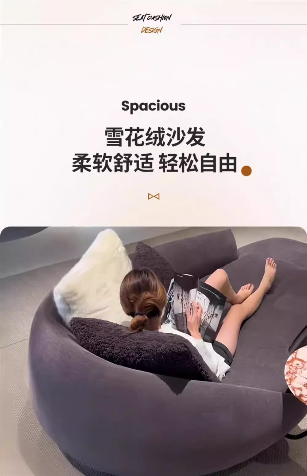 2.0m 화이트 사이드 테이블 [피부친화적인 눈꽃벨벳+바이올렛 스펀지+다운+원목 프레임]