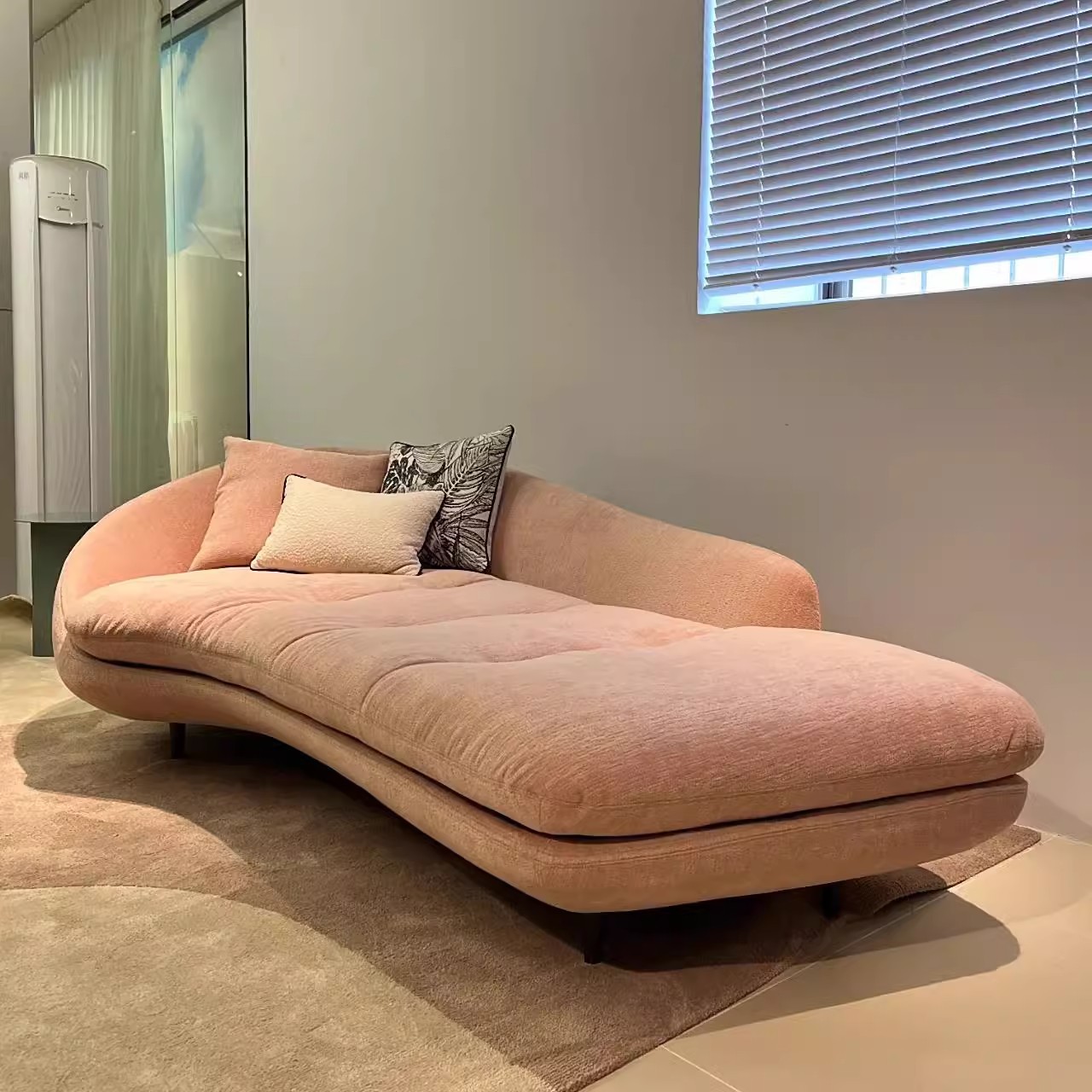 2.0m 걸리핑크 엣지리스 테이블 [피부친화적인 눈꽃벨벳+바이올렛스펀지+다운+원목프레임]
