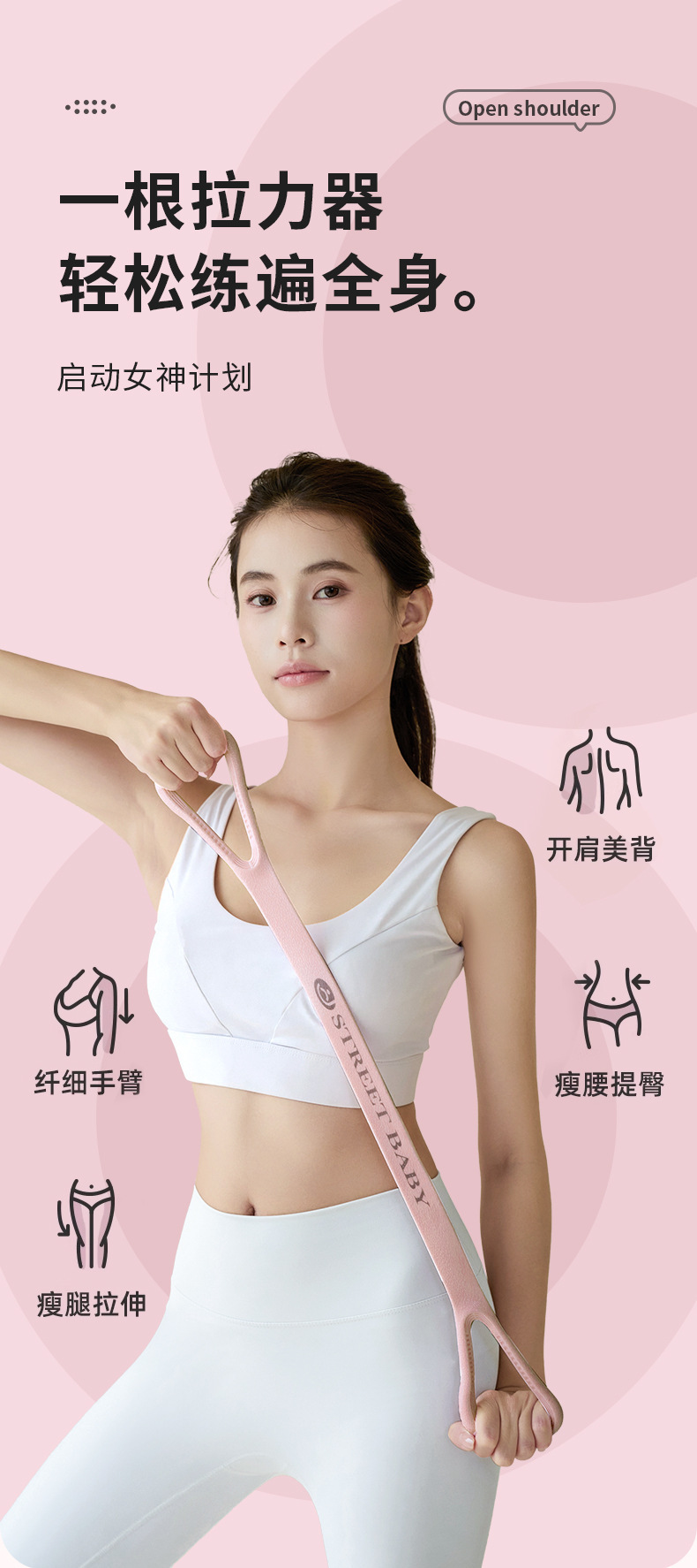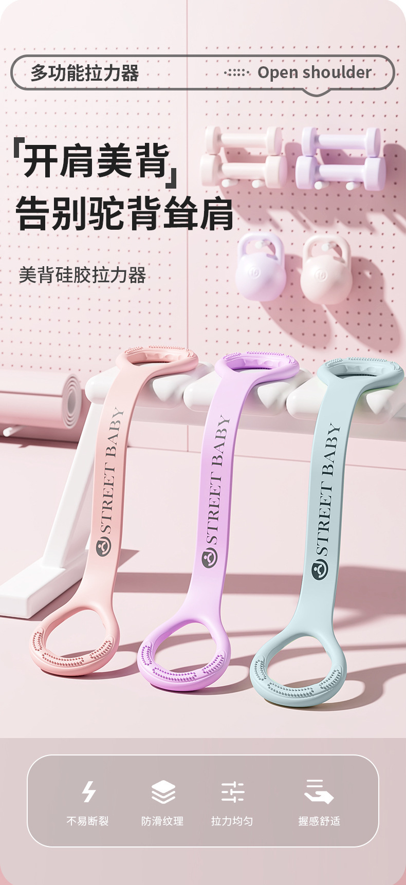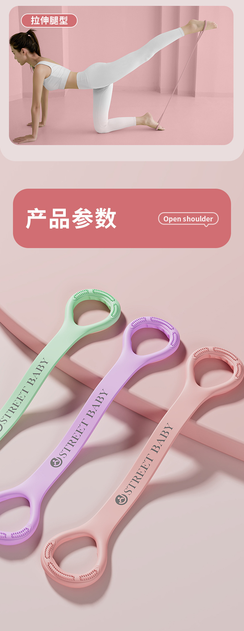 8 자 인장 장치 여성의 오픈 백 스트레치 탄성 벨트 오픈 숄더 아름다운 백 아티팩트 홈 요가 피트니스 8 자 인장 로프