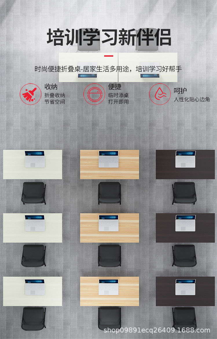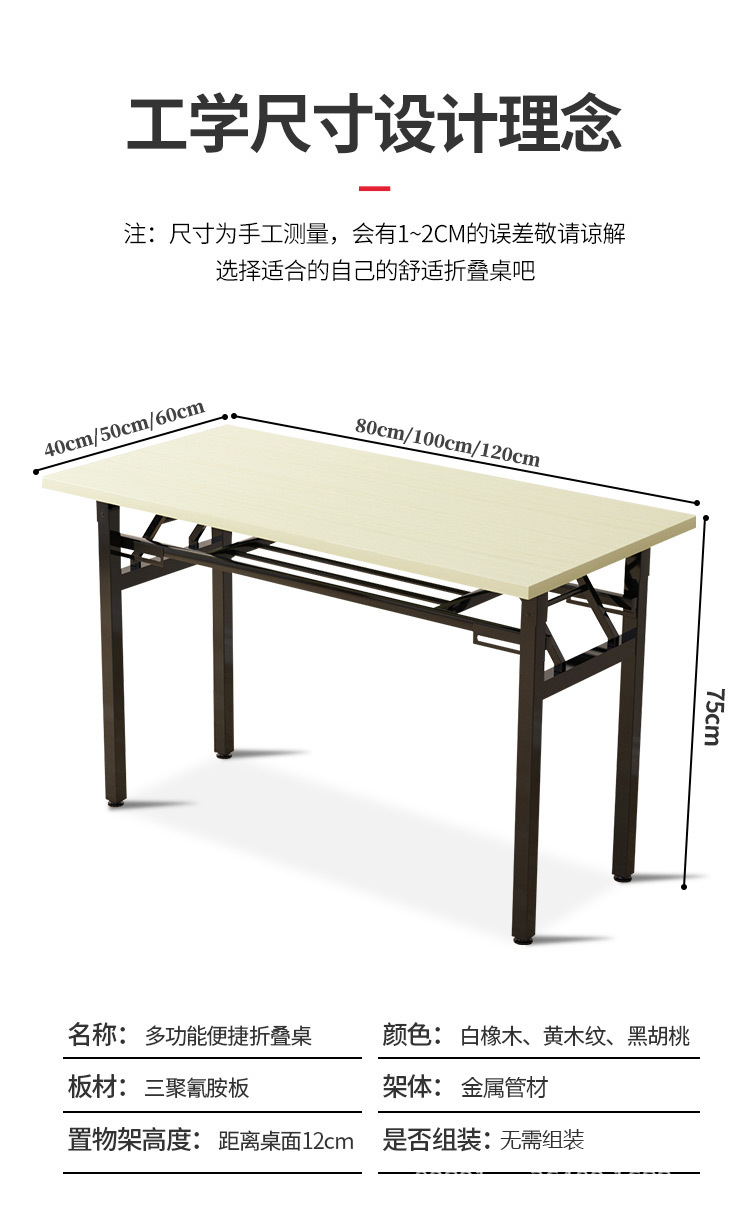 접이식 테이블 컴퓨터 테이블과 의자 긴 테이블 접이식 책상 봄 테이블 학습 테이블 인터뷰 사무실 훈련 테이블