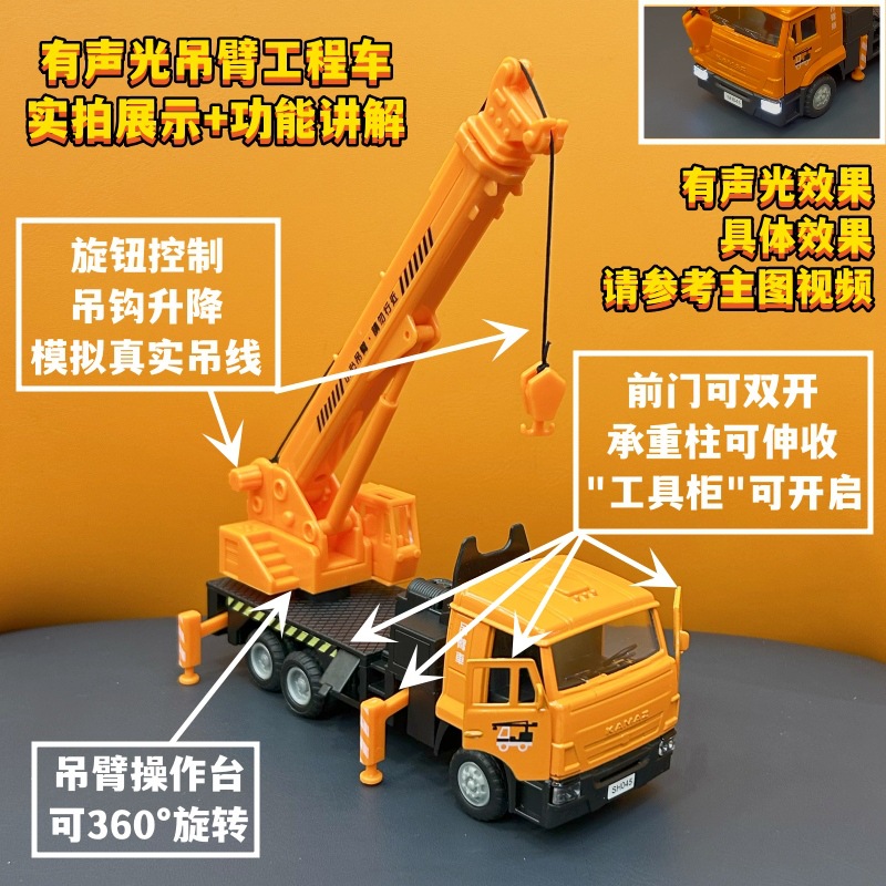 홍콩 붐 엔지니어링 차량 시뮬레이션 자동차 모델 어린이 장난감 소리 가벼운 손 선물 기념품 합금 자동차 모델