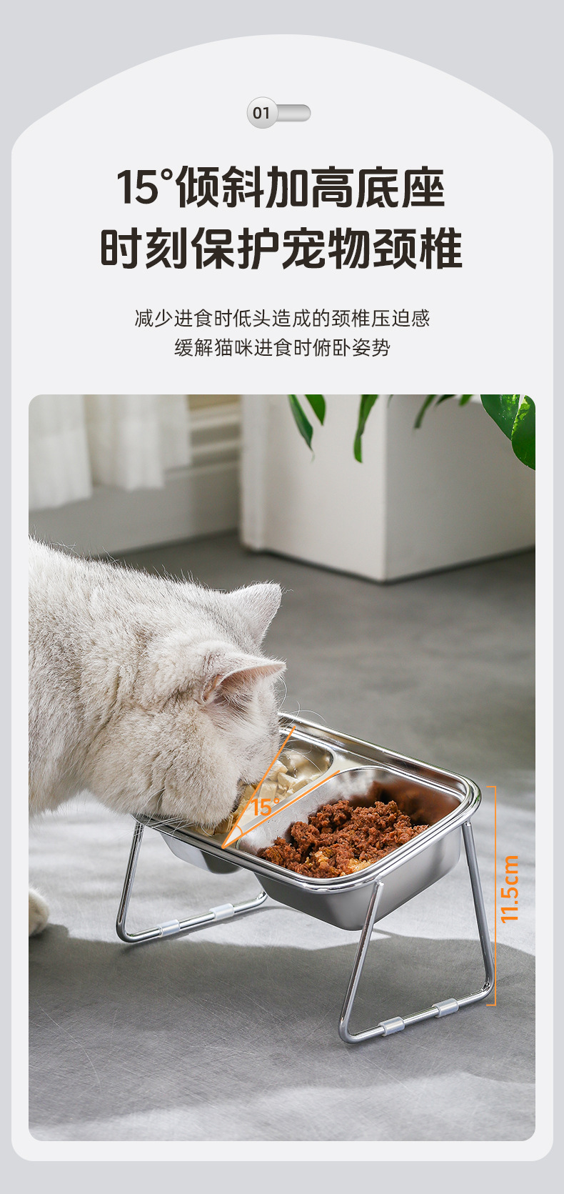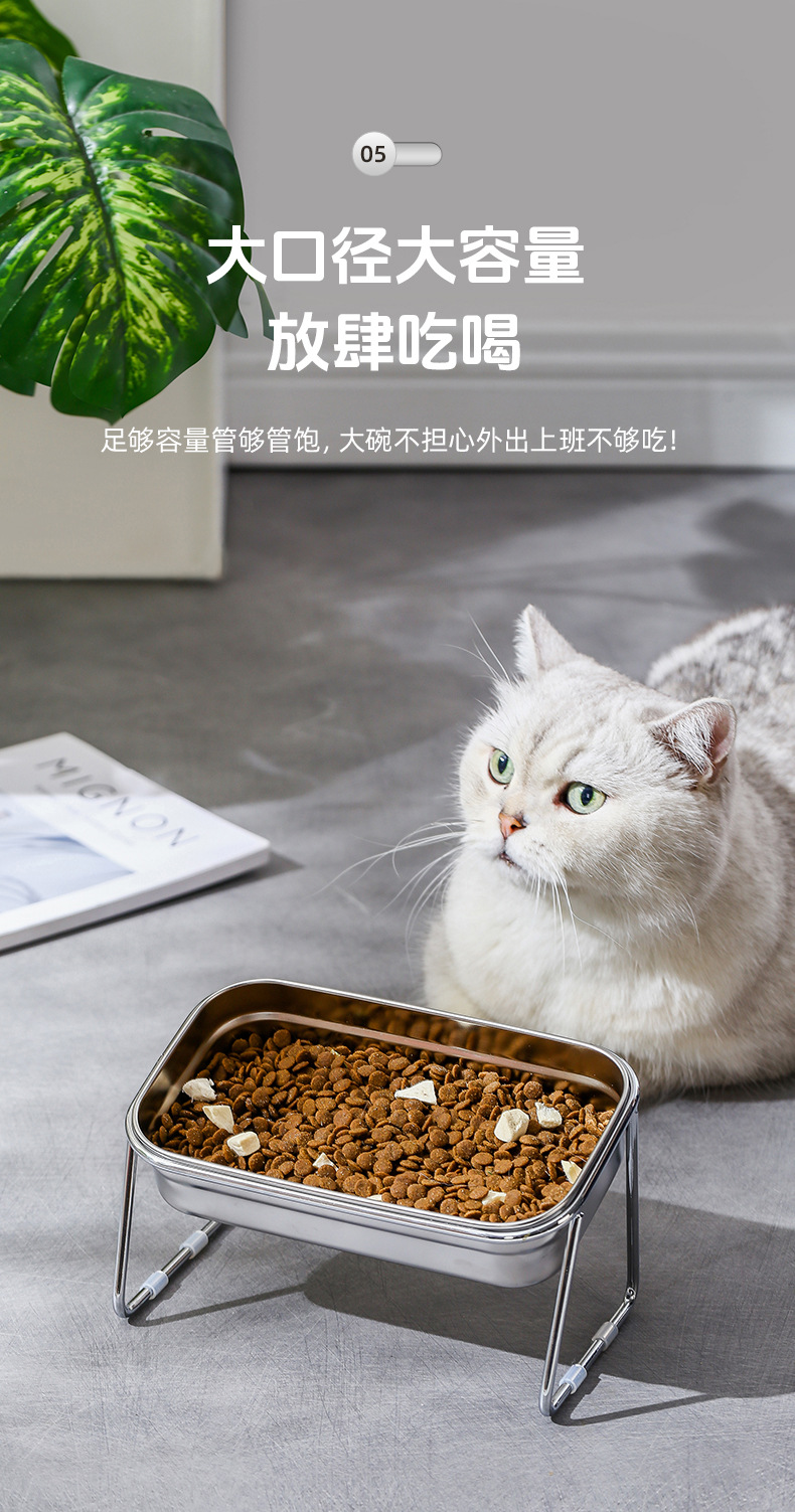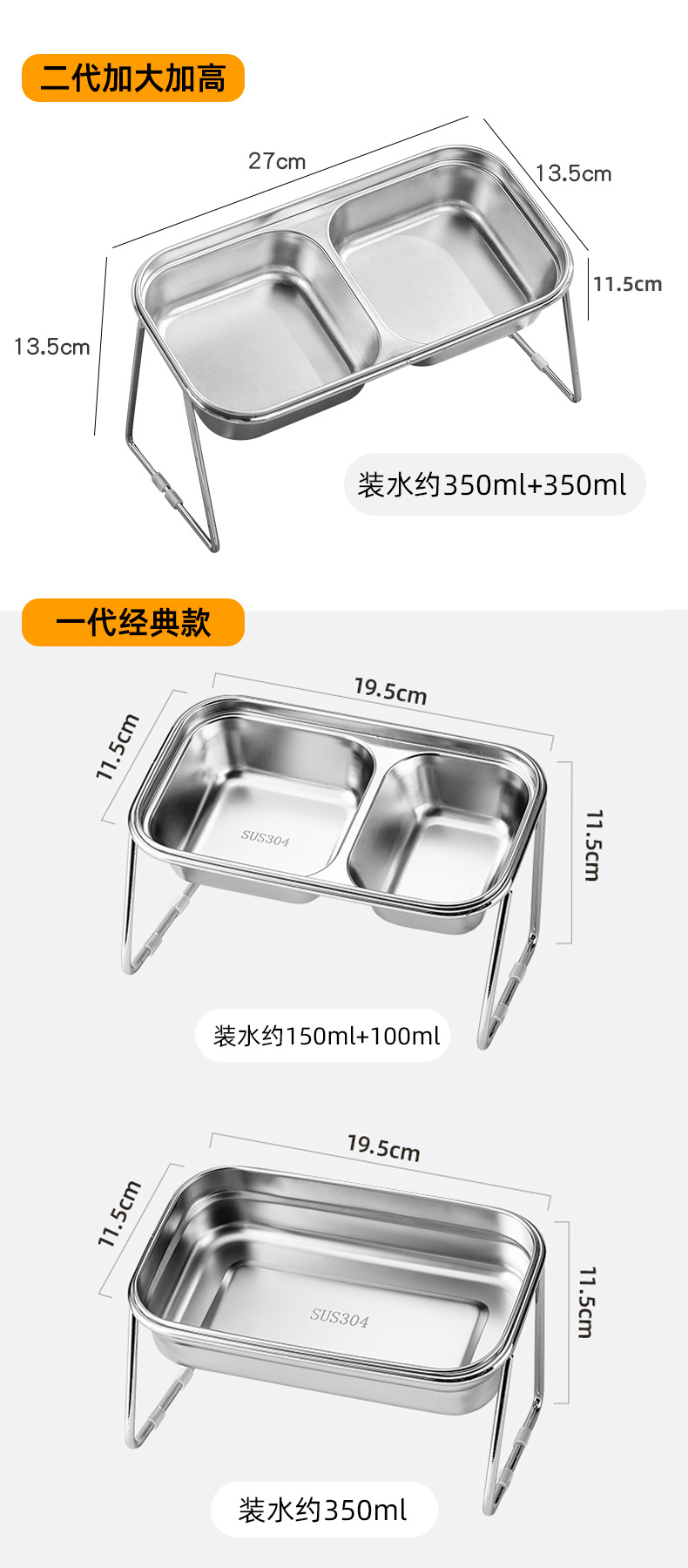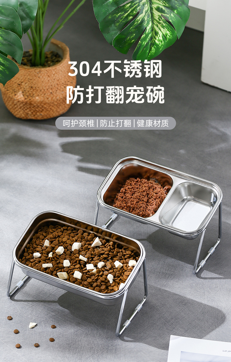 원래 304 스테인리스 고양이 그릇 고양이 음식 분지 개 고양이 물 그릇 쌀 음식 두 배 그릇 마시는 물 통합 노크 목 보호