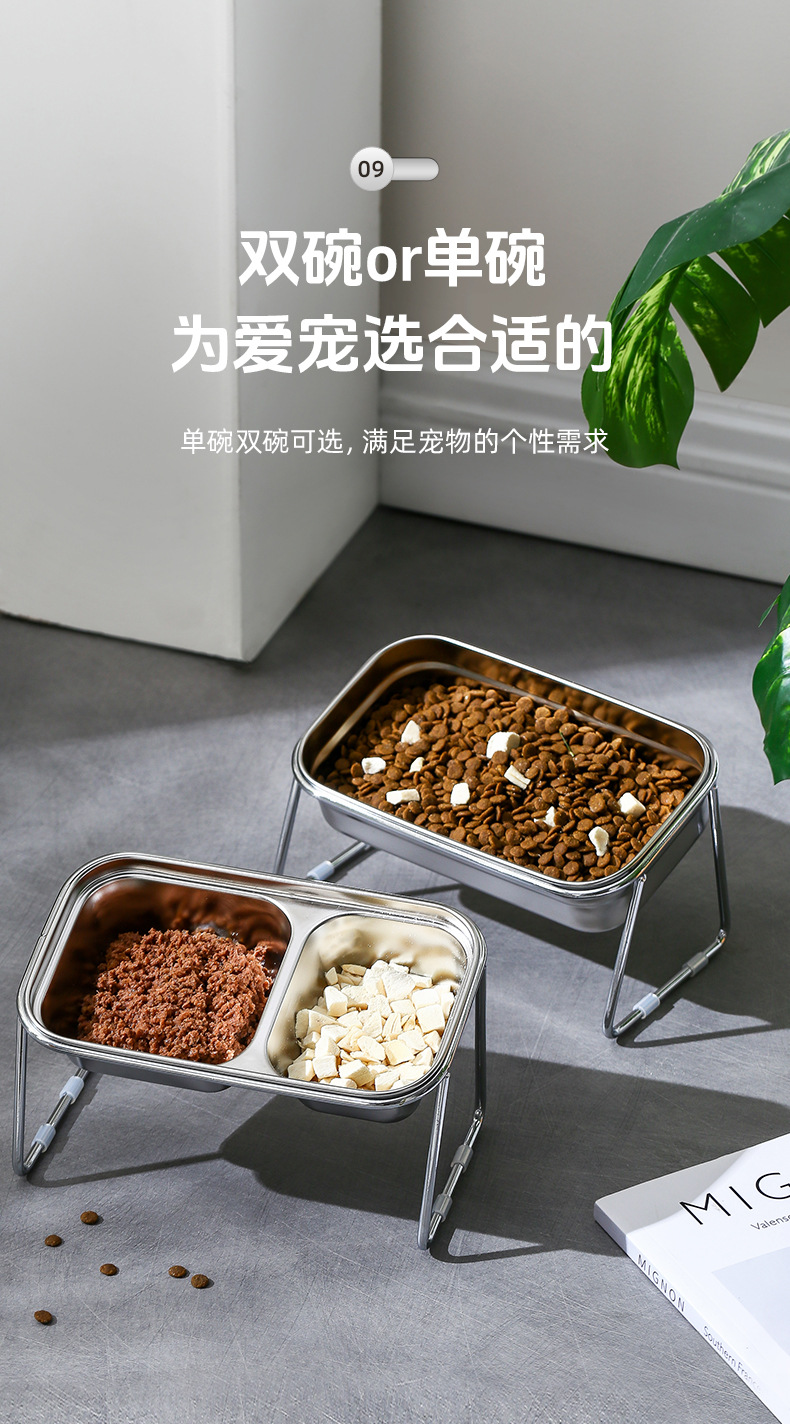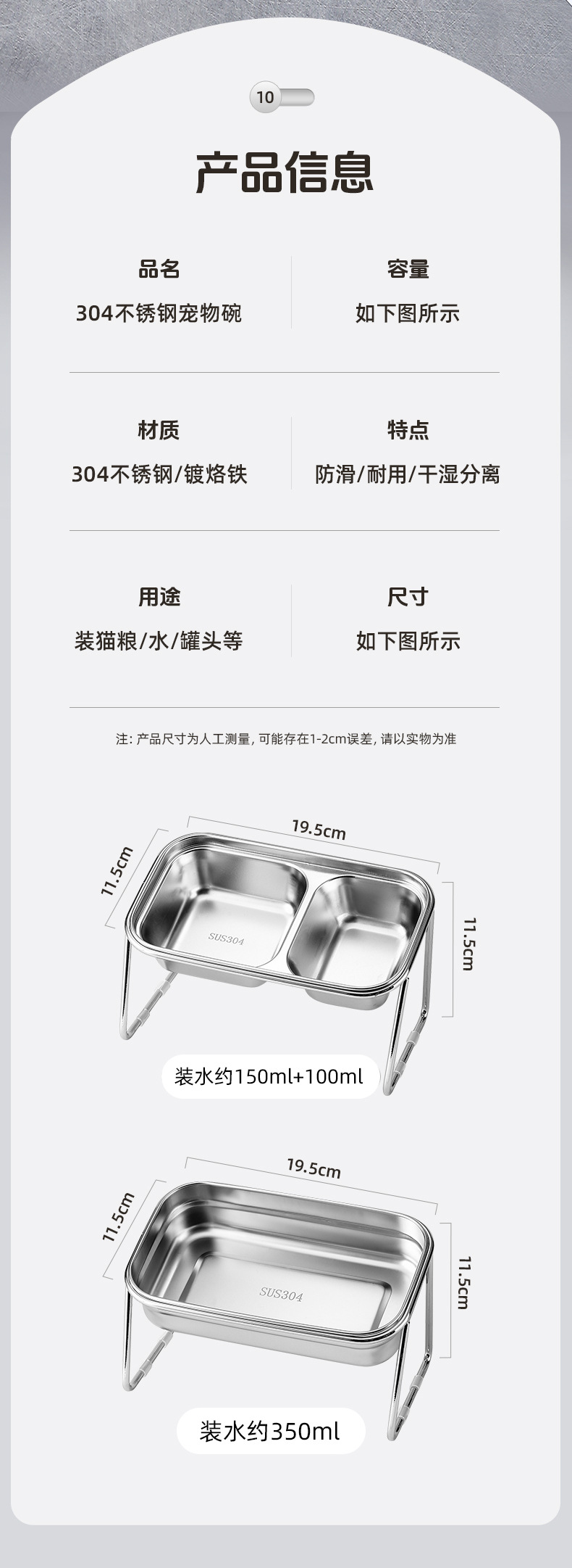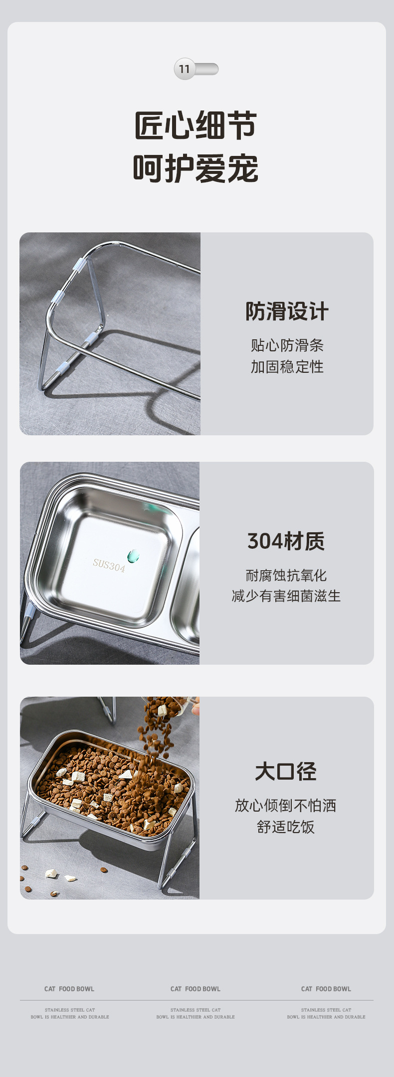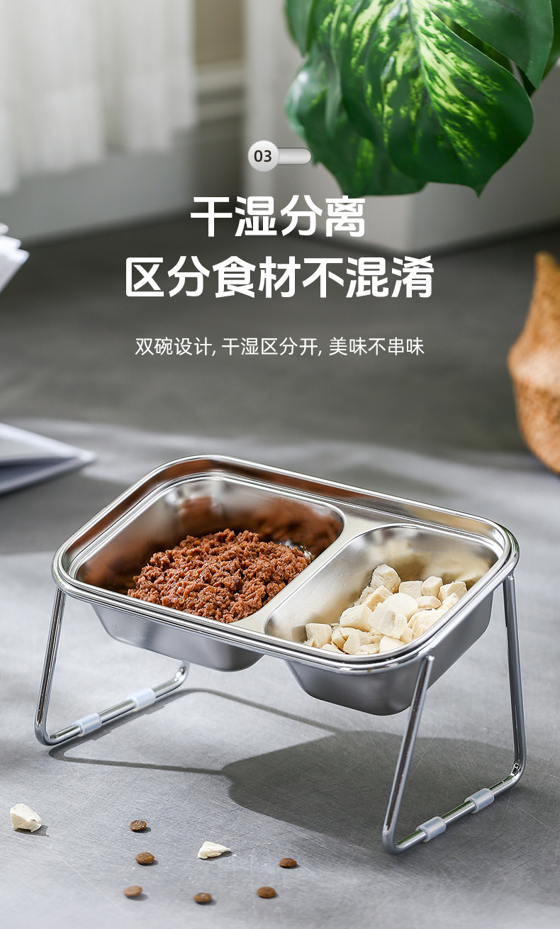 원래 304 스테인리스 고양이 그릇 고양이 음식 분지 개 고양이 물 그릇 쌀 음식 두 배 그릇 마시는 물 통합 노크 목 보호