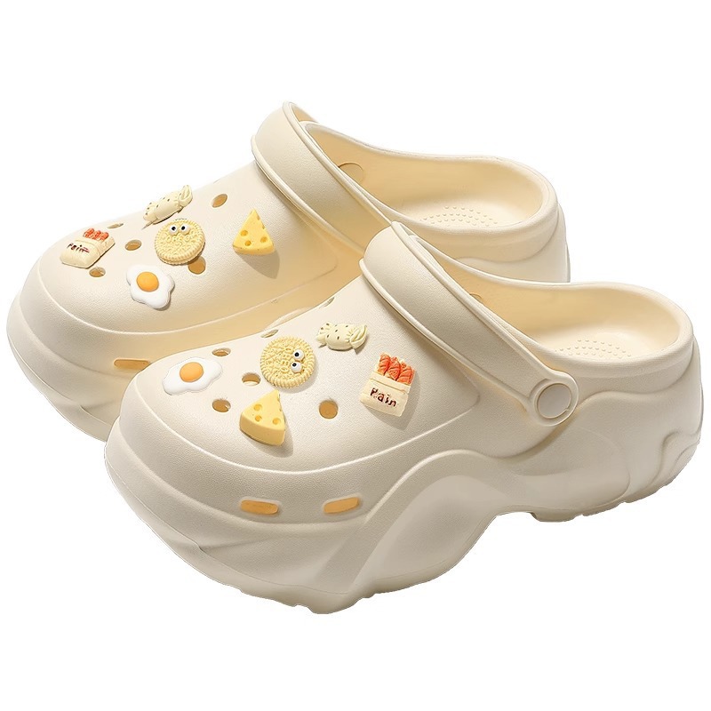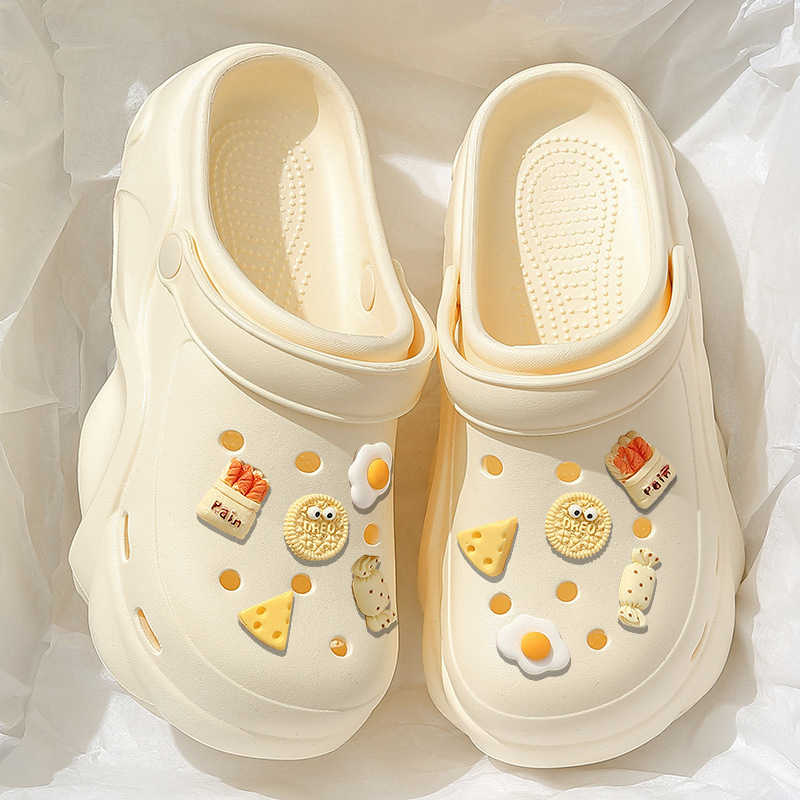 새로운 EVA 소재의 똥 밟는 듯한 느낌의 두꺼운 밑창 여성용 여름용 아웃도어 비치 샌들, 미끄럼 방지 앞코가 막힌 슬리퍼