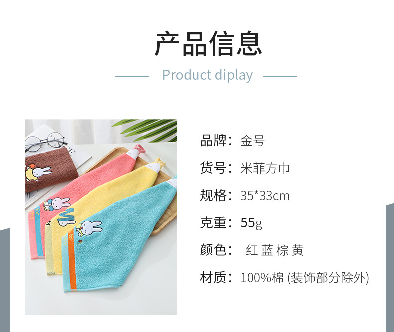 골드 미피 토끼 공동 MF6150HT 어린이 수건 정품 공인 면 자수 작은 수건 가정용 소프트 페이스 워시