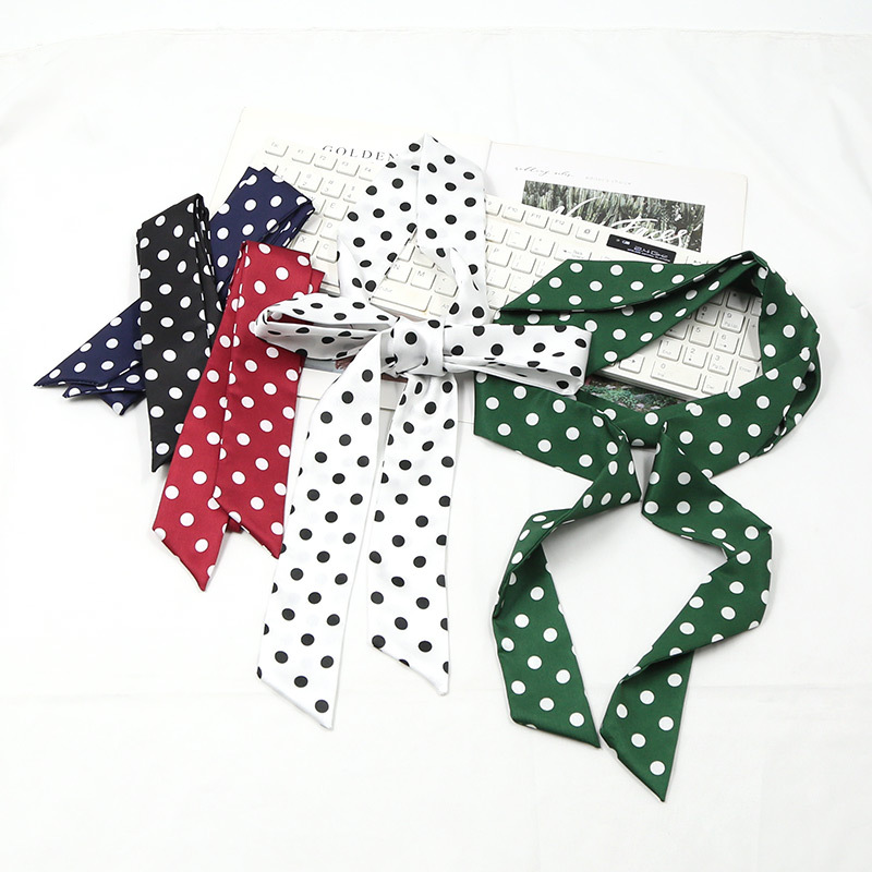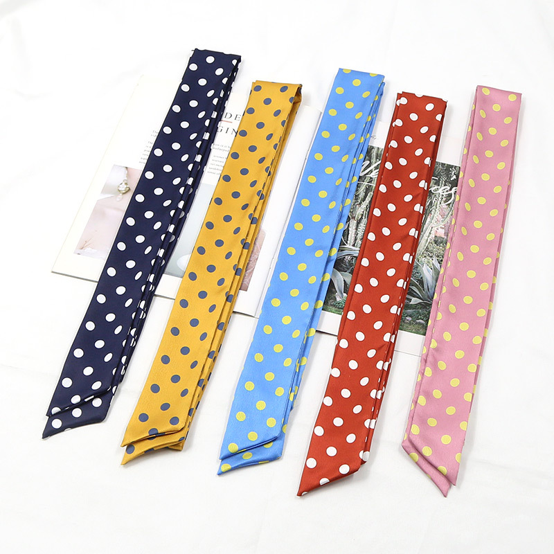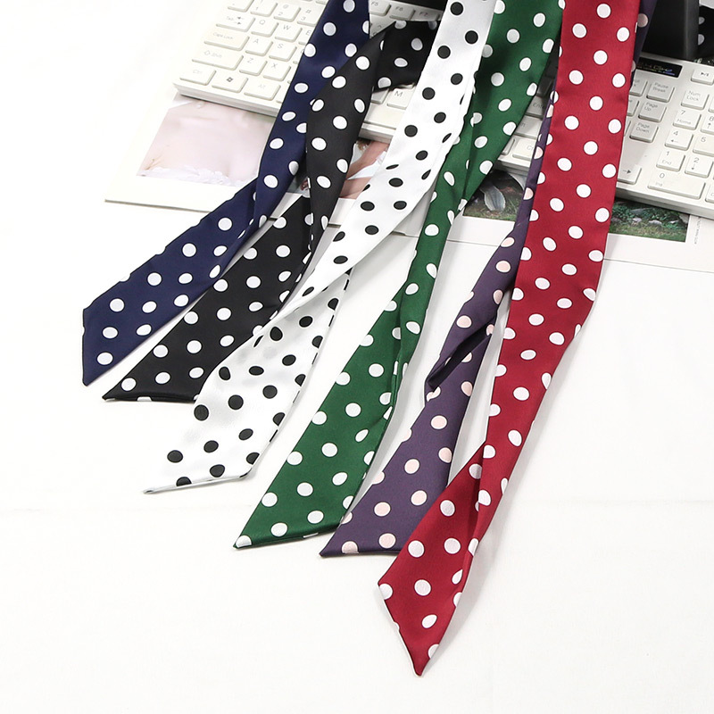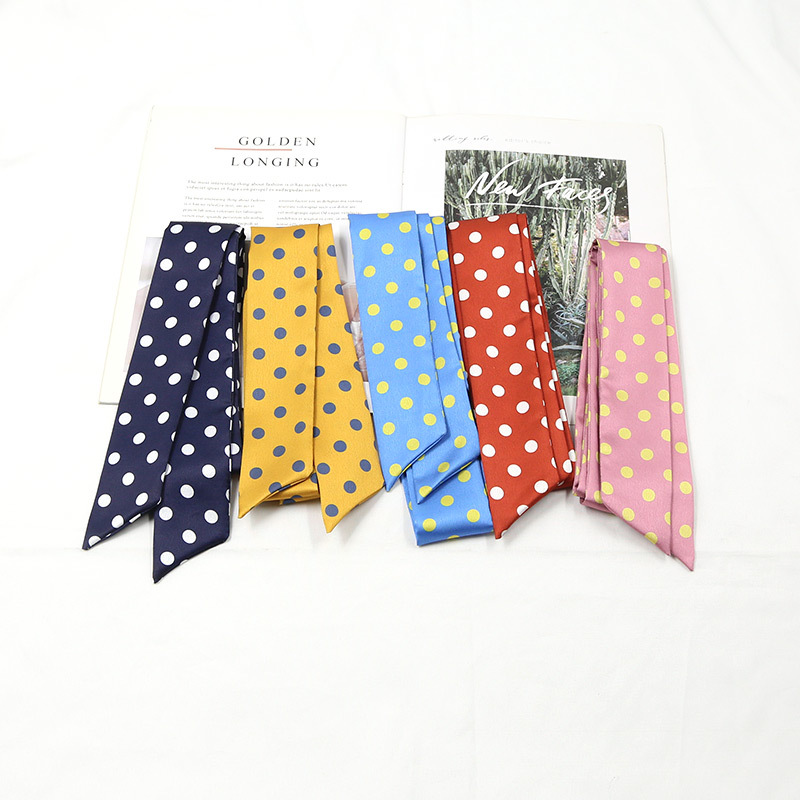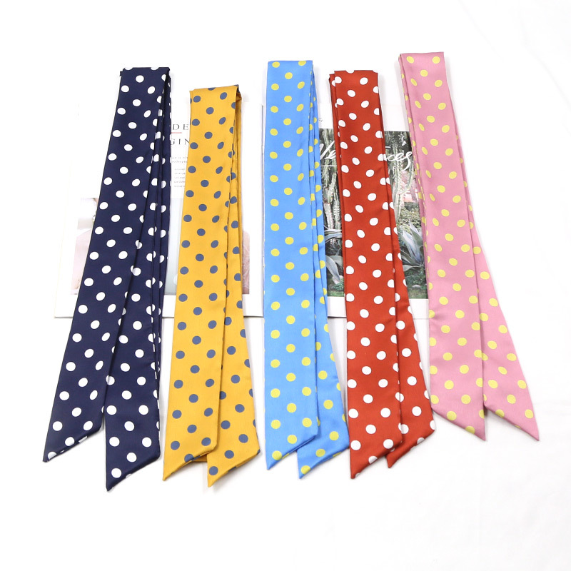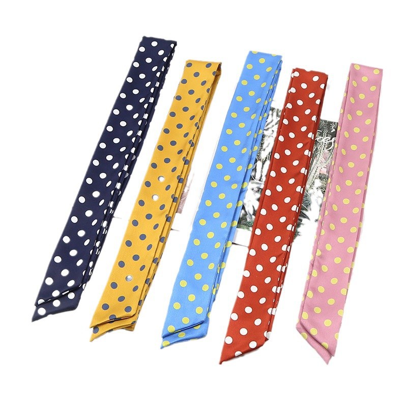 새로운 스타일의 단색 물방울무늬 스카프, 다용도 한국 프린트 트렌디 여성용 좁은 머리띠 장식 스카프, 얇은 긴 스트립 리본